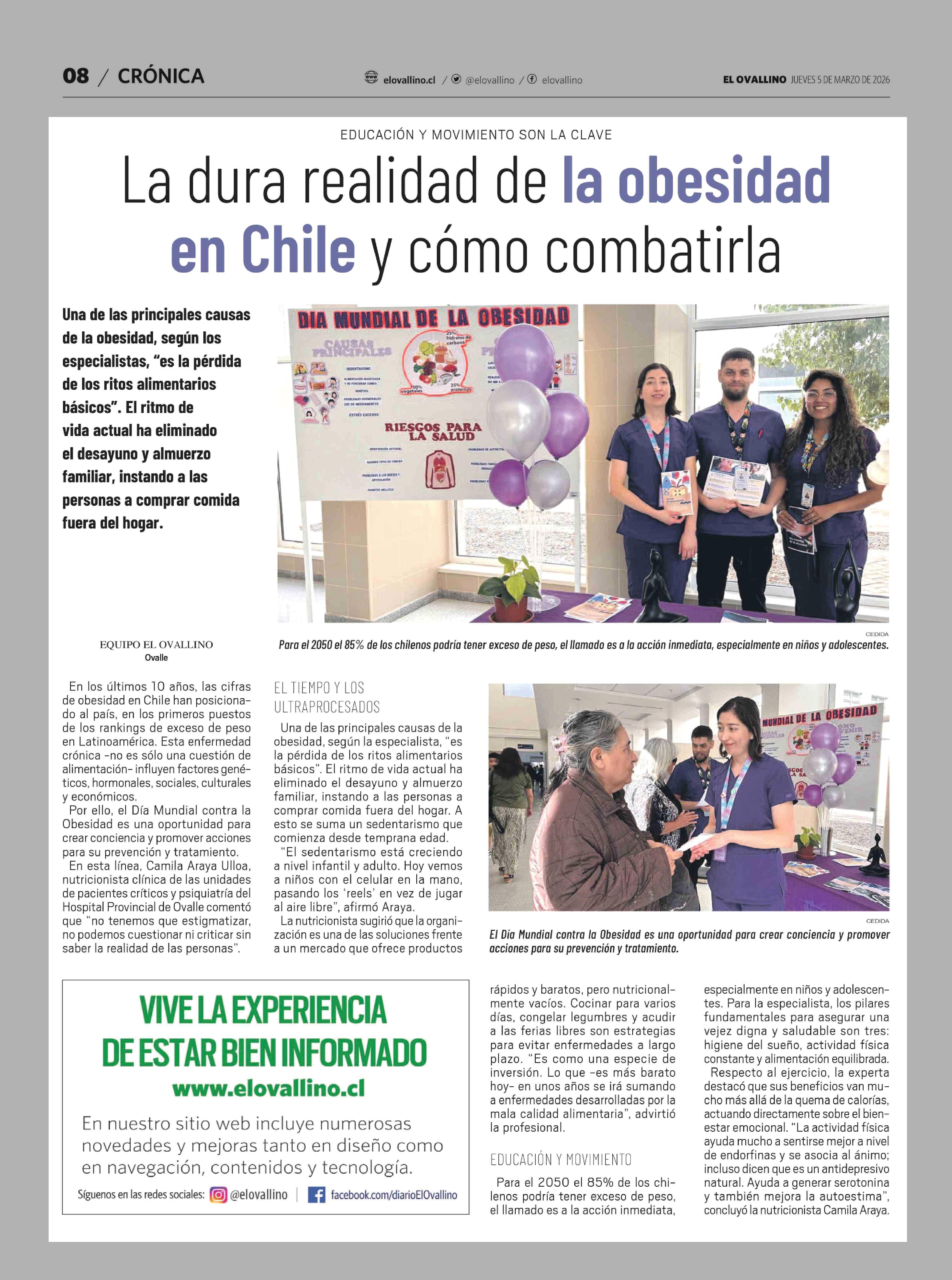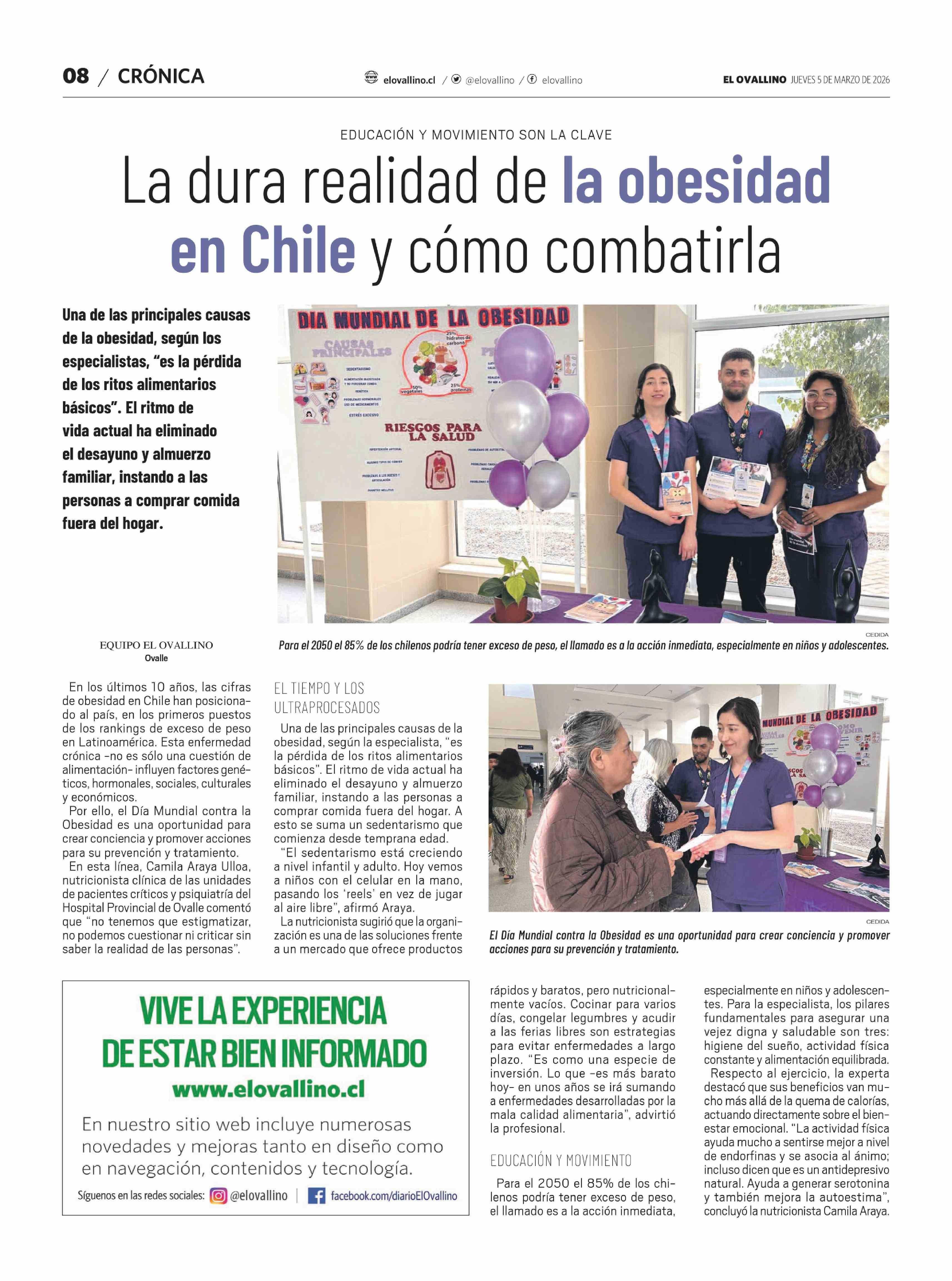 La dura realidad de la obesidad en Chile y cómo combatirla 05-03-2026 El Ovallino |