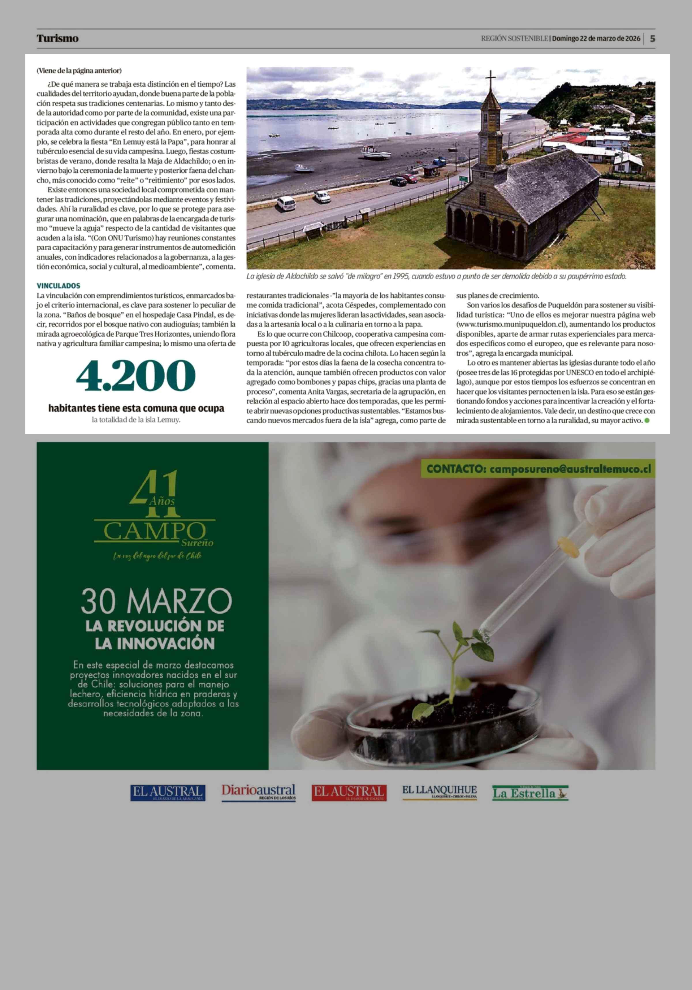 Puqueldón: el pueblo donde la ruralidad se transforma en atractivo global con sello sustentable 22-03-2026 El Llanquihue |