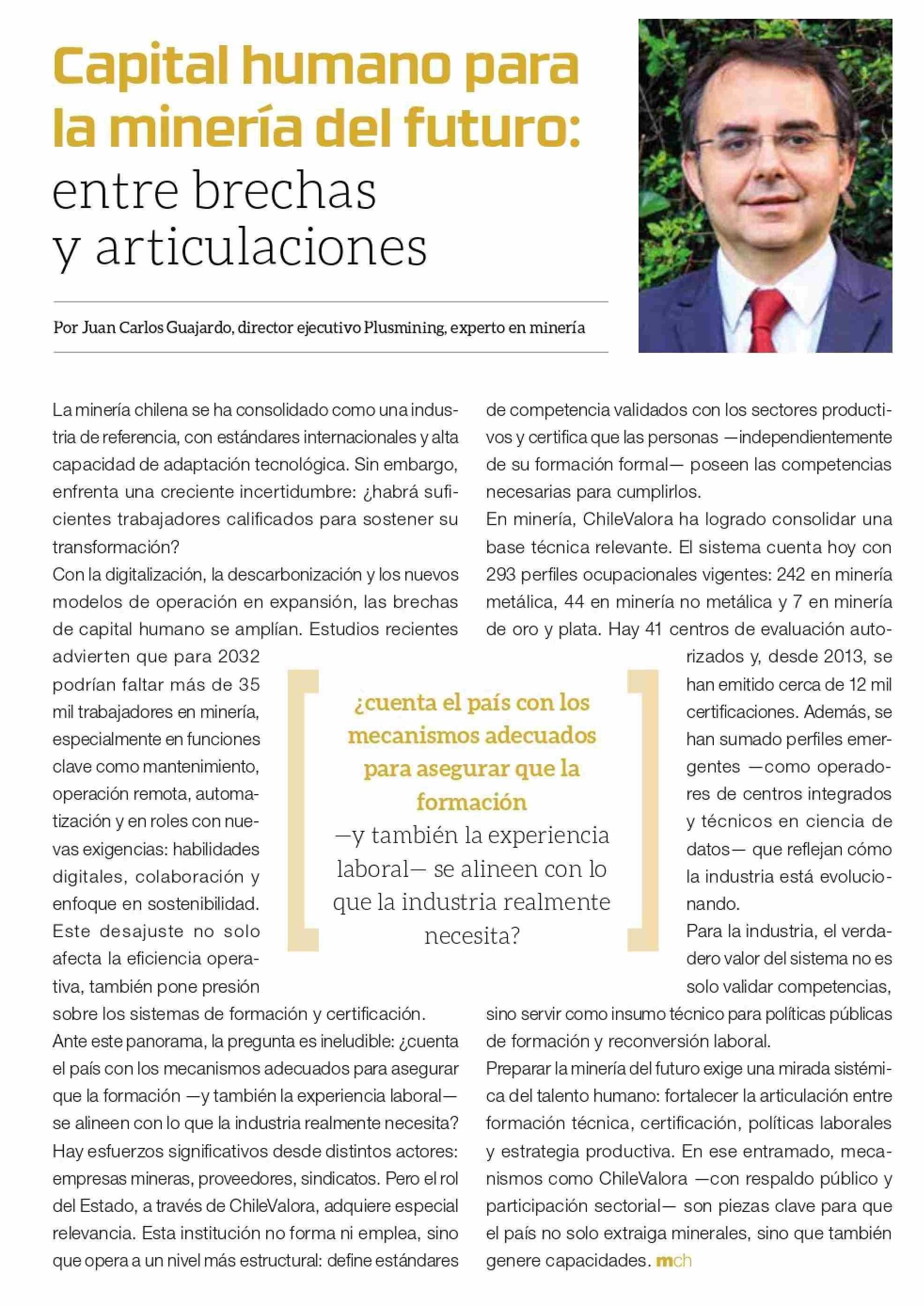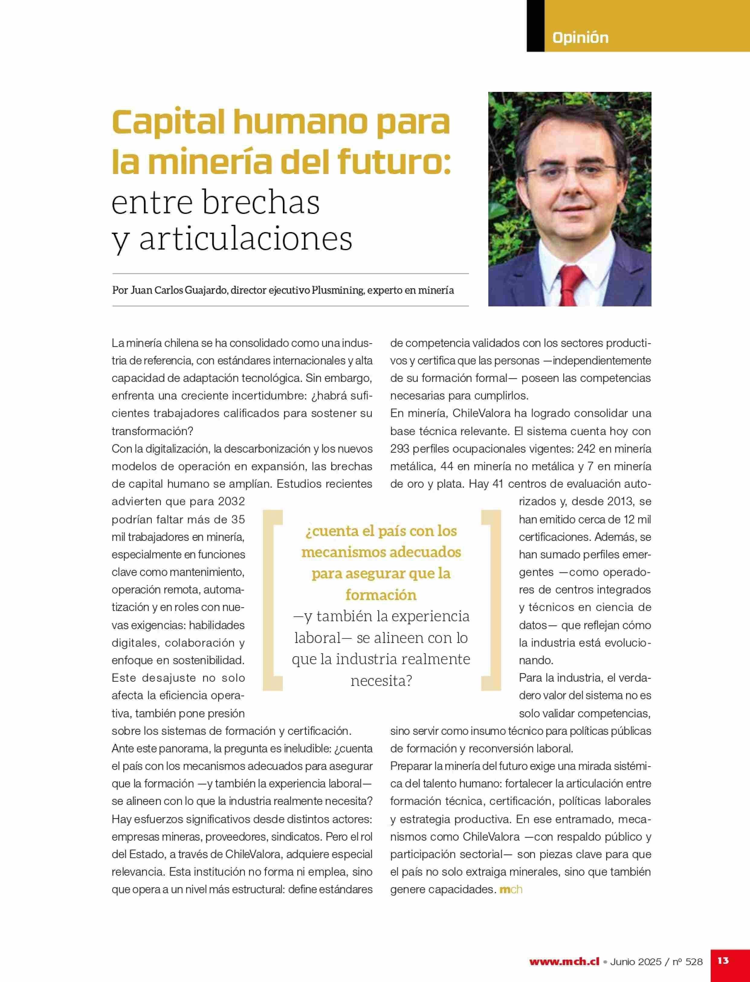 COLUMNAS DE OPINIÓN: Capital humano para la minería del futuro: entre brechas y articulaciones 25-06-2025 Revista Minería Chilena |