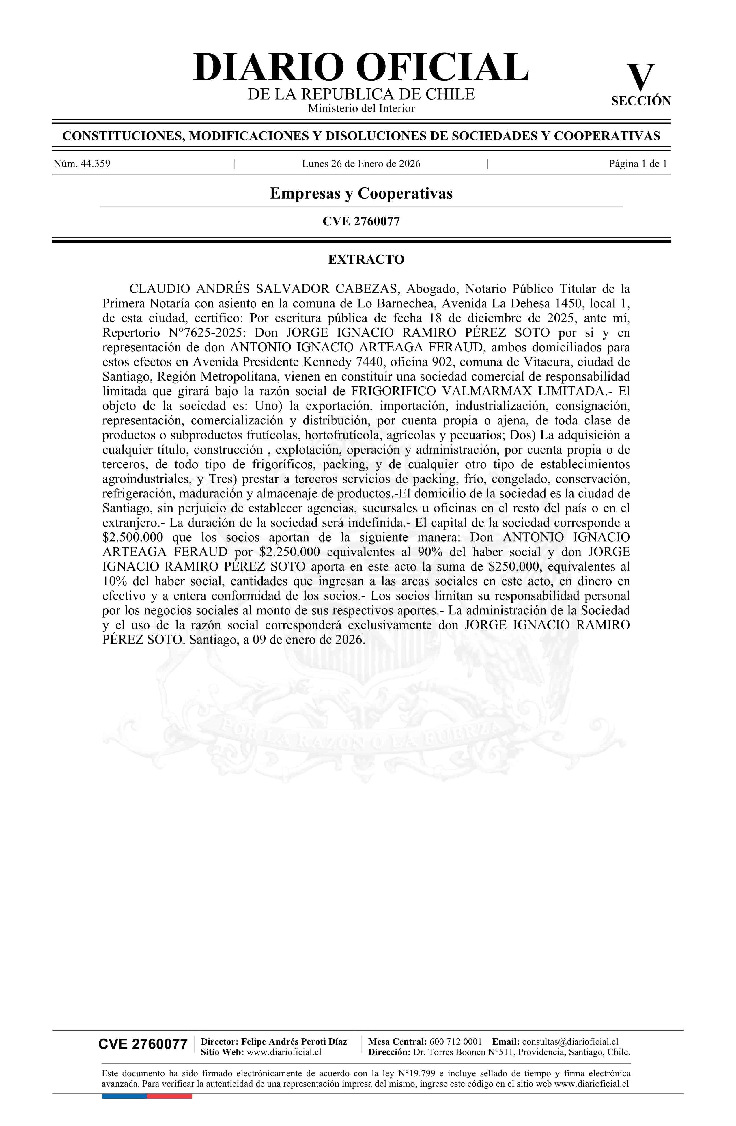 Título: FRIGORIFICO VALMARMAX LIMITADA