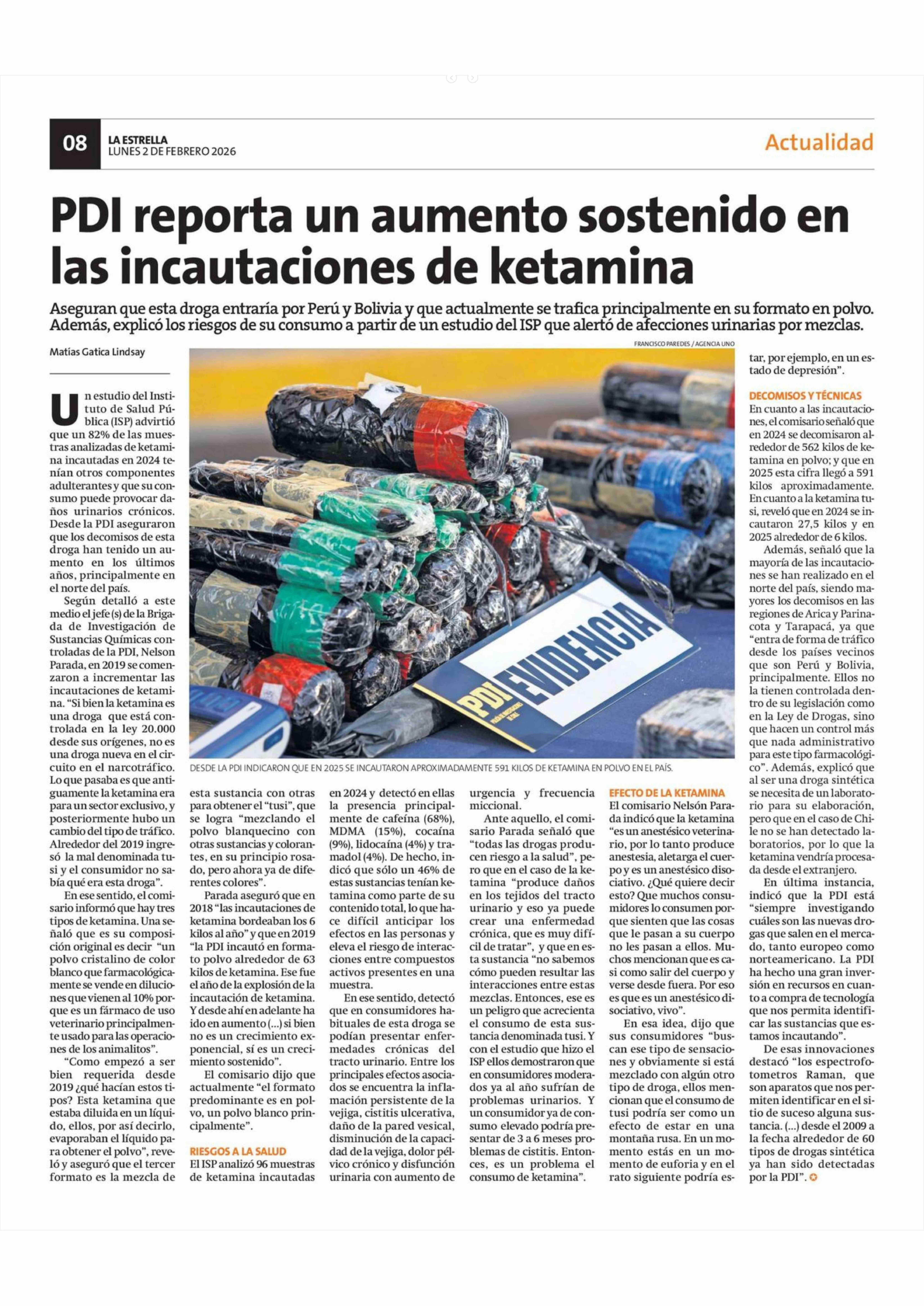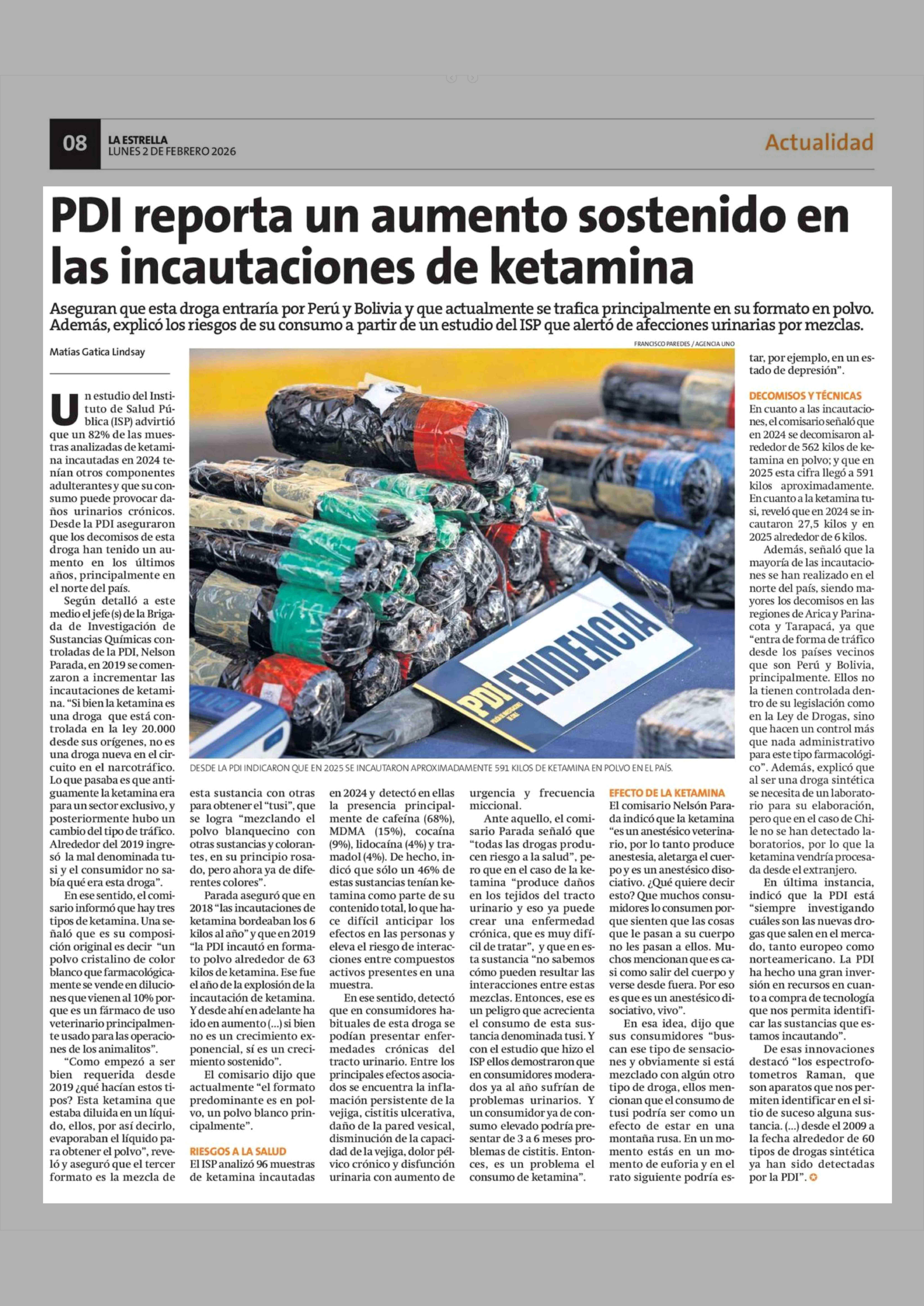 PDI reporta un aumento sostenido en las incautaciones de ketamina 02-02-2026 La Estrella de Concepción |