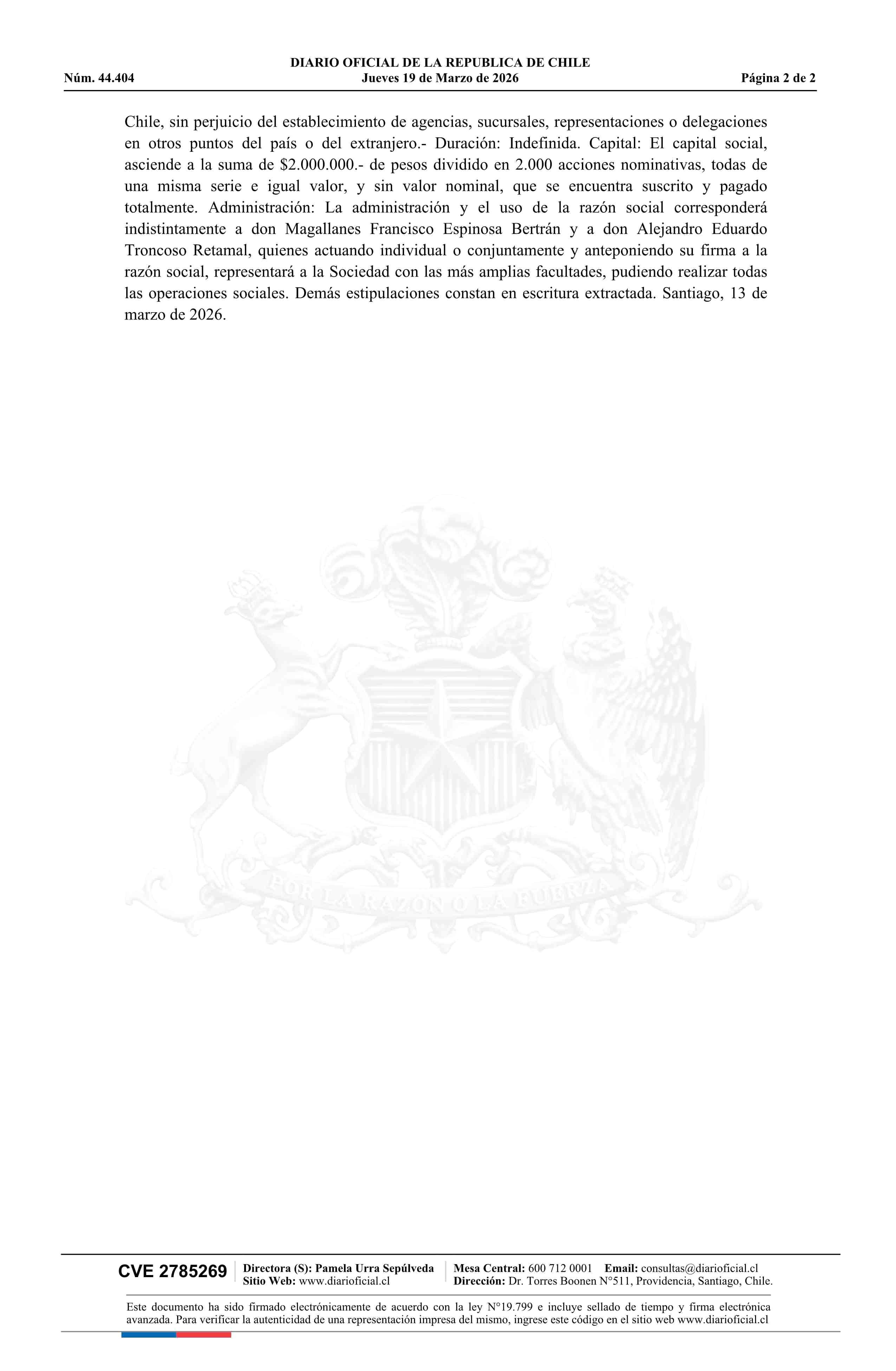 INDUSTRIAL BOILERS SpA 19-03-2026 Diario Oficial Edición Electrónica |