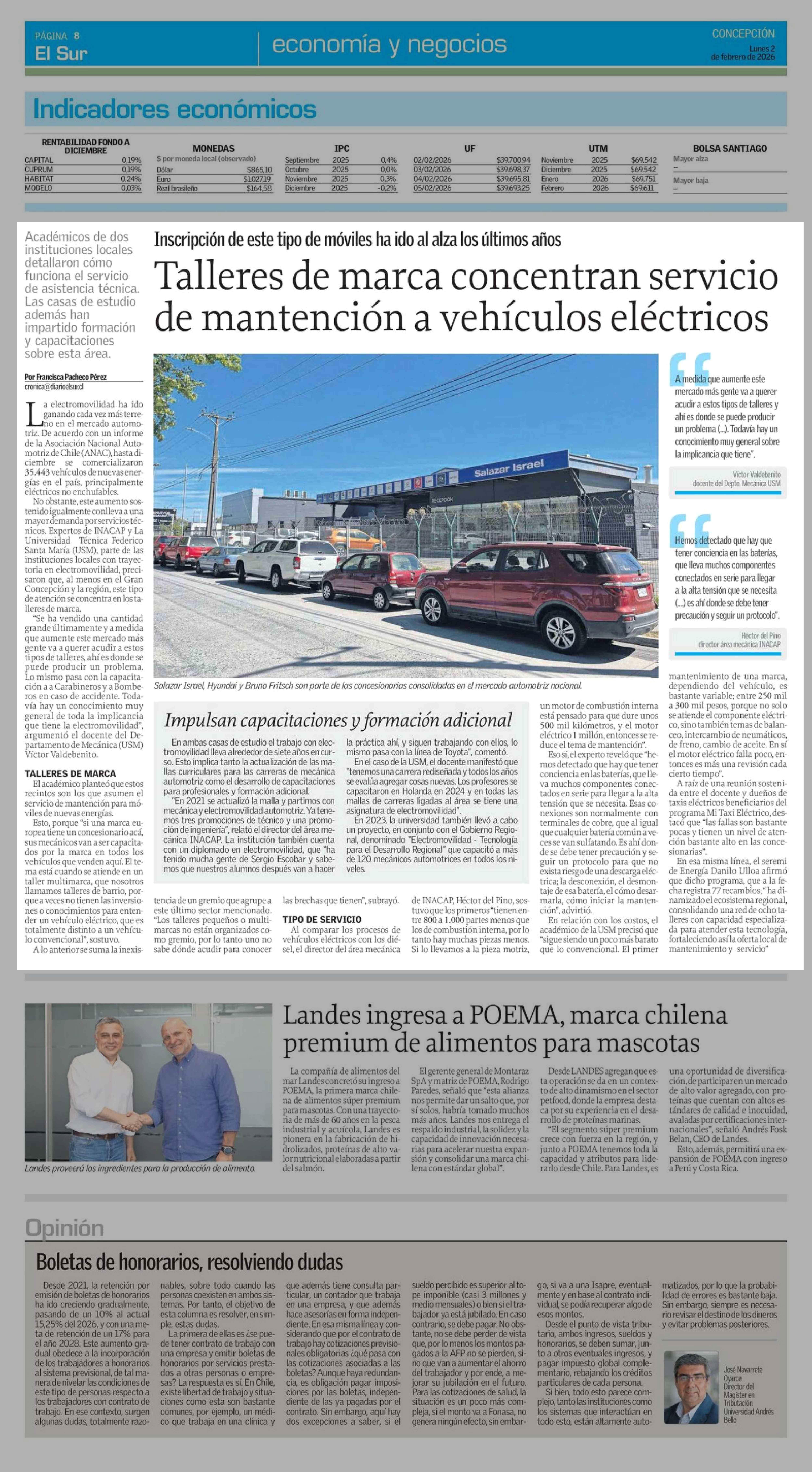 Talleres de marca concentran servicio de mantención a vehículos eléctricos 02-02-2026 El Sur |