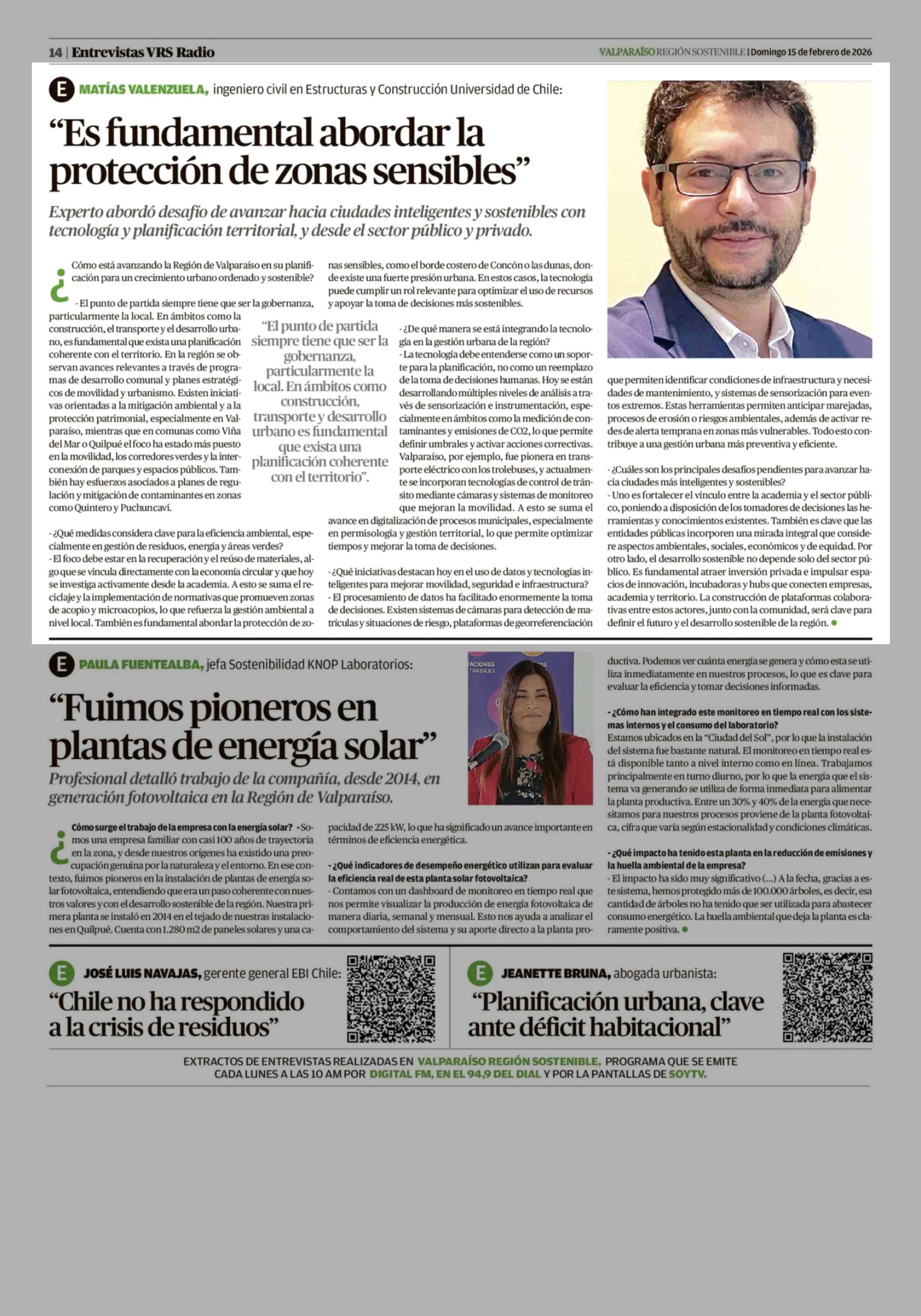 Columnas de Opinión: "Es fundamental abordar la protección de zonas sensibles" 15-02-2026 El Mercurio de Valparaíso |