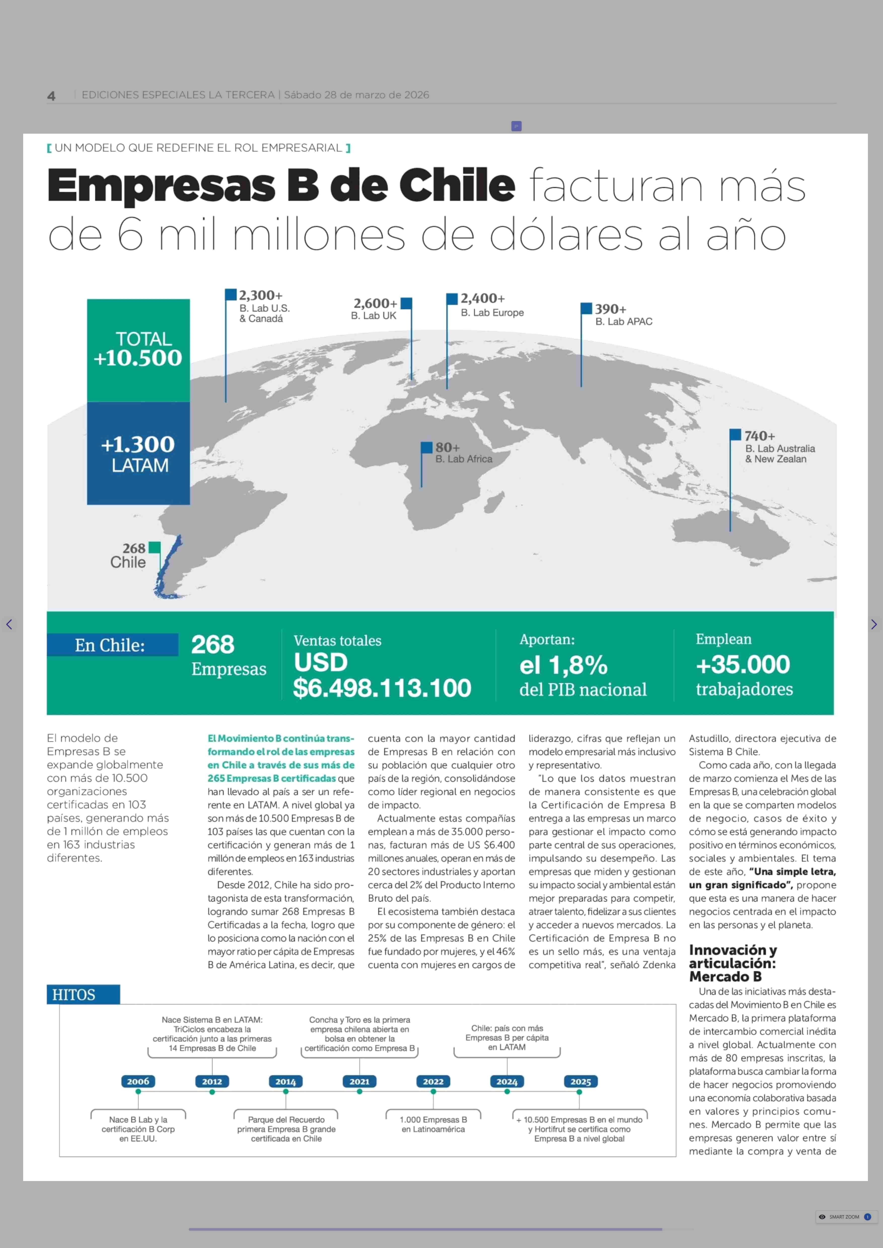 Título: Empresas B de Chile facturan más de 6 mil millones de dólares al año