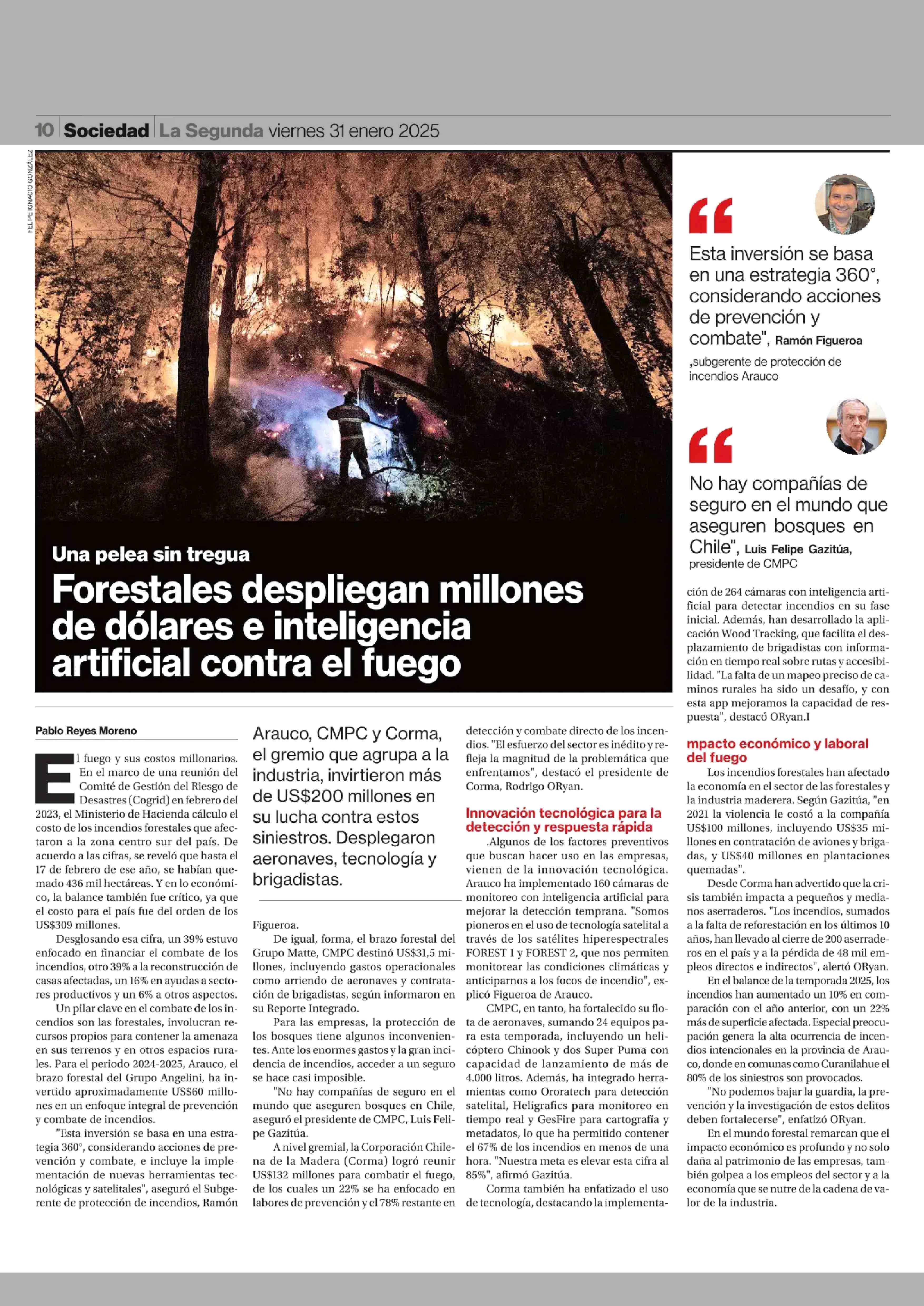 Forestales despliegan millones de dólares e inteligencia artificial contra el fuego 31-01-2025 La Segunda |