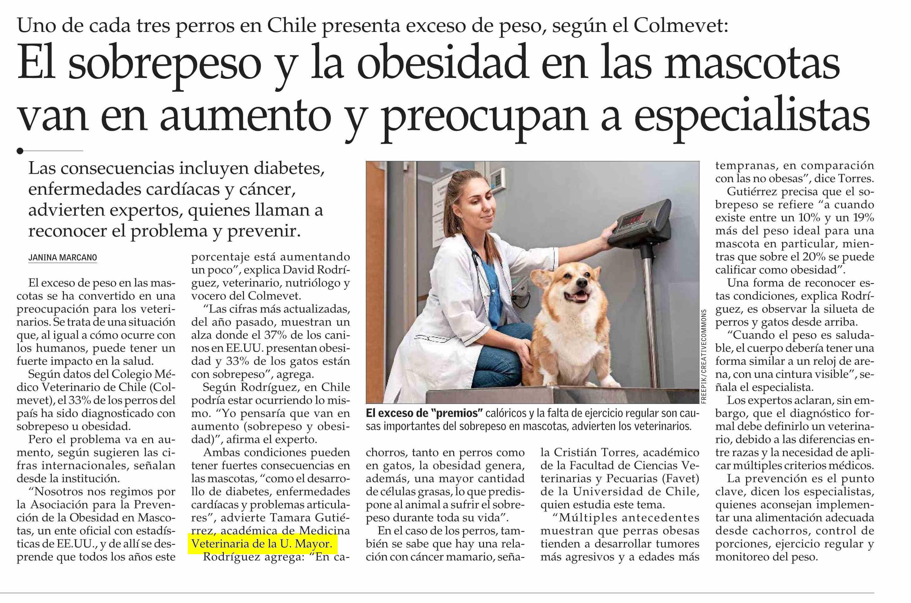 El sobrepeso y la obesidad en las mascotas van en aumento y preocupan a especialistas 28-05-2025 El Mercurio |