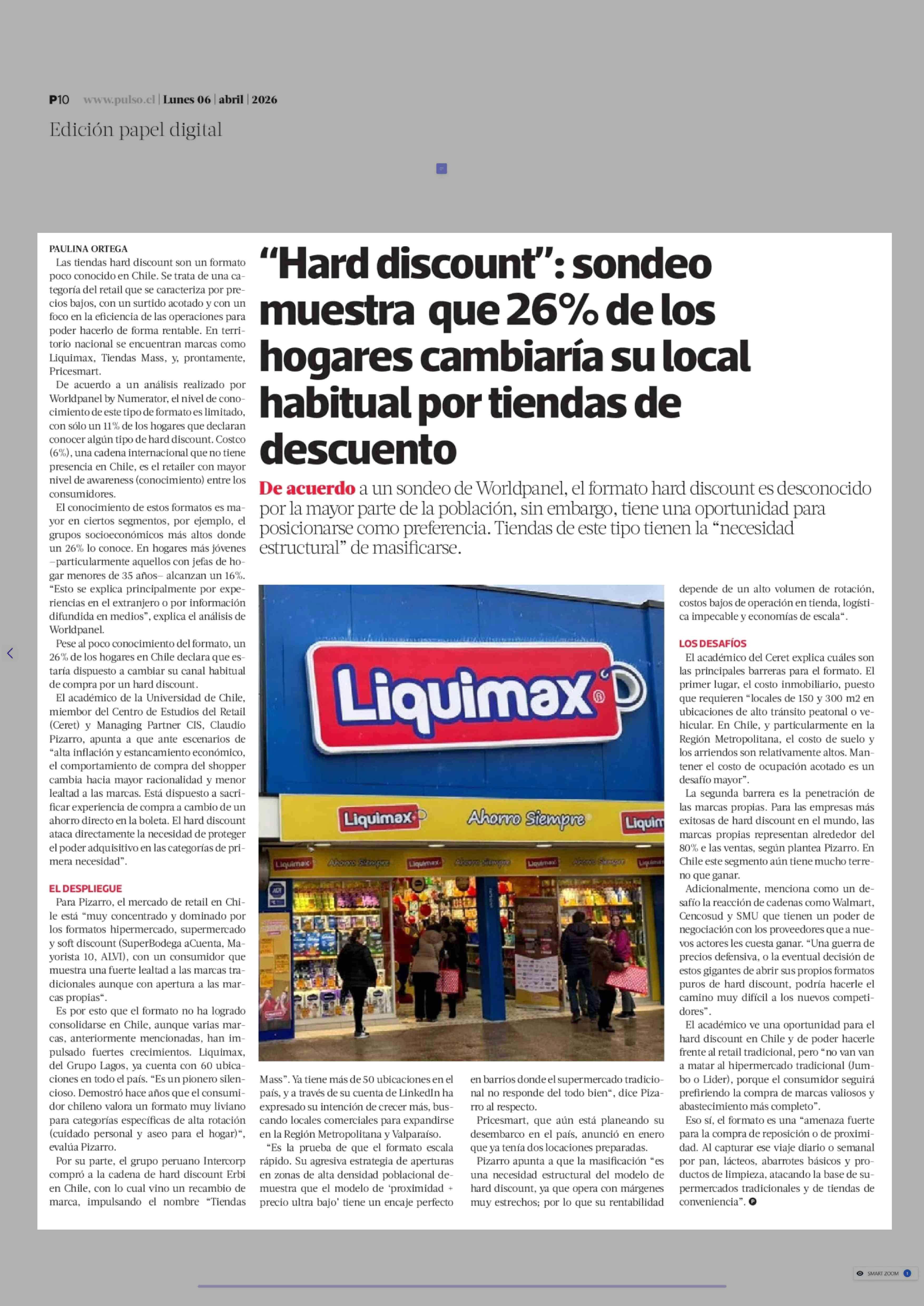 "Hard discount": sondeo muestra que 26% de los hogares cambiaría su local habitual por tiendas de descuento 06-04-2026 La Tercera |