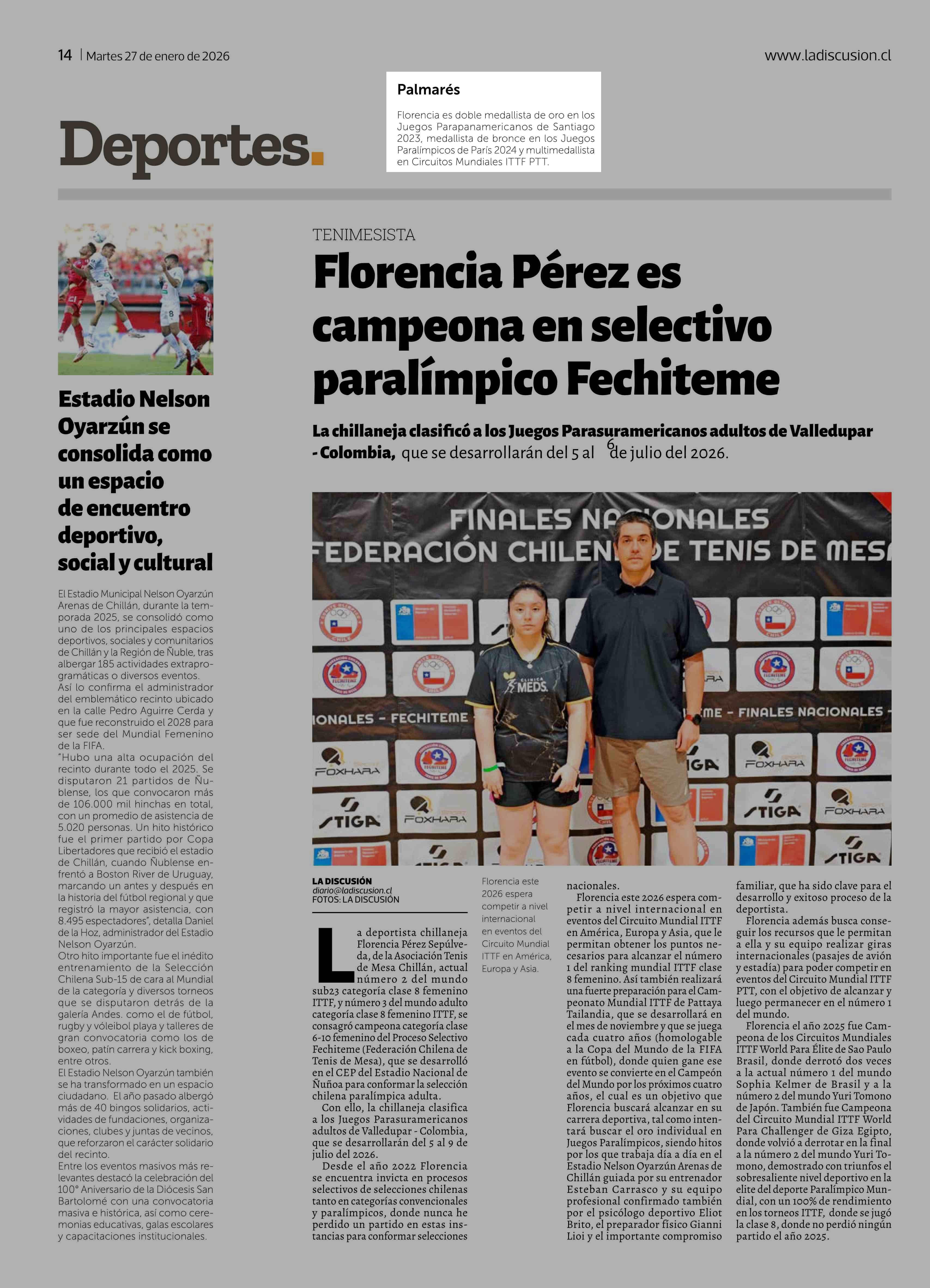 Palmares 27-01-2026 La Discusión |