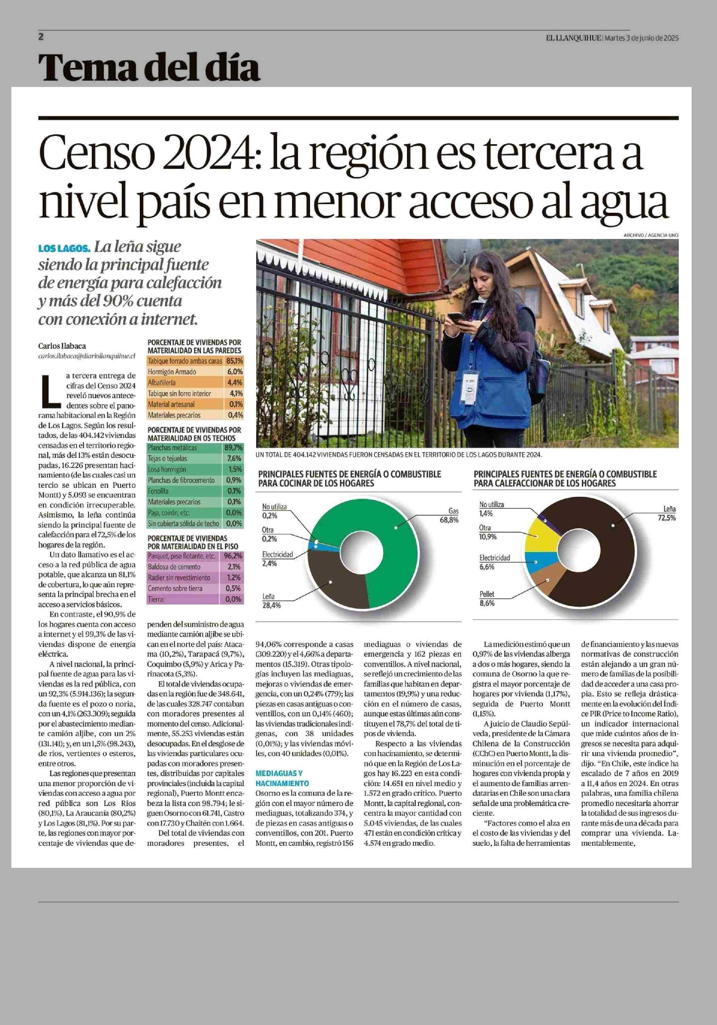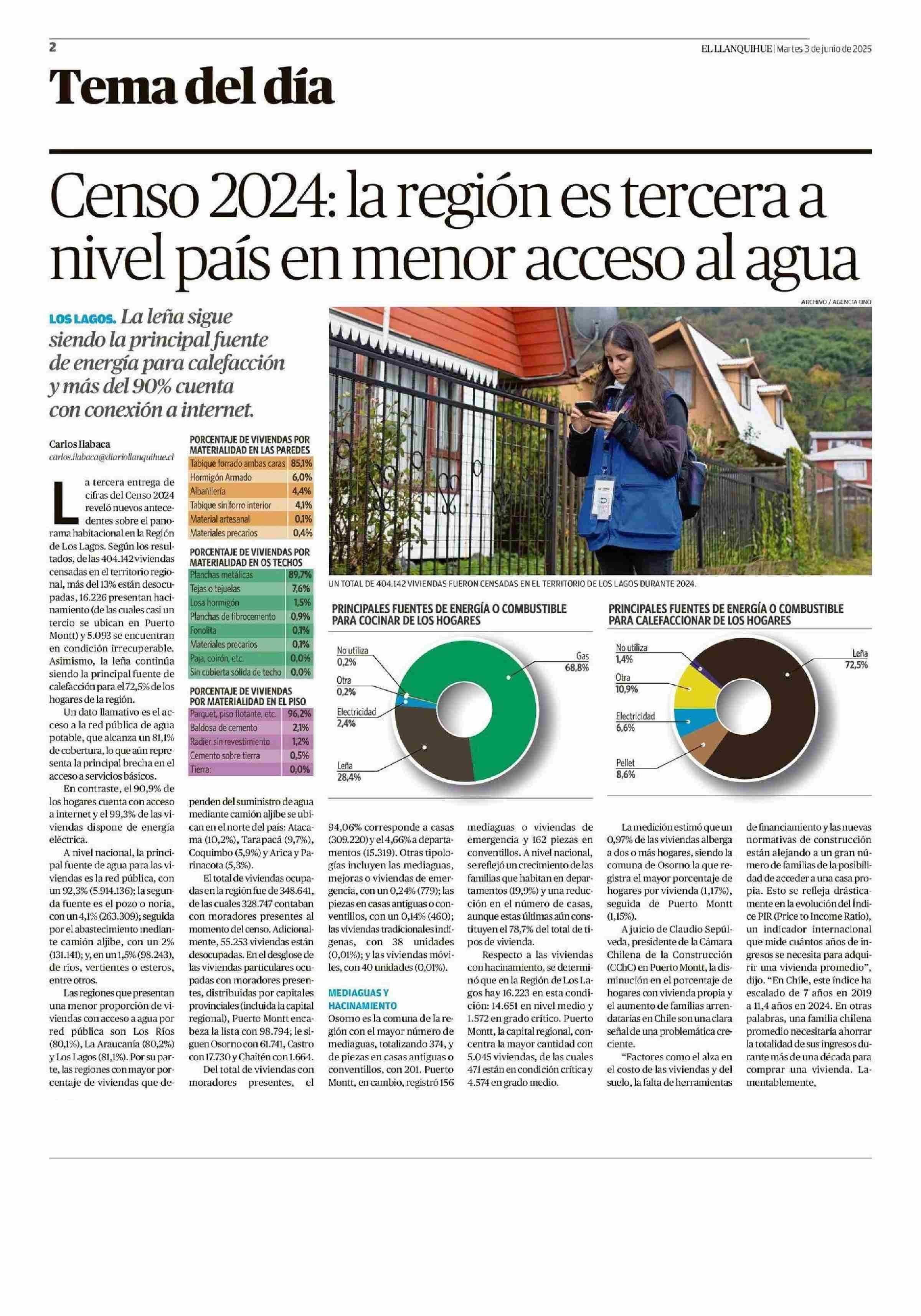 Censo 2024: la region es tercera a nivel país en menor acceso al agua 03-06-2025 El Llanquihue |