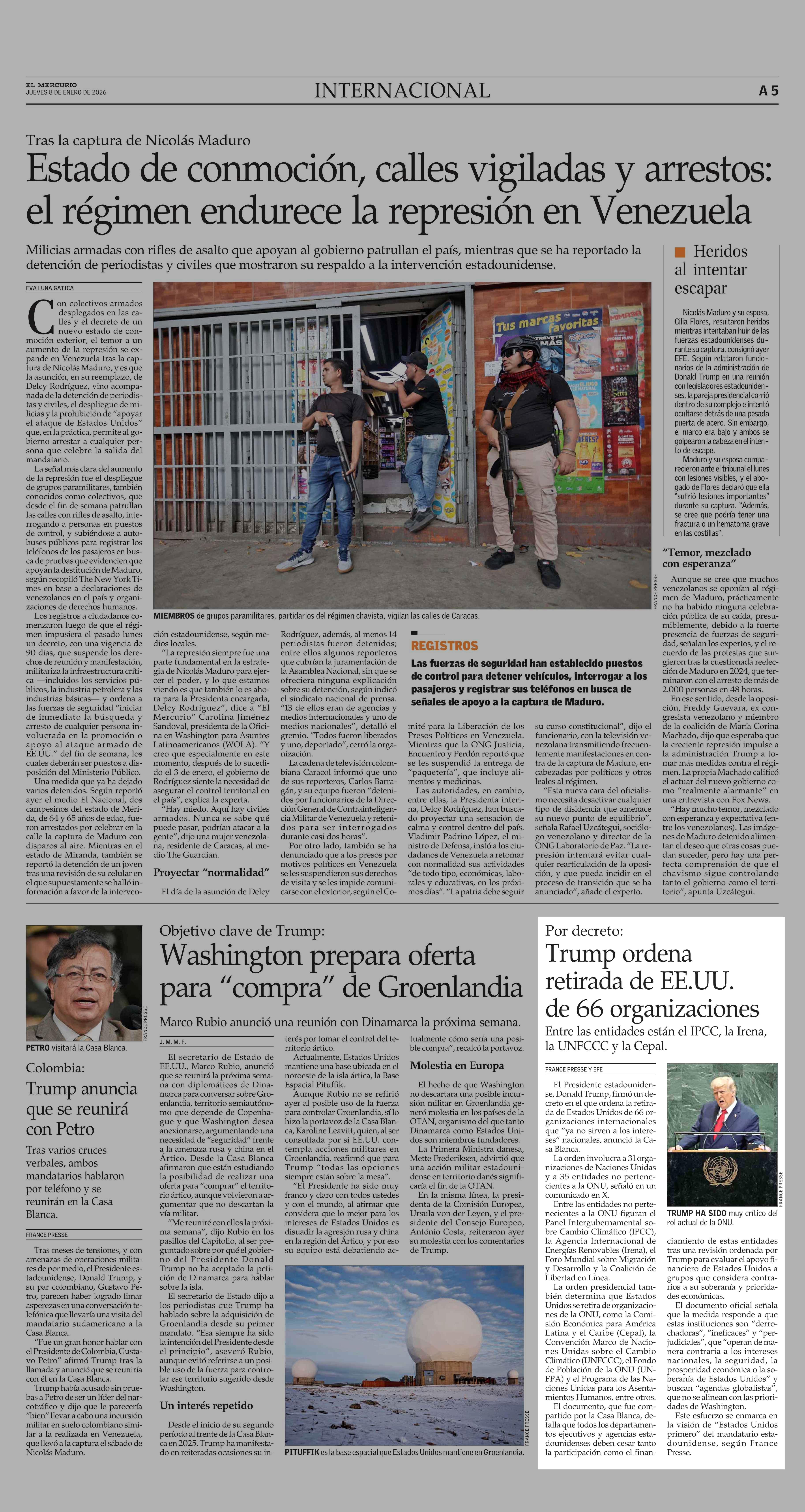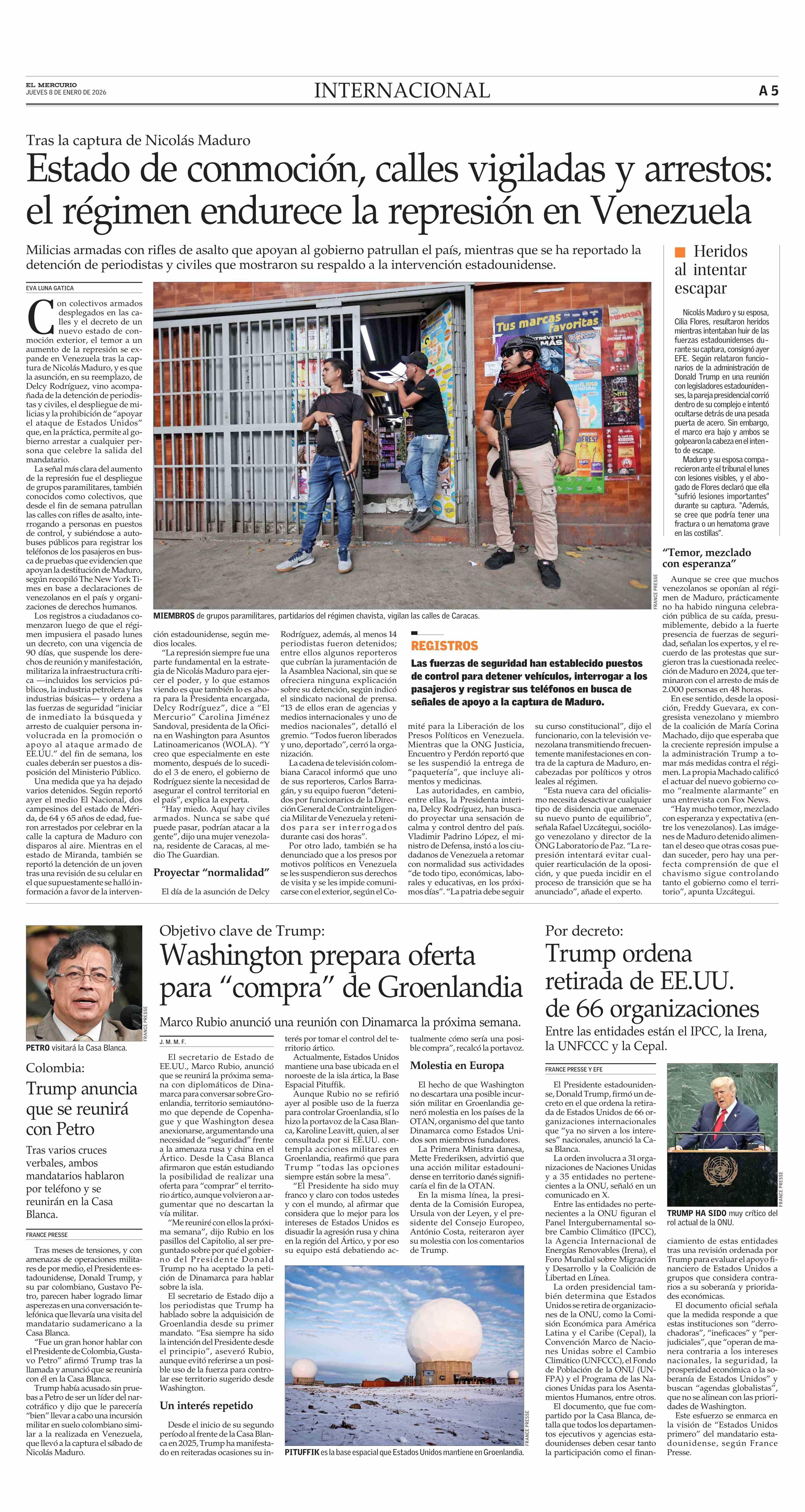 Trump ordena retirada de EE.UU. de 66 organizaciones 08-01-2026 El Mercurio |