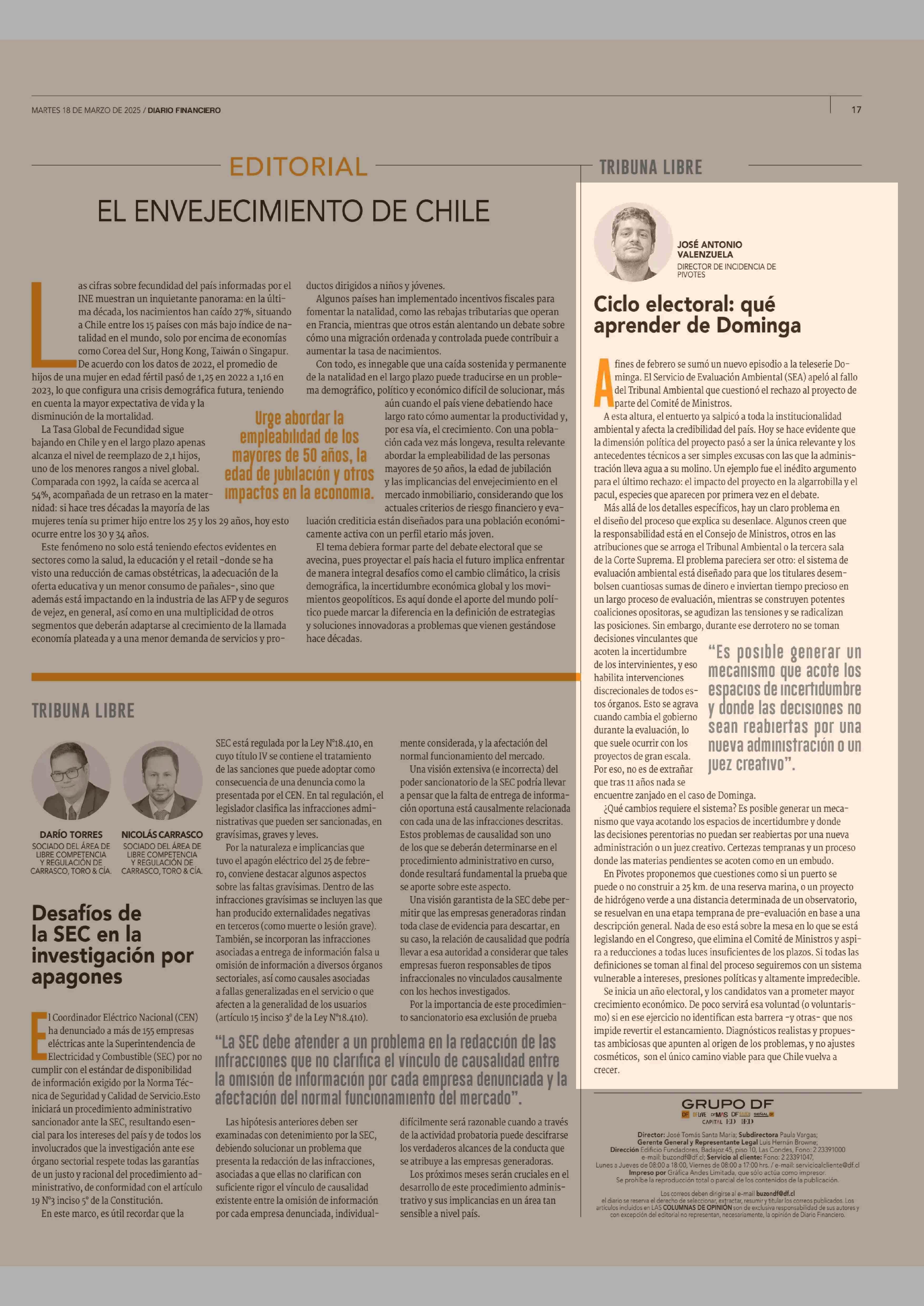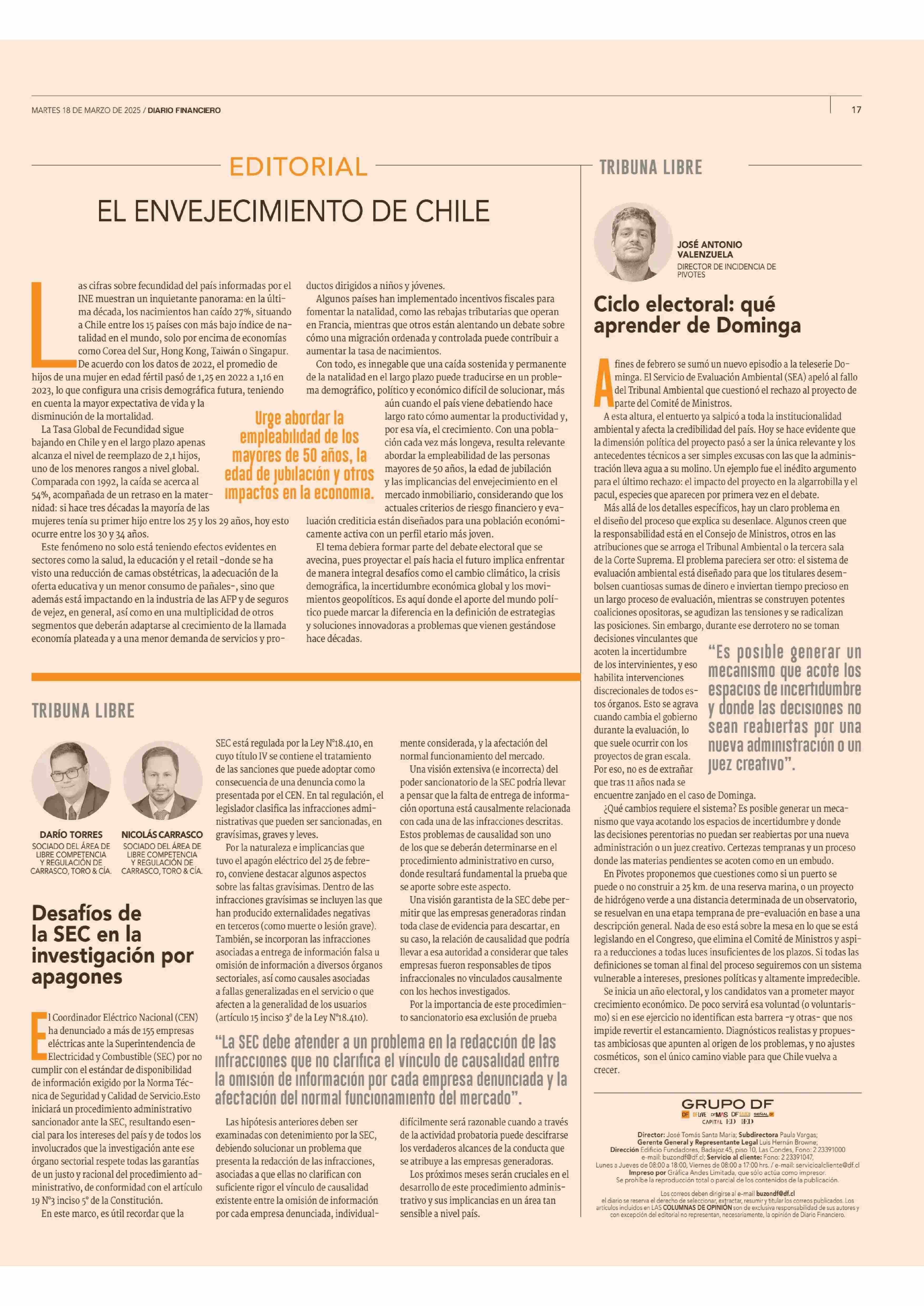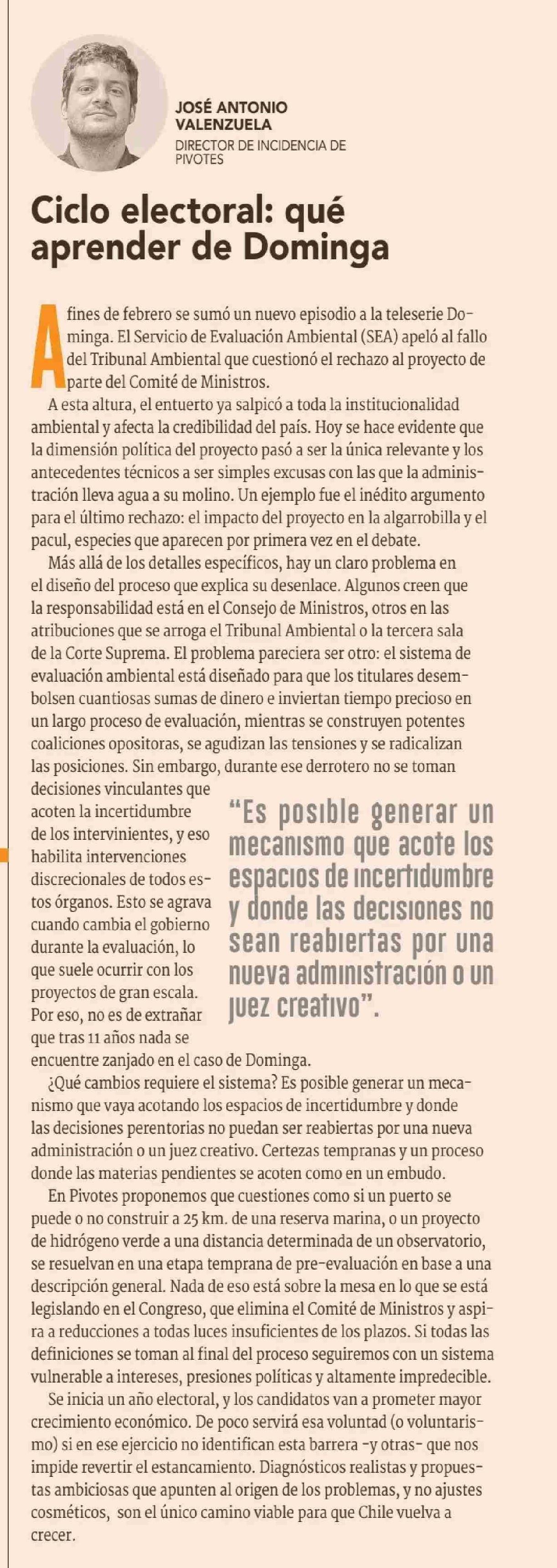 COLUMNAS DE OPINIÓN: Ciclo electoral: qué aprender de Dominga 18-03-2025 Diario Financiero |