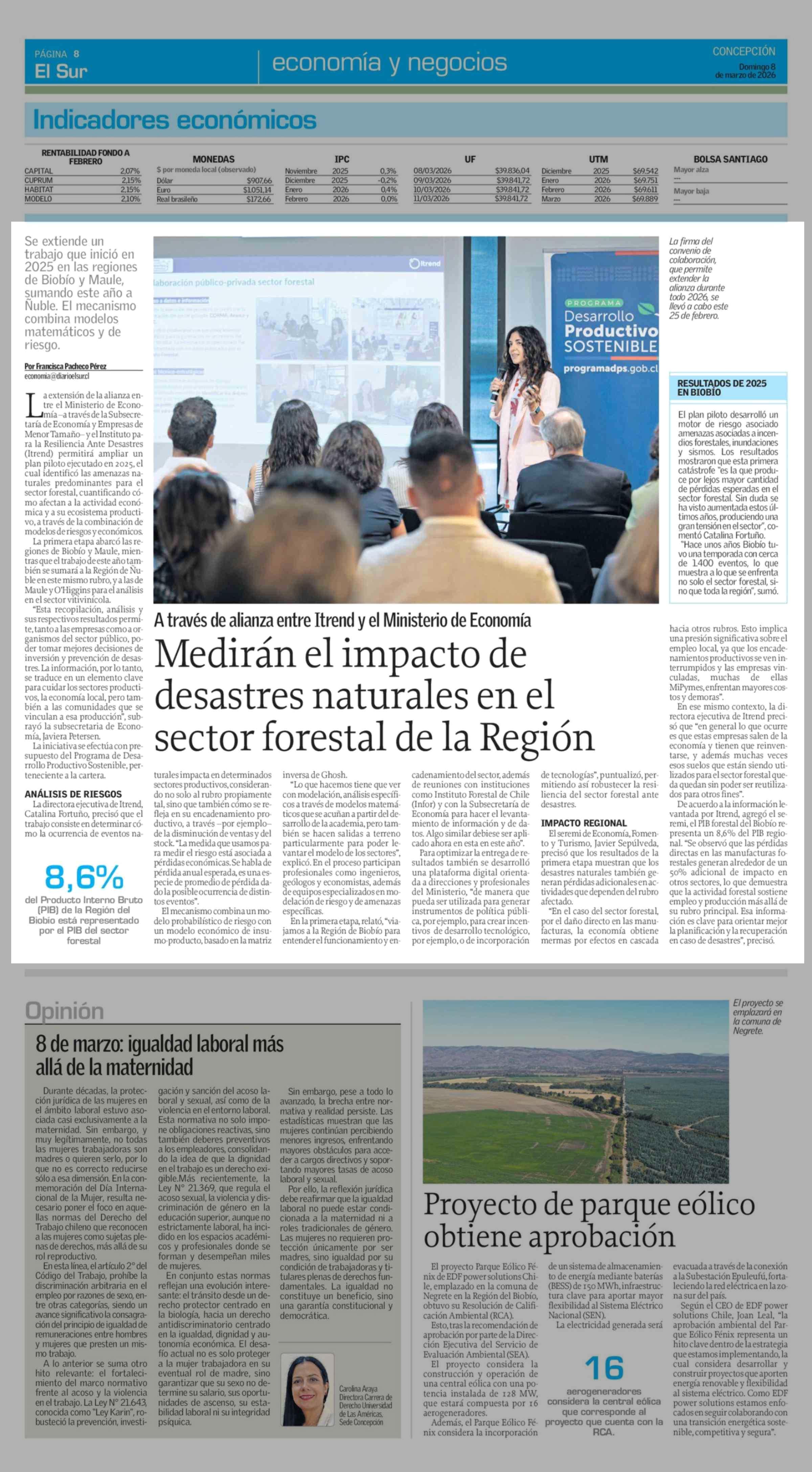 Medirán el impacto de desastres naturales en el sector forestal de la Región 08-03-2026 El Sur |