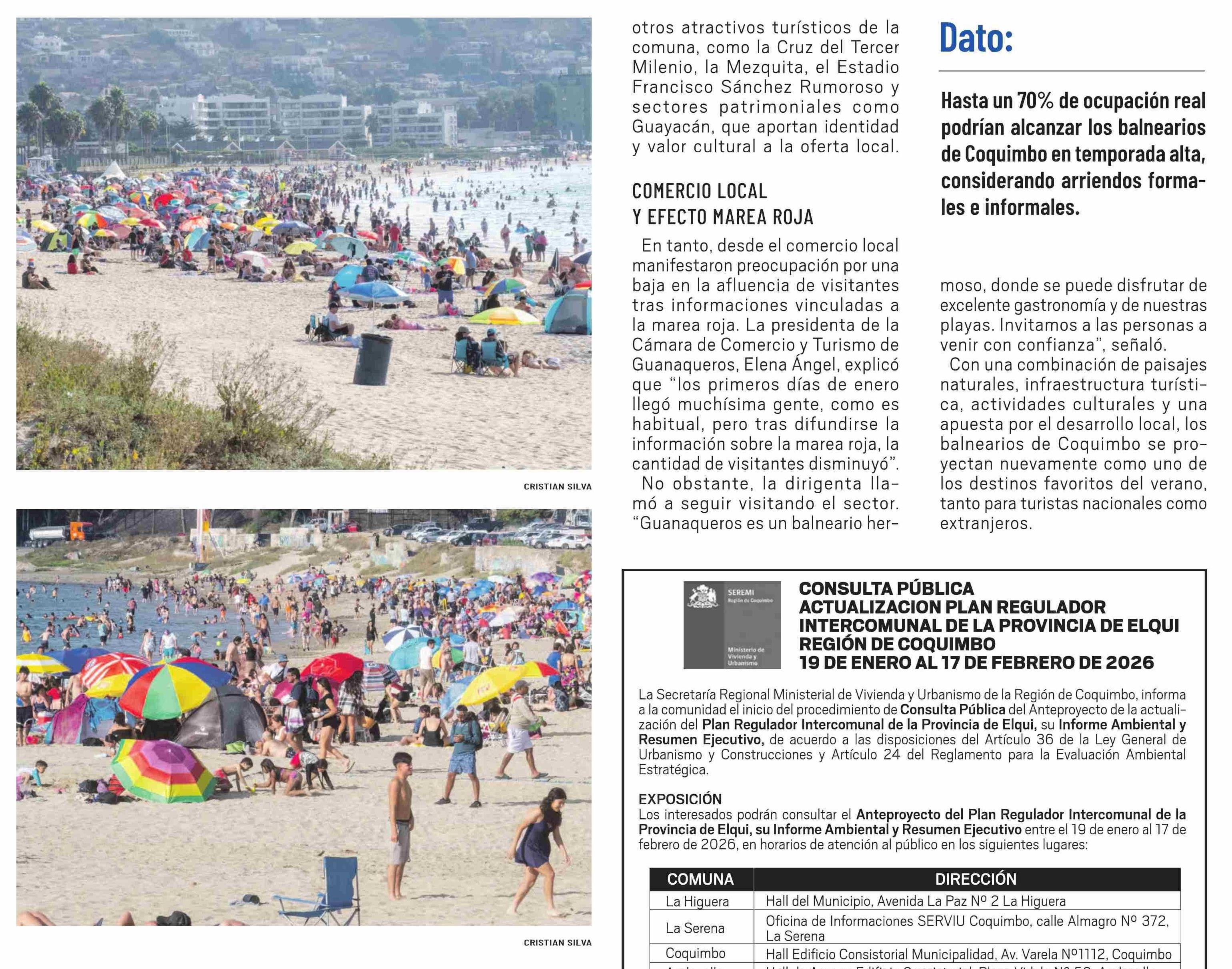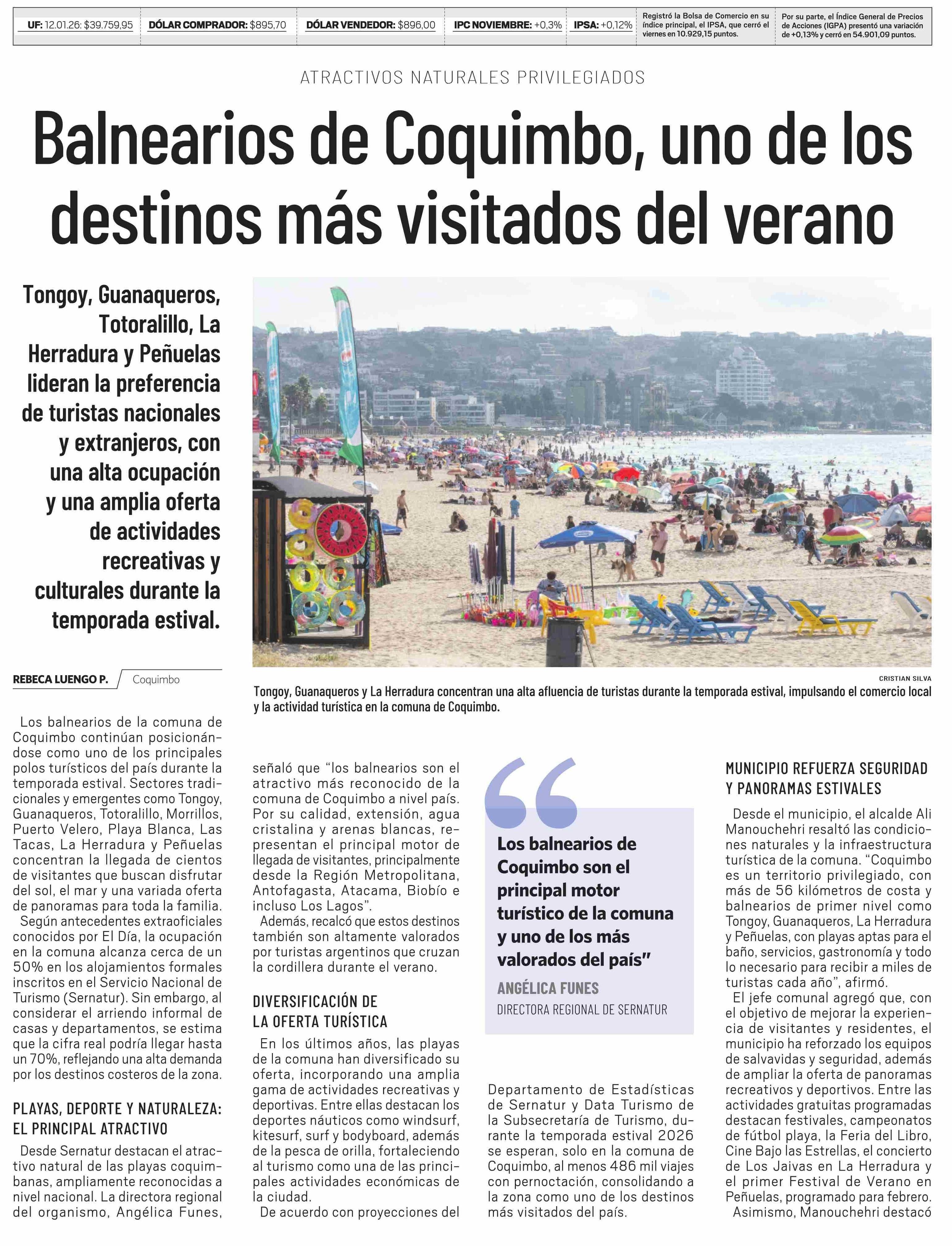 Balnearios de Coquimbo, uno de los destinos más visitados del verano 12-01-2026 El Día |