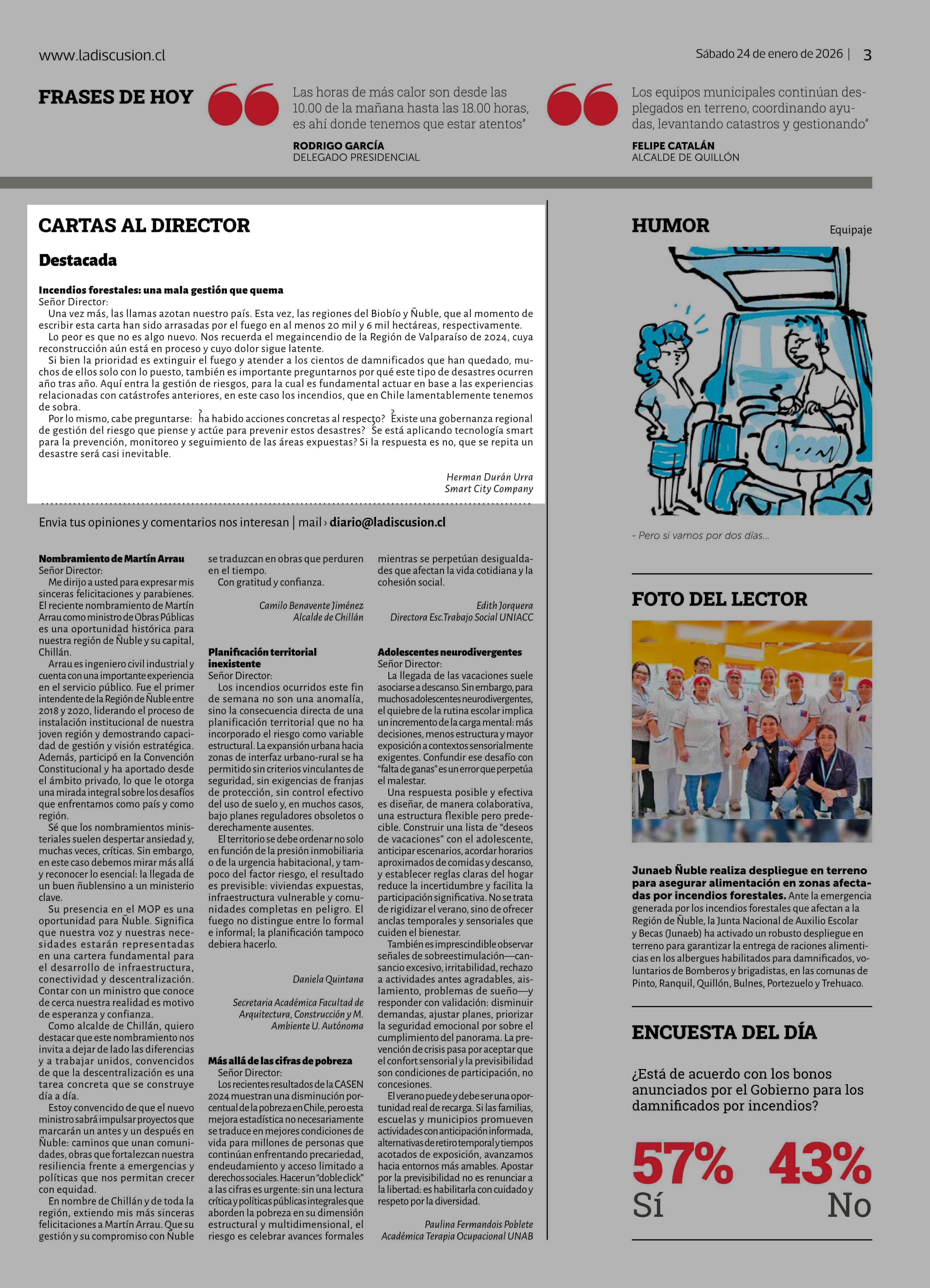 Cartas: CARTAS AL DIRECTOR 24-01-2026 La Discusión |