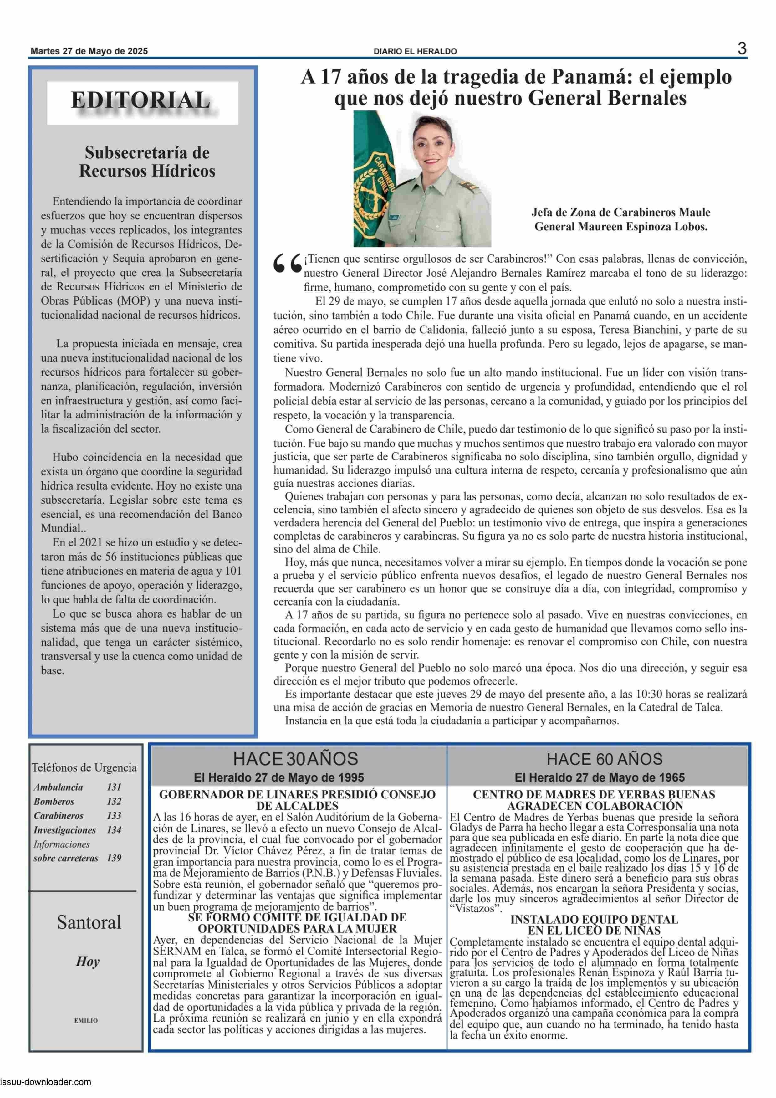 EDITORIAL: Subsecretaría de Recursos Hídricos 27-05-2025 El Heraldo |