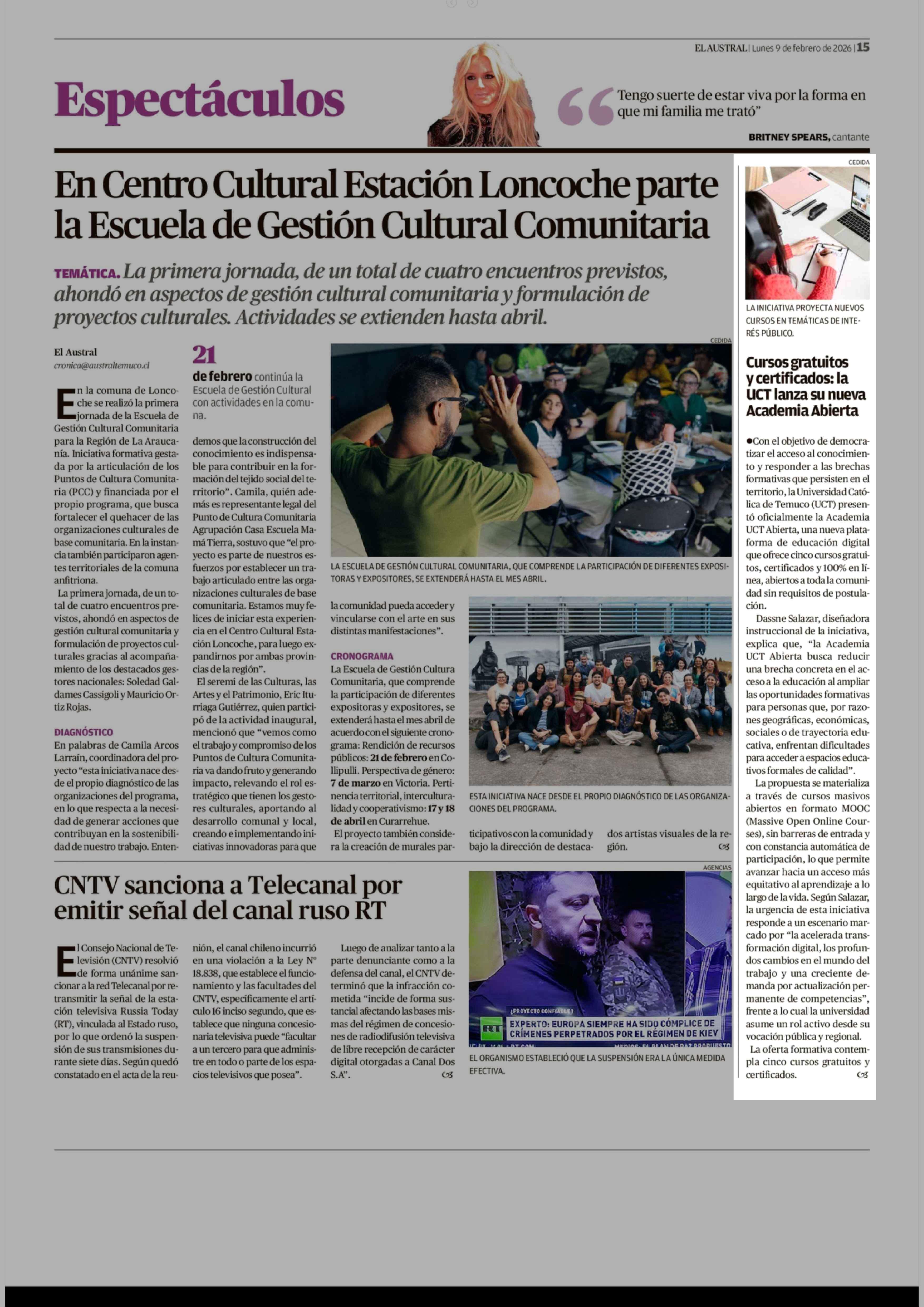 Cursos gratuitos y certificados: la UCT lanza su nueva Academia Abierta 09-02-2026 El Austral de la Araucanía |