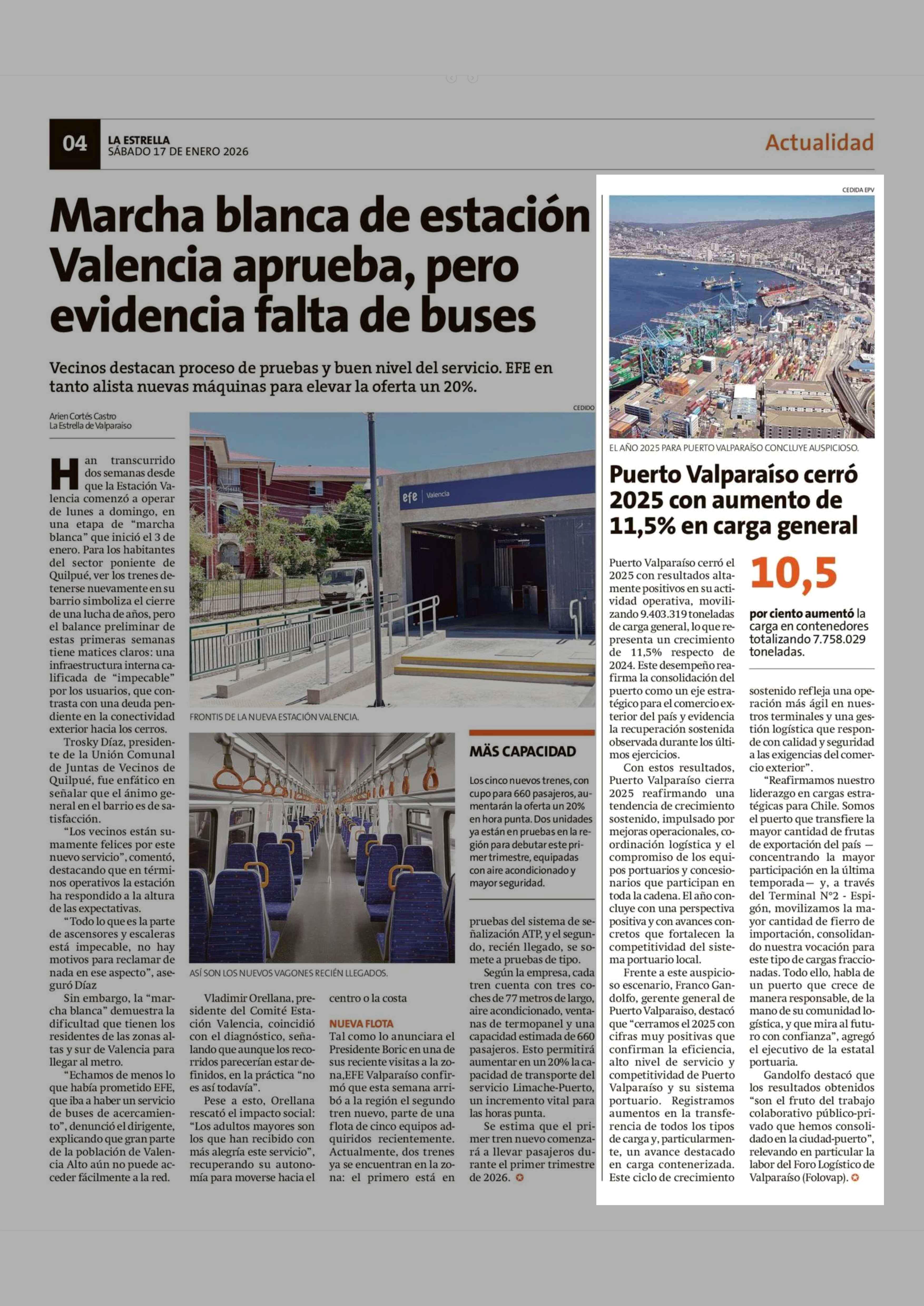Puerto Valparaíso cerró 2025 con aumento de 11,5% en carga general 17-01-2026 La Estrella de Valparaíso |