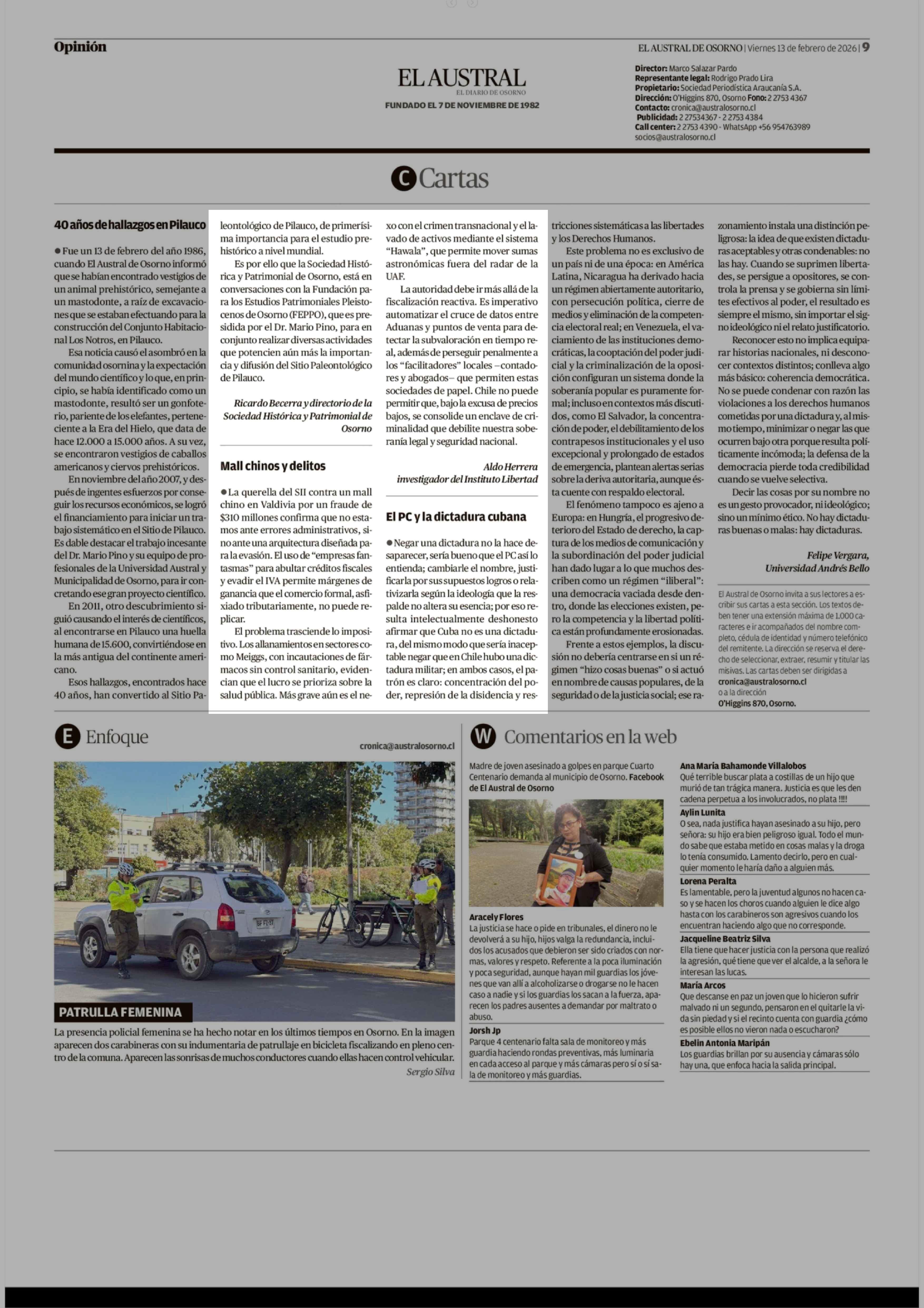 Fuente: El Austral de Osorno (El Austral de Osorno) Página(s): 9