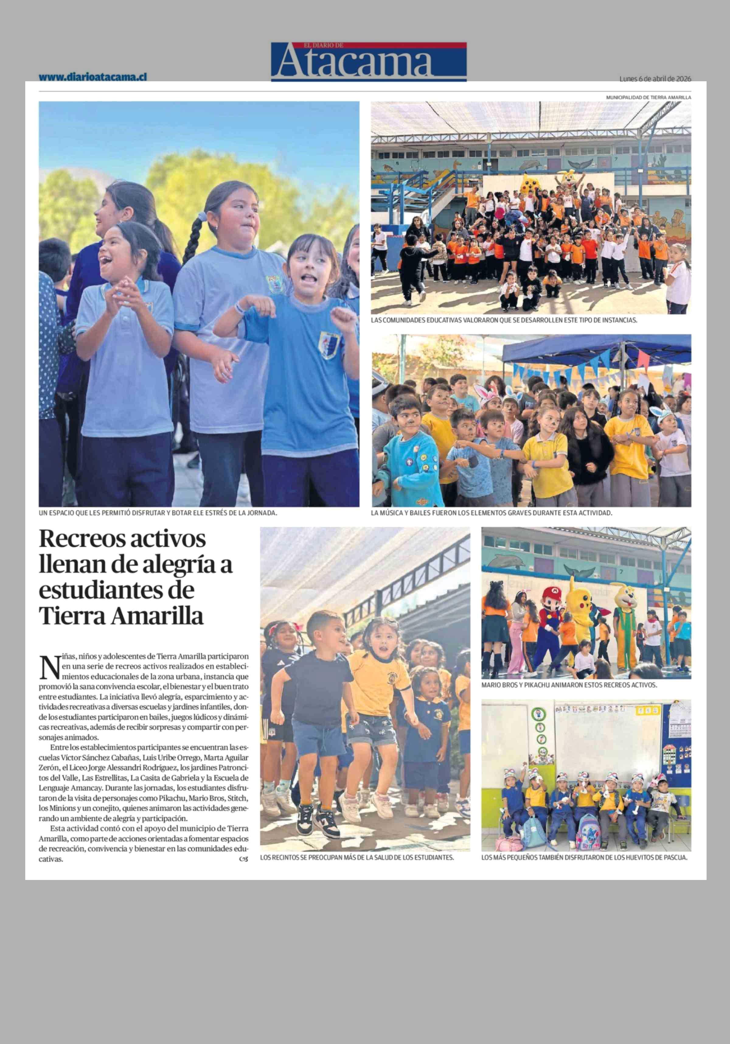 Título: Recreos activos llenan de alegría a estudiantes de Tierra Amarilla