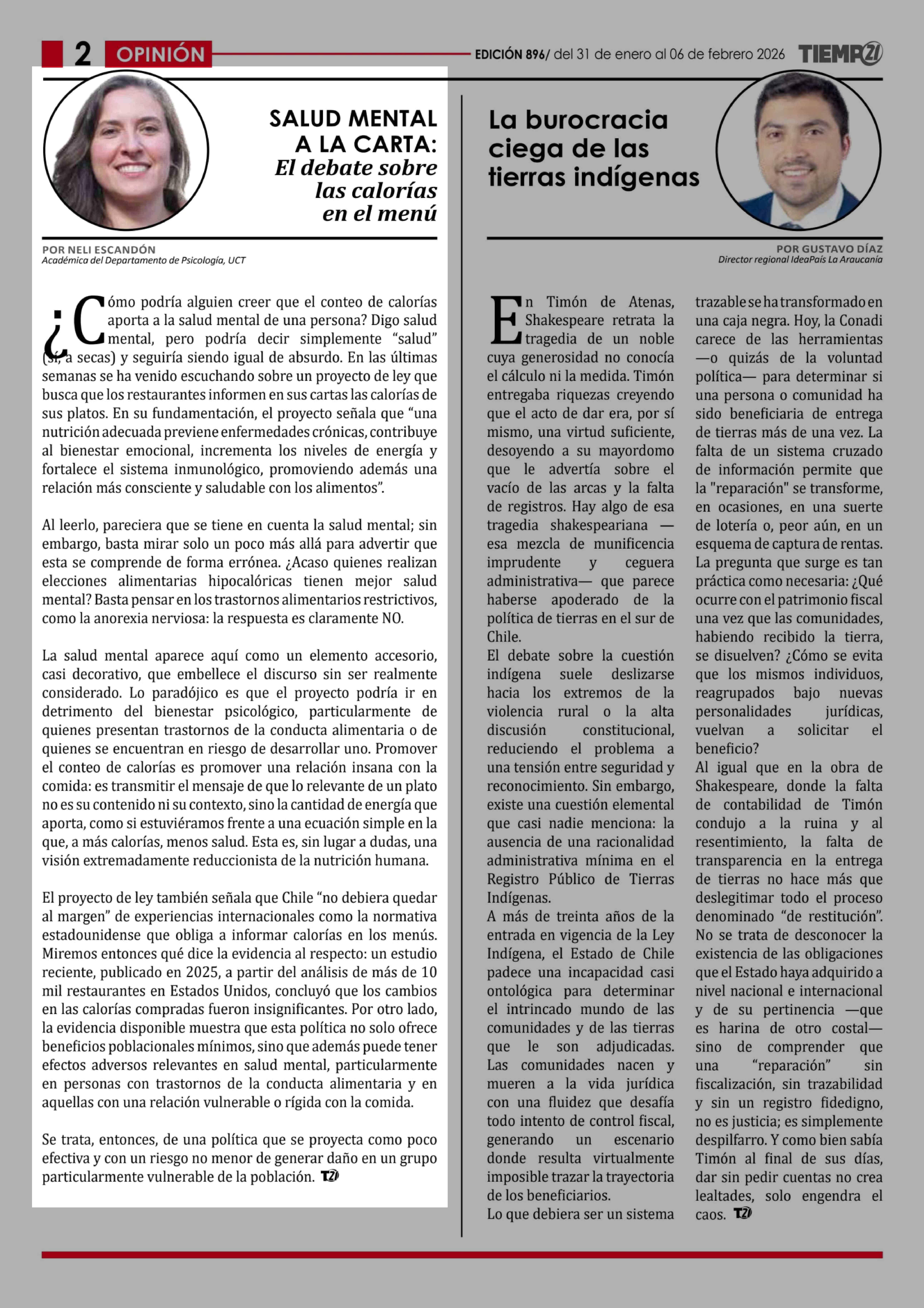 | Fecha: | 31-01-2026 | Sector: | Columnas de Opinión | Región: | Región de la Araucanía |