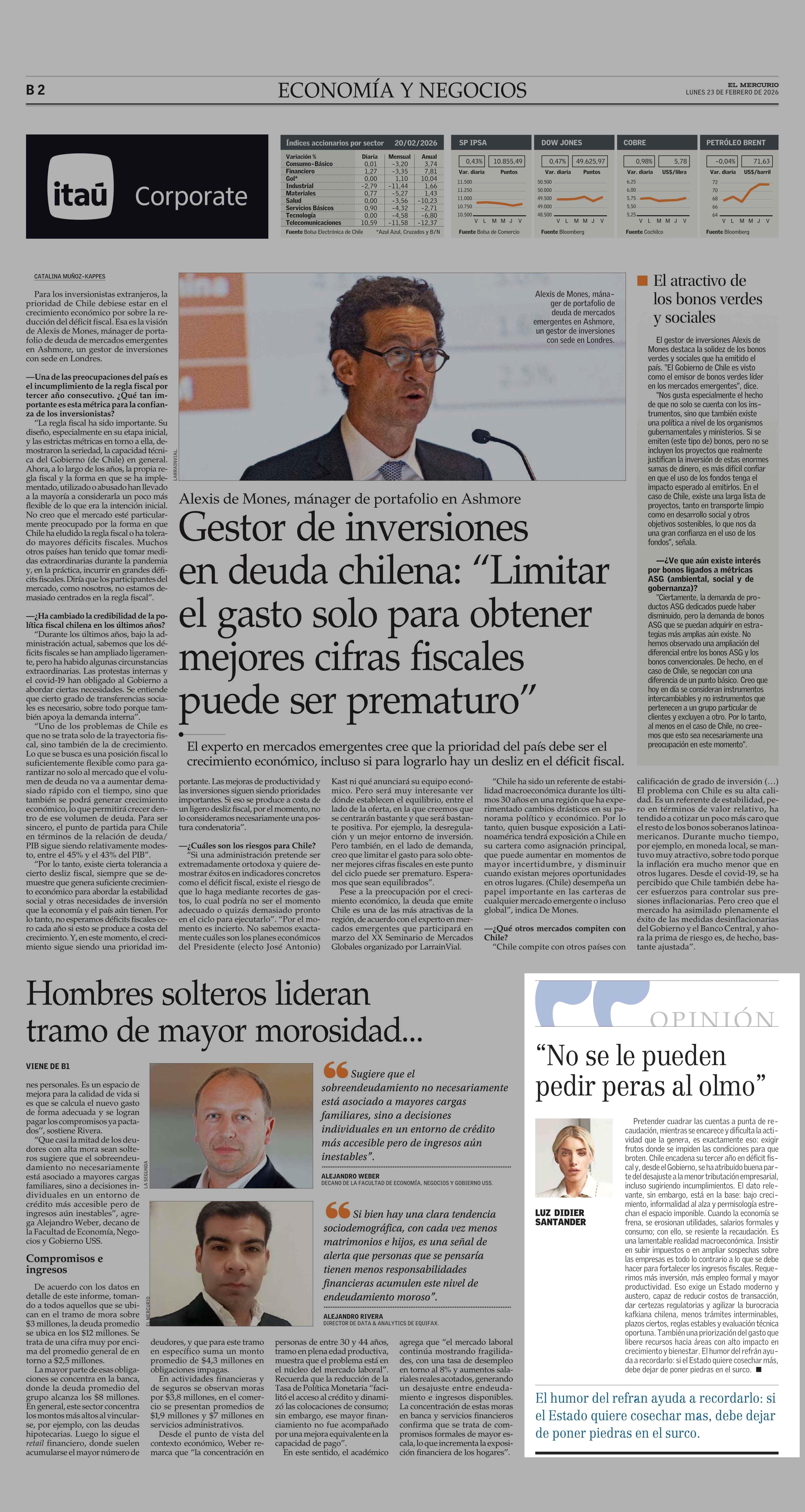 COLUMNAS DE OPINIÓN: "No se le pueden pedir peras al olmo" 23-02-2026 El Mercurio |