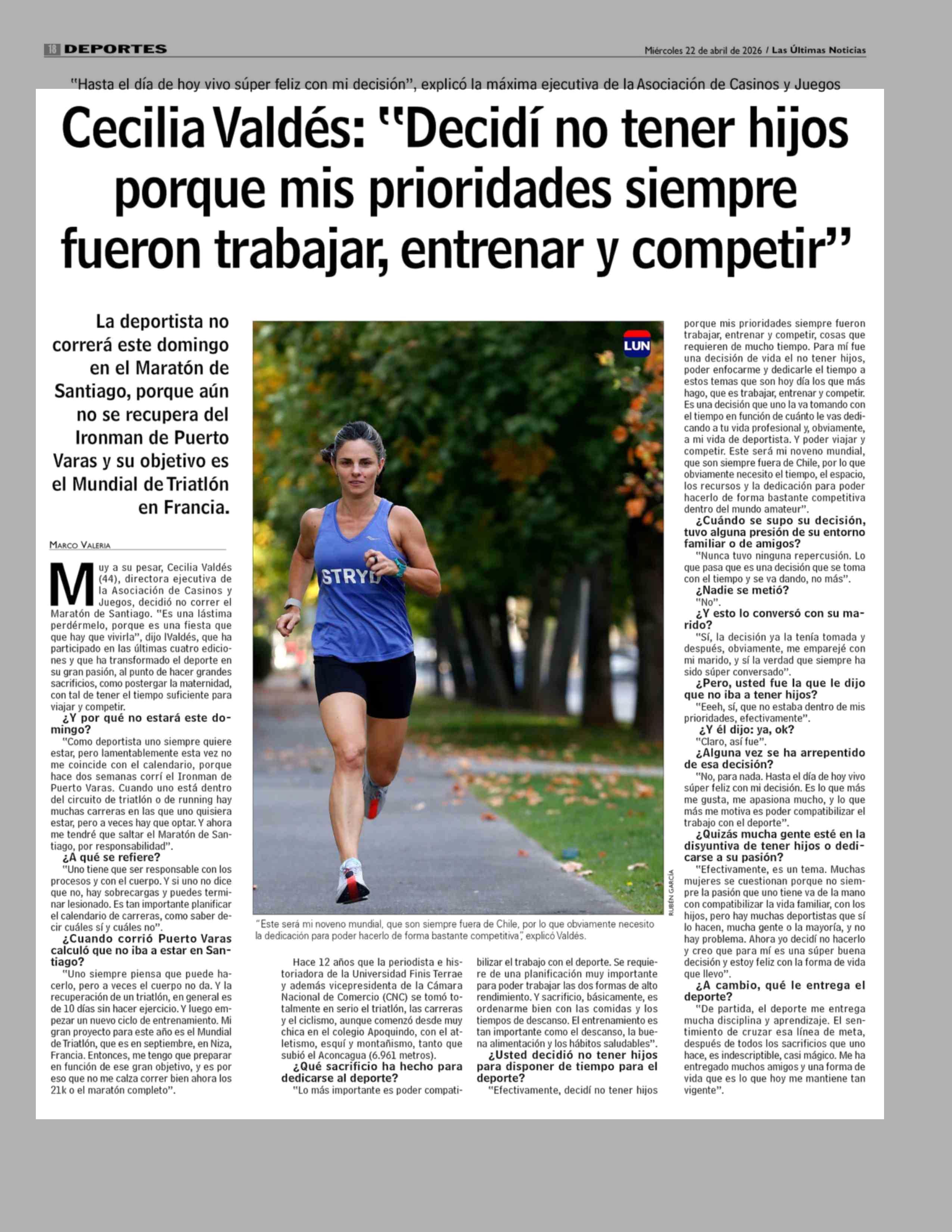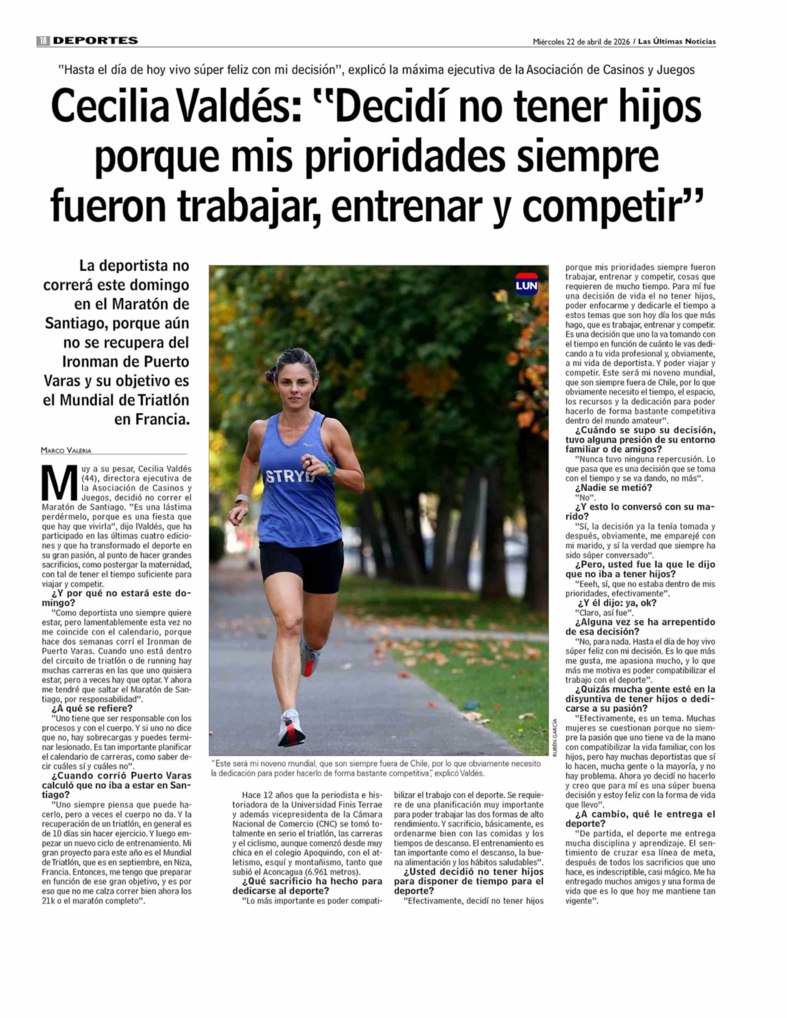 Título: Cecilia Valdés: "Decidí no tener hijos porque mis prioridades siempre fueron trabajar, entrenar y competir"