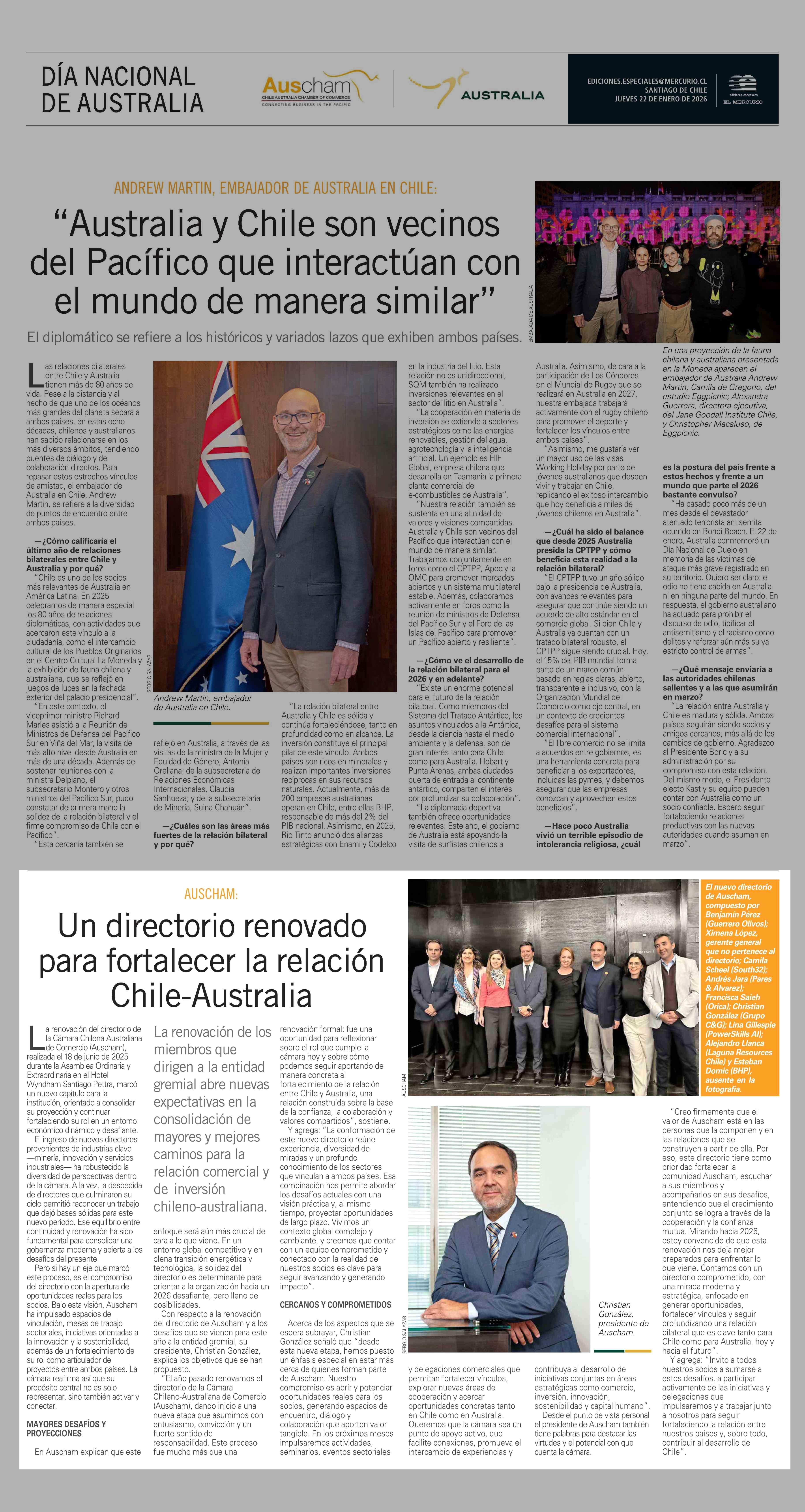 Un directorio renovado para fortalecer la relación Chile-Australia 22-01-2026 El Mercurio |