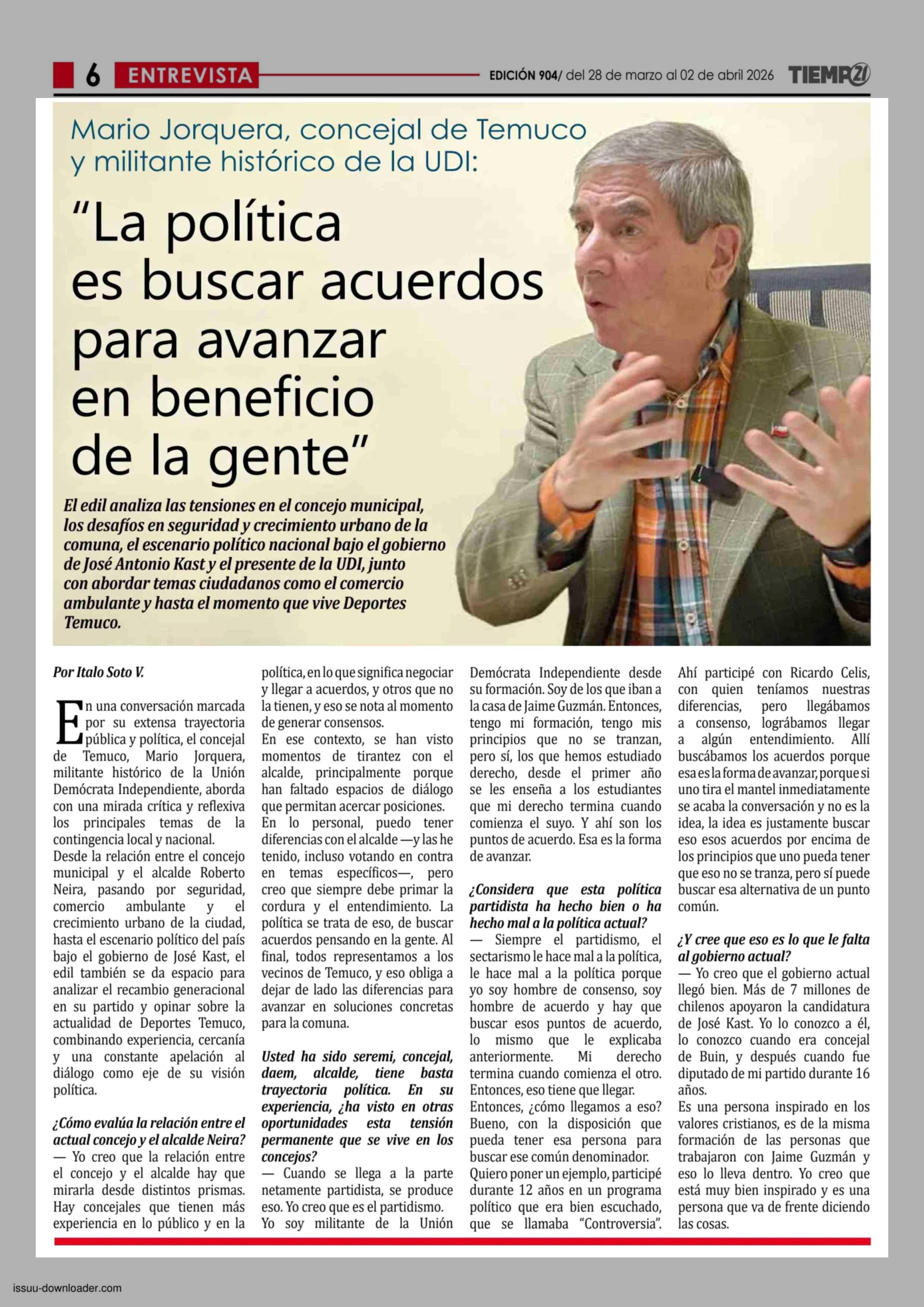 "La política es buscar acuerdos para avanzar en beneficio de la gente" 28-03-2026 Tiempo 21 |