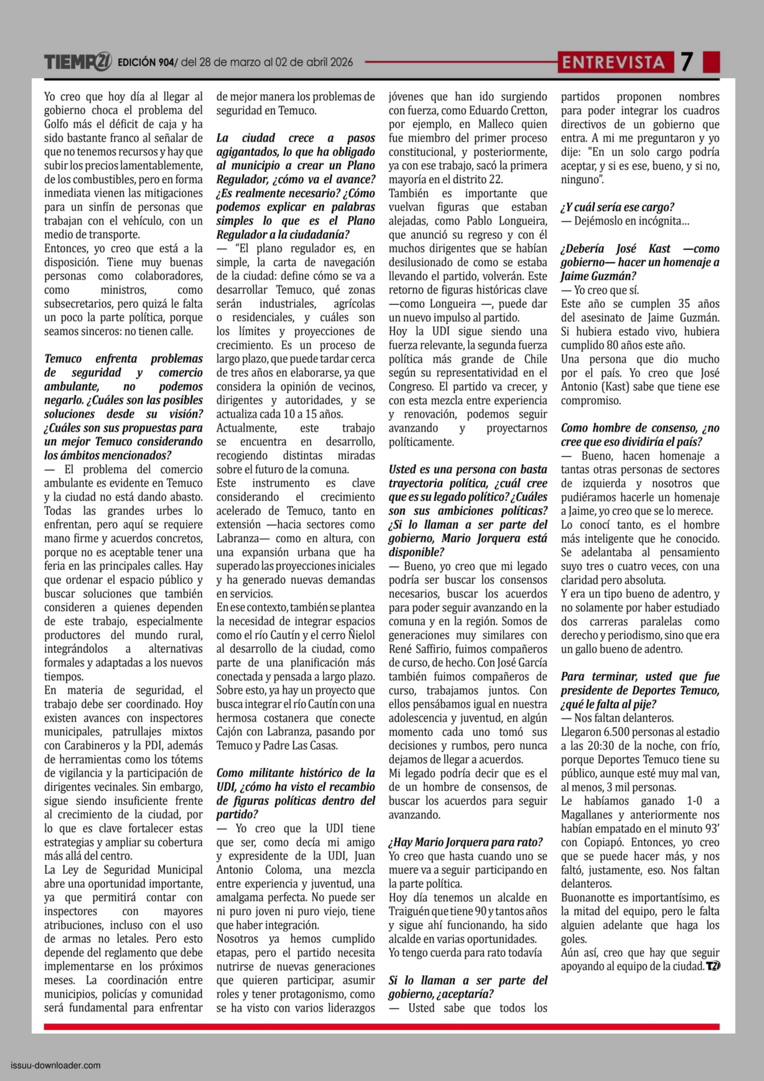 | Fecha: | 28-03-2026 | Sector: | Noticia general | Región: | Región de la Araucanía |