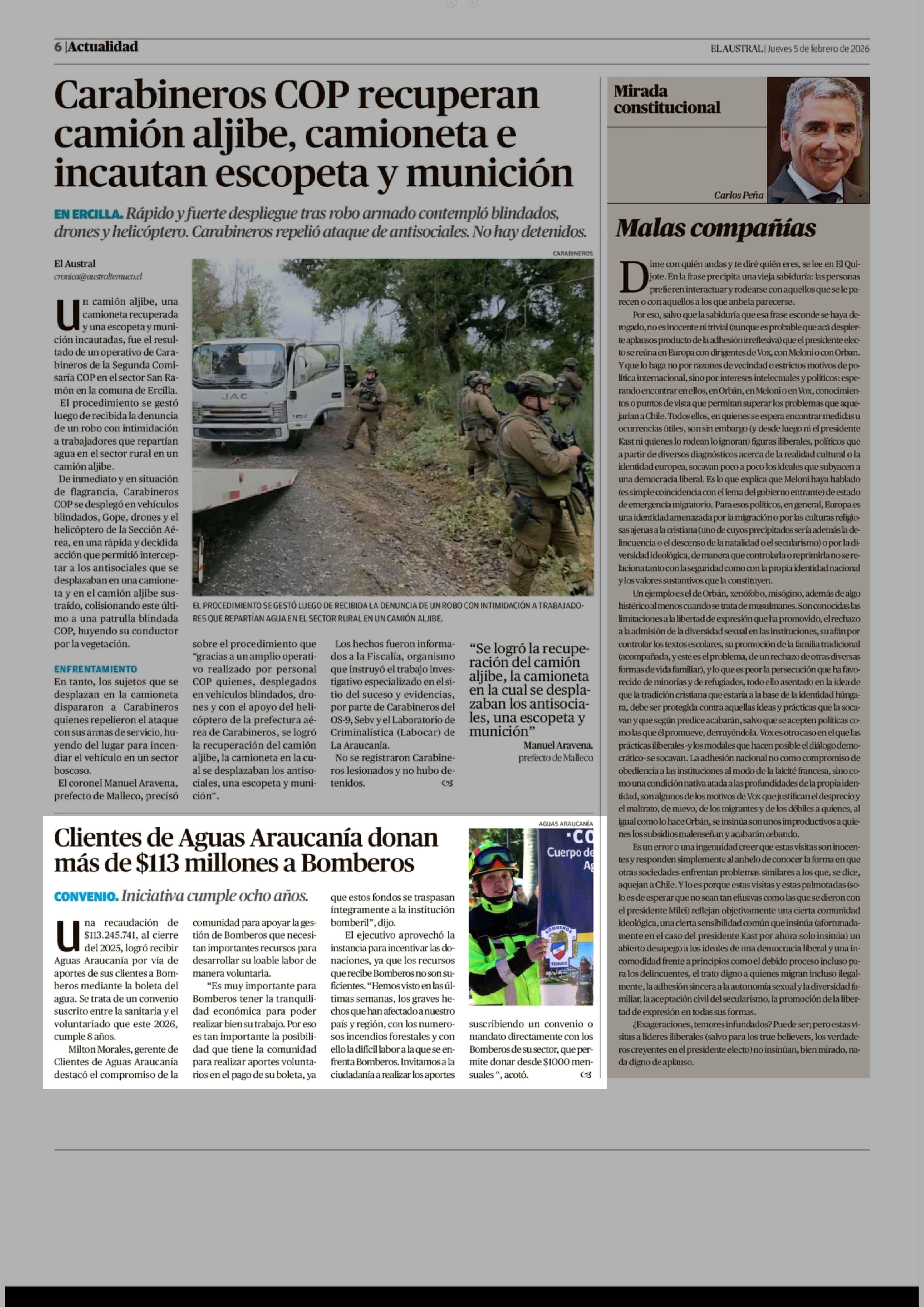 Clientes de Aguas Araucanía donan más de $113 millones a Bomberos 05-02-2026 El Austral de la Araucanía |