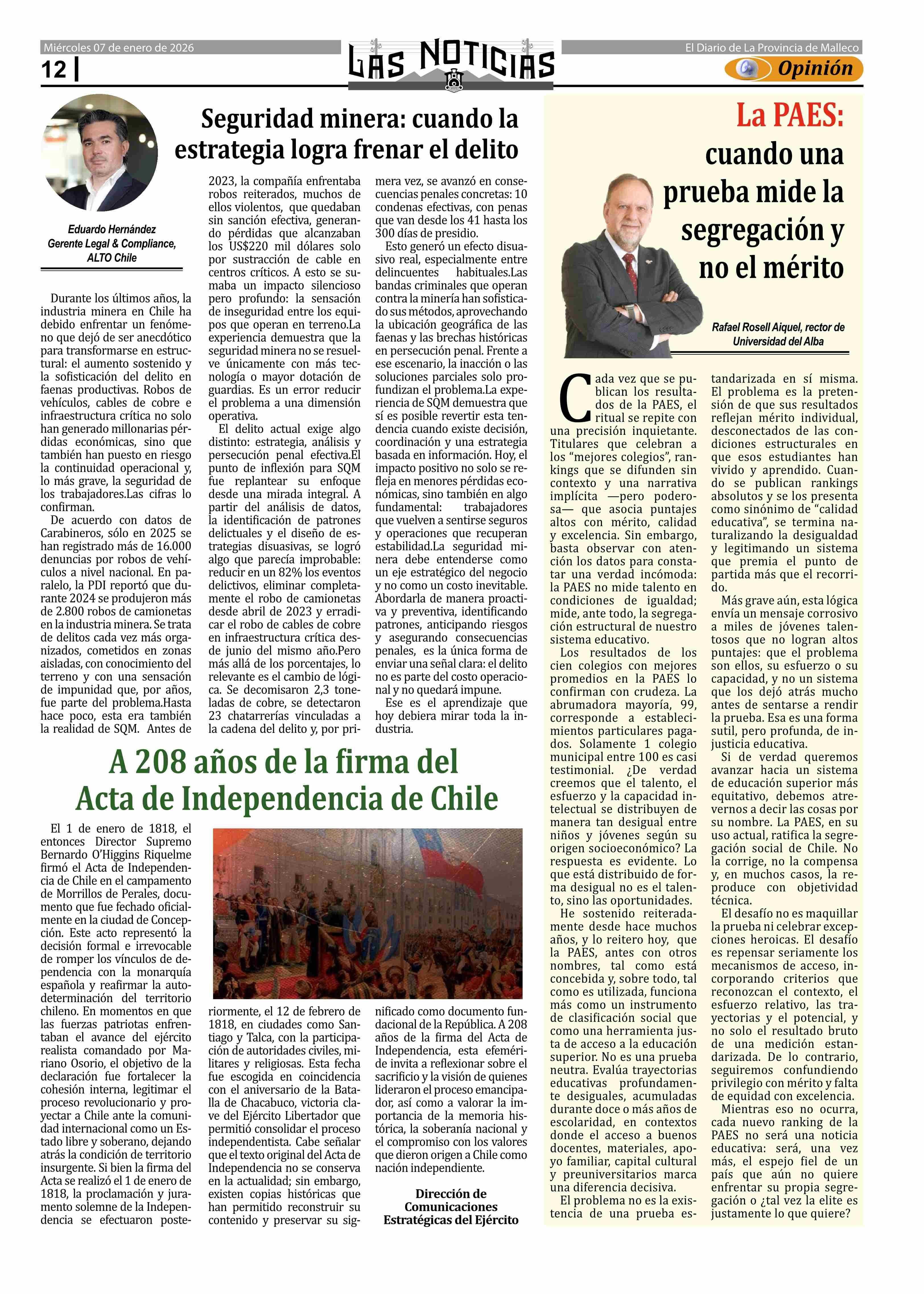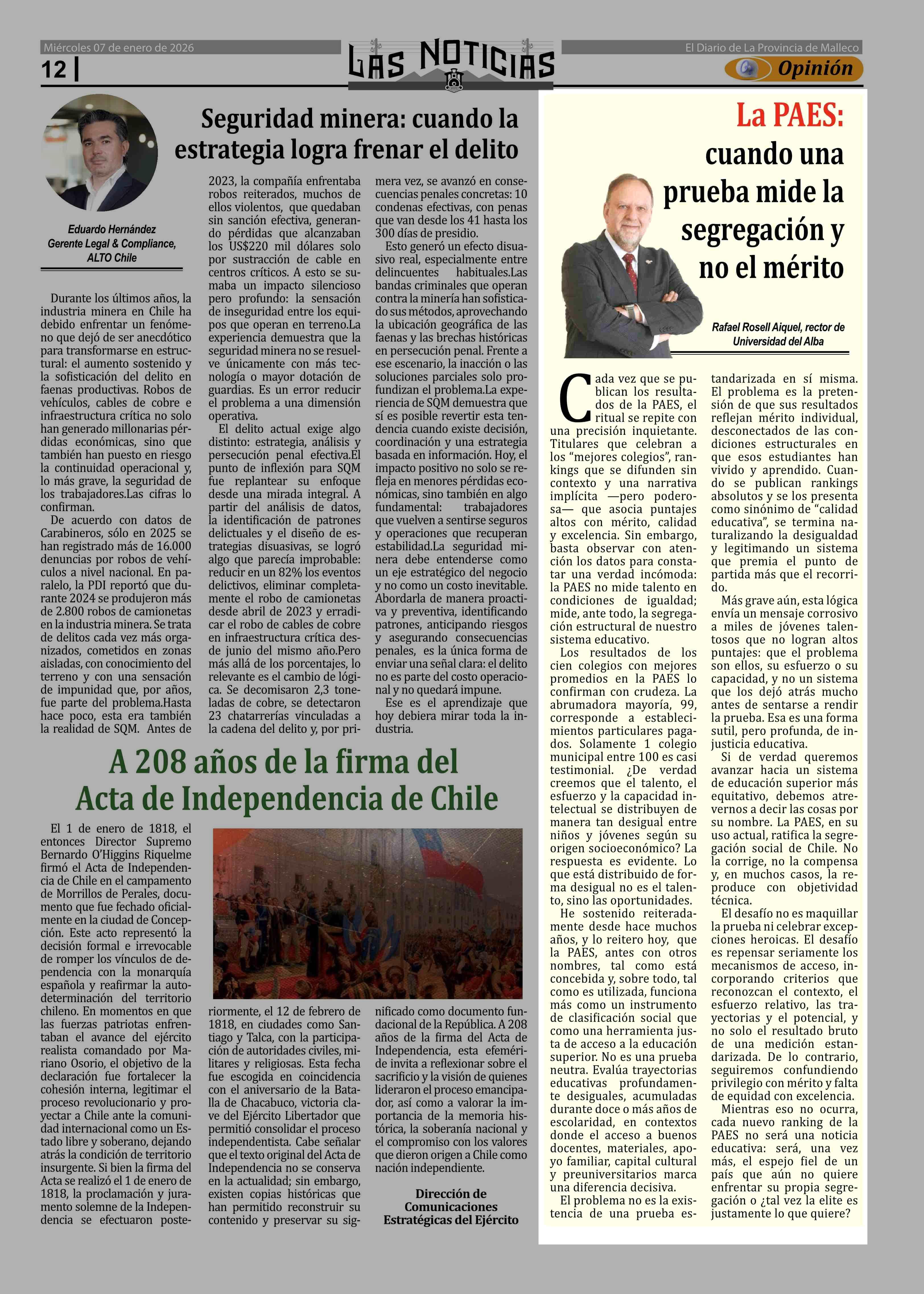 Fecha: 07-01-2026 Sector: Columnas de Opinión Región: Región de la Araucanía