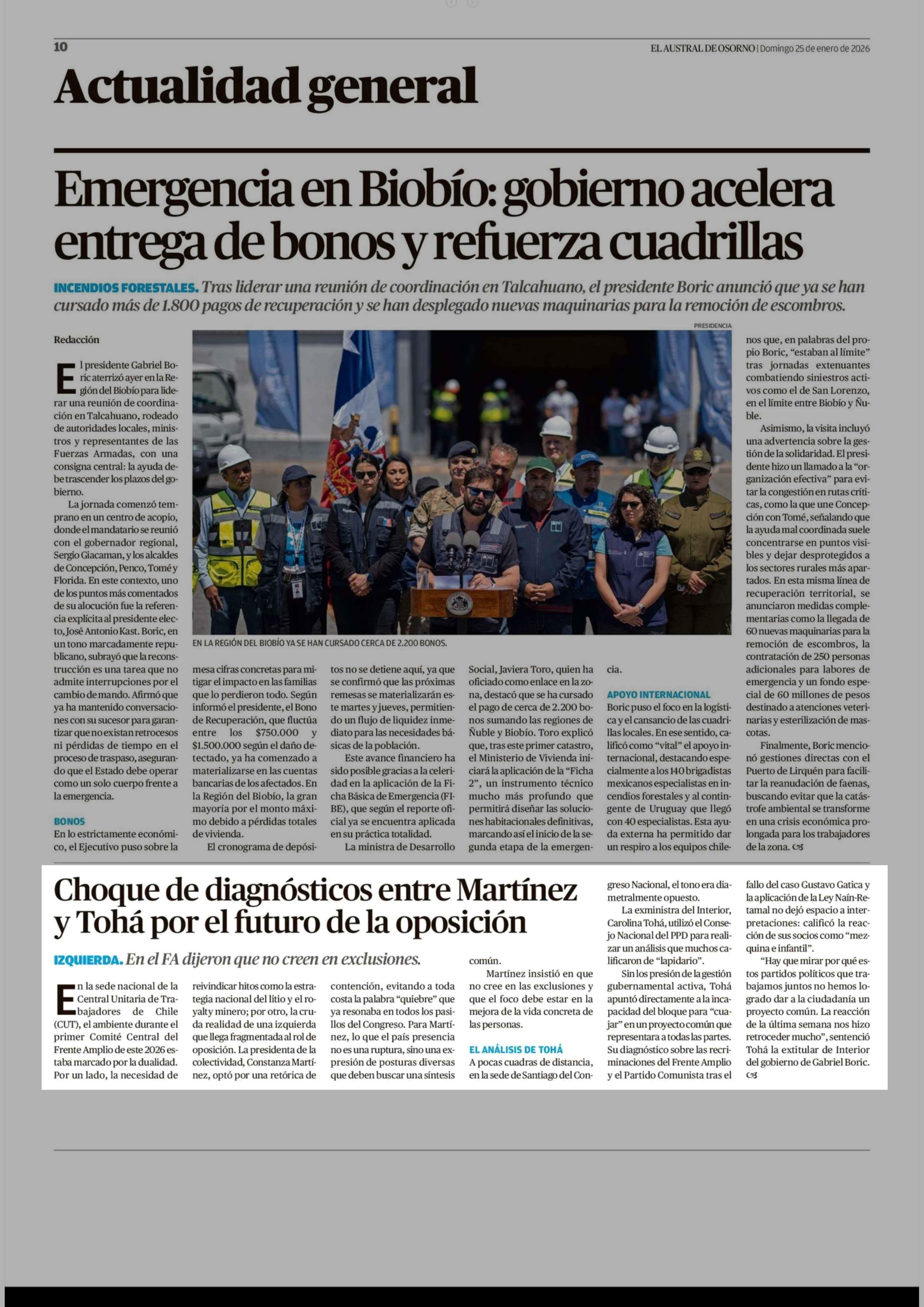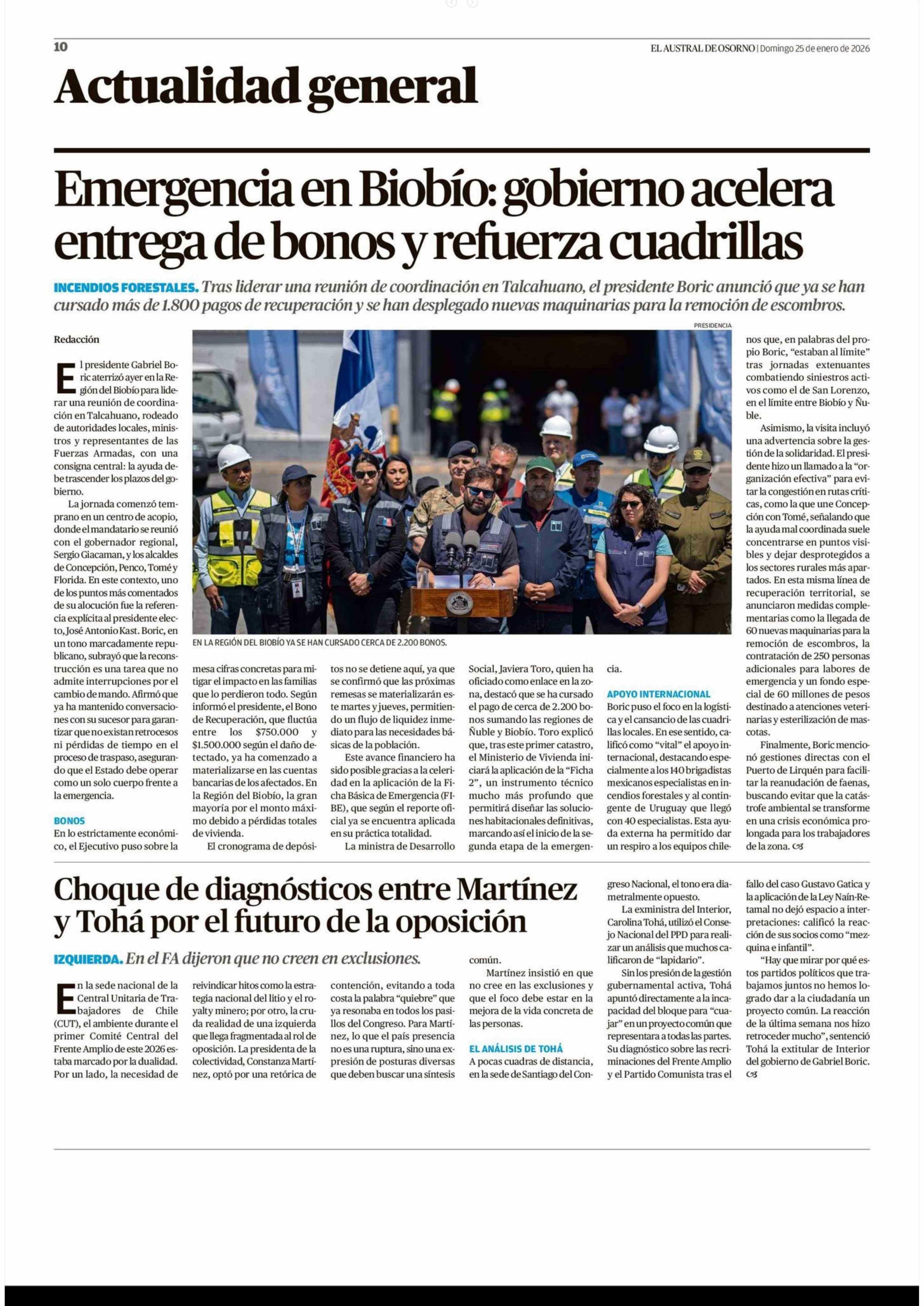 Choque de diagnósticos entre Martínez y Tohá por el futuro de la oposición 25-01-2026 El Austral de Osorno |