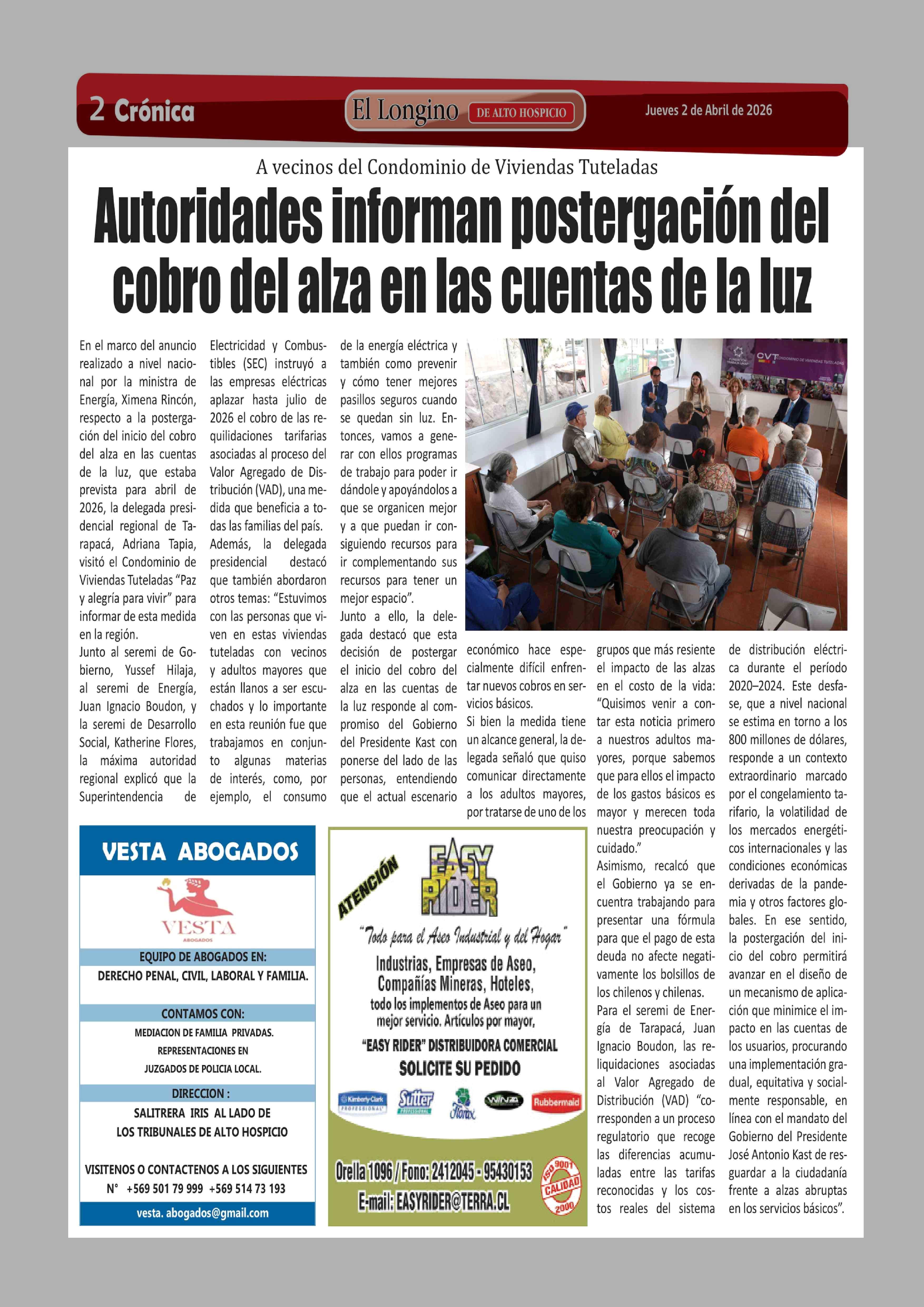 | Fuente: | El Longino (El Longino - Alto Hospicio) | Página(s): | 2 |