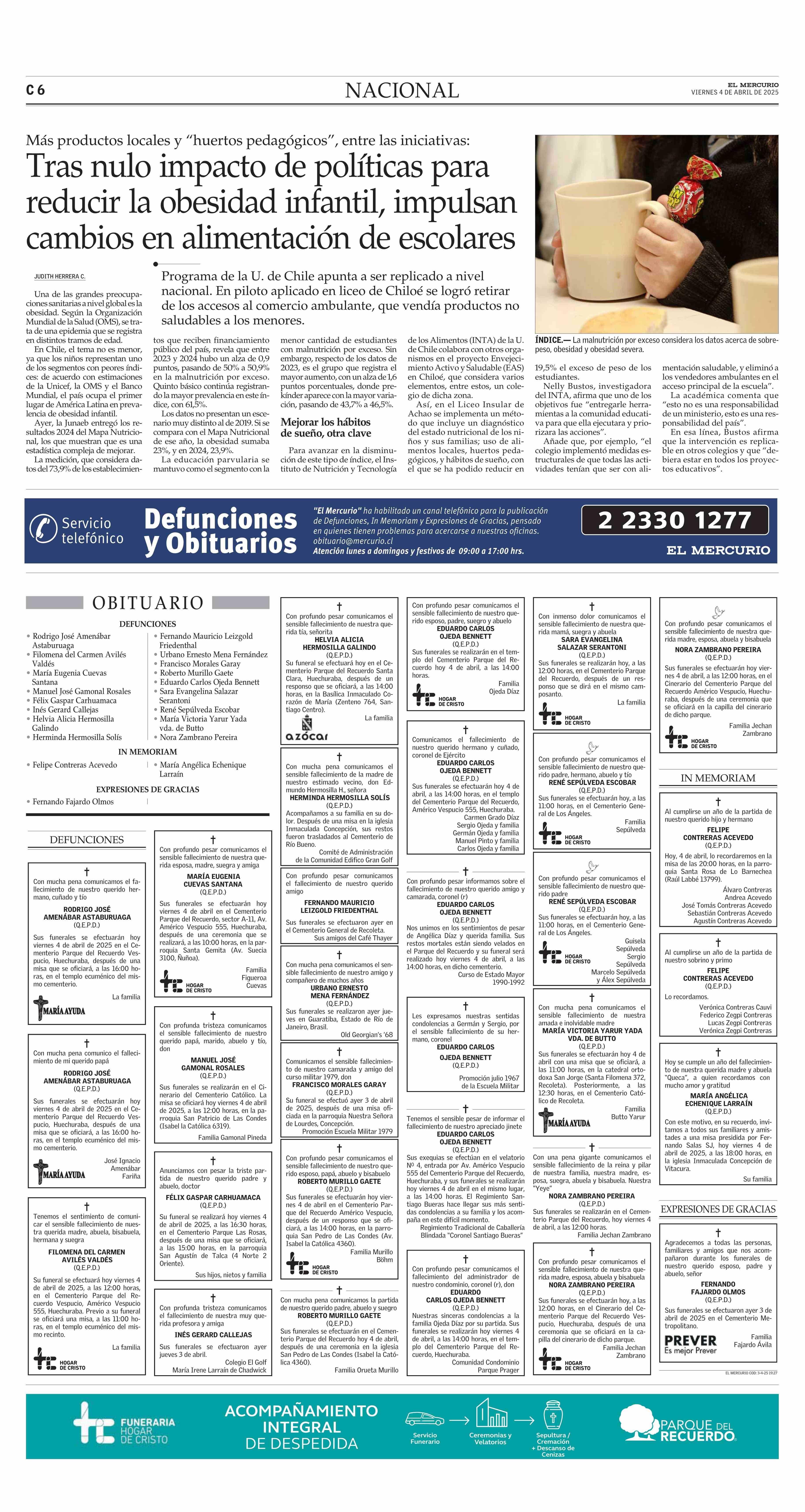 Tras nulo impacto de políticas para reducir la obesidad infantil, impulsan cambios en alimentación de escolares 04-04-2025 El Mercurio |