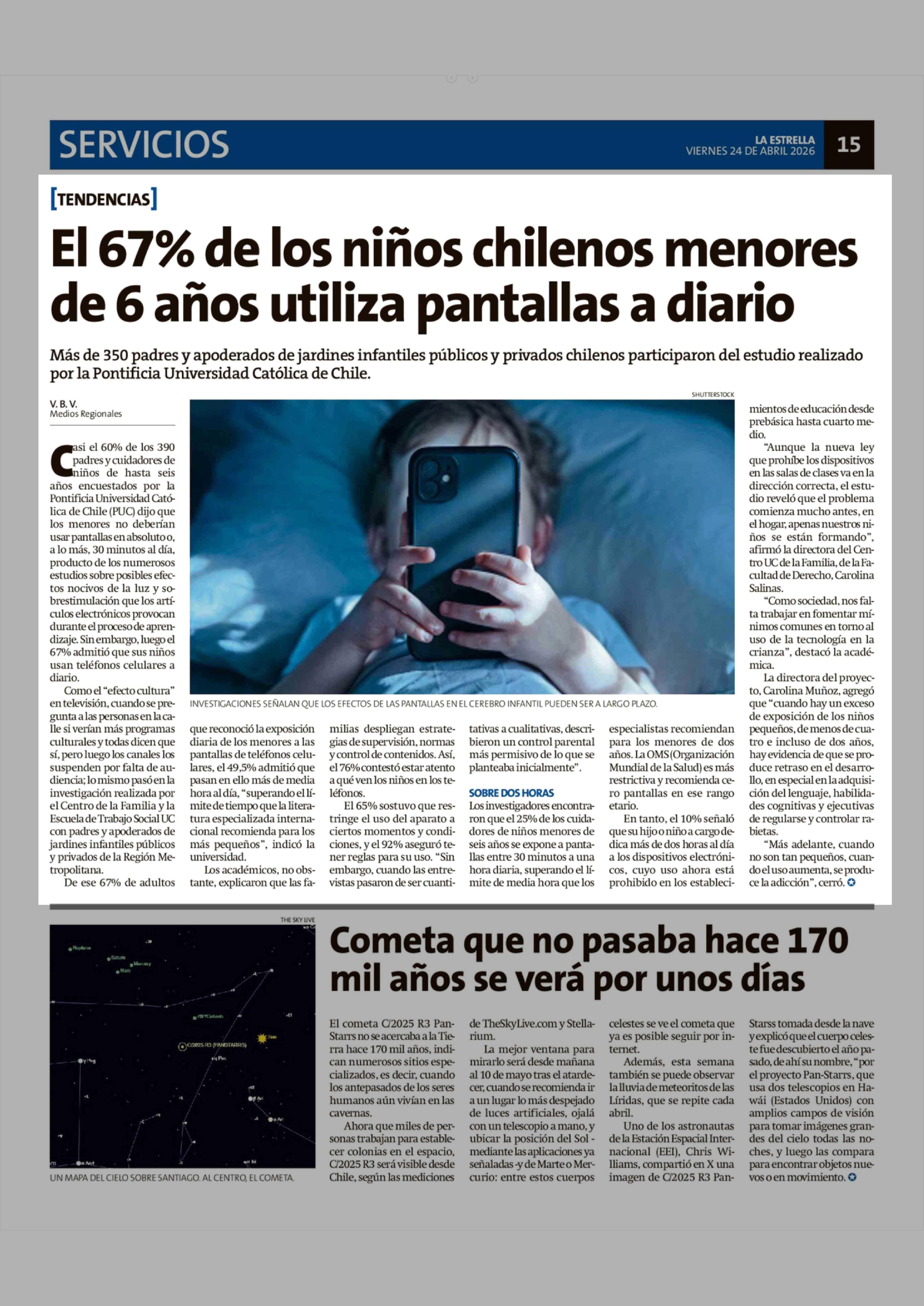 Título: El 67% de los niños chilenos menores de 6 años utiliza pantallas a diario