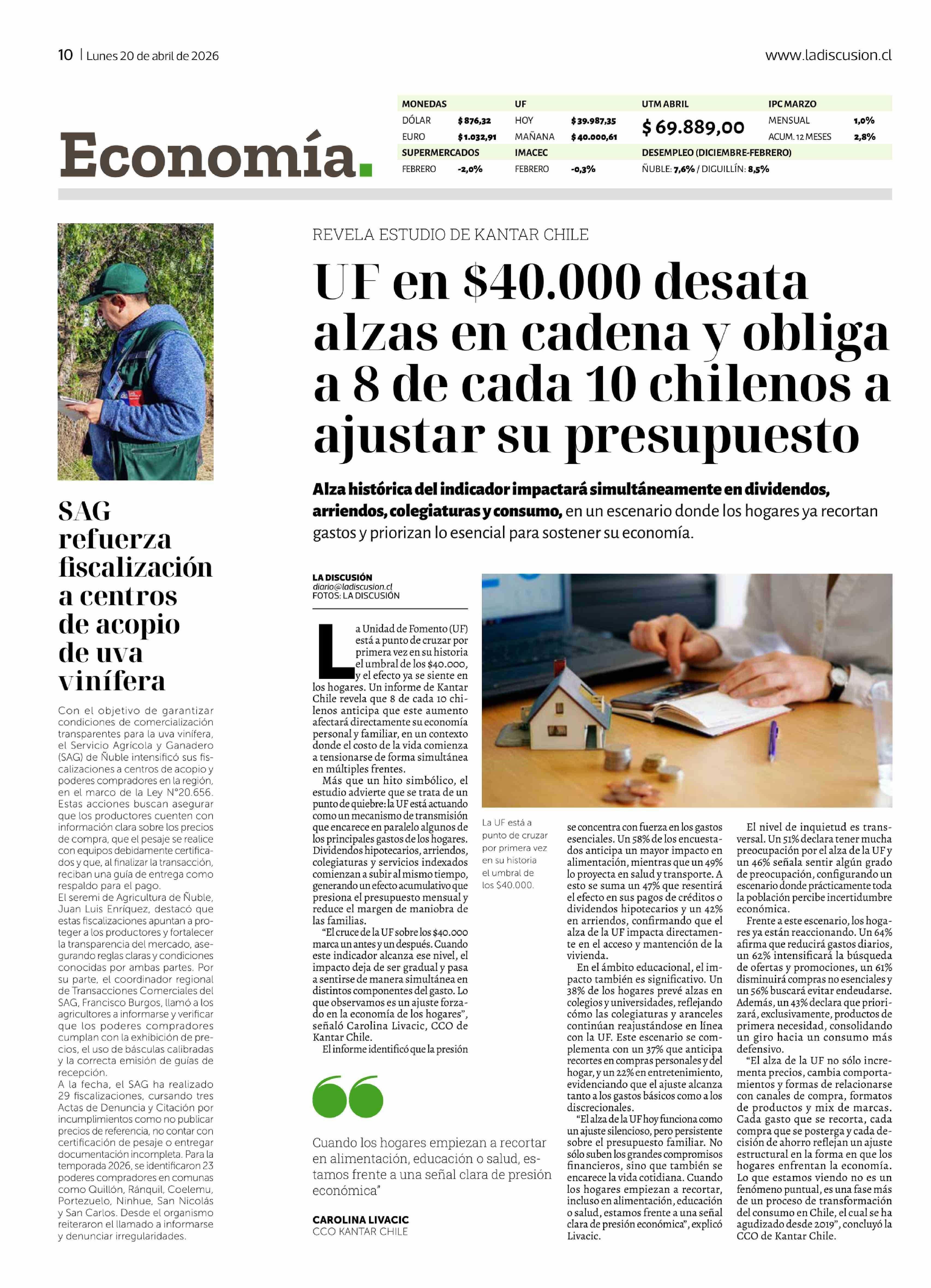 SAG refuerza fiscalización a centros de acopio de uva vinífera 20-04-2026 La Discusión |