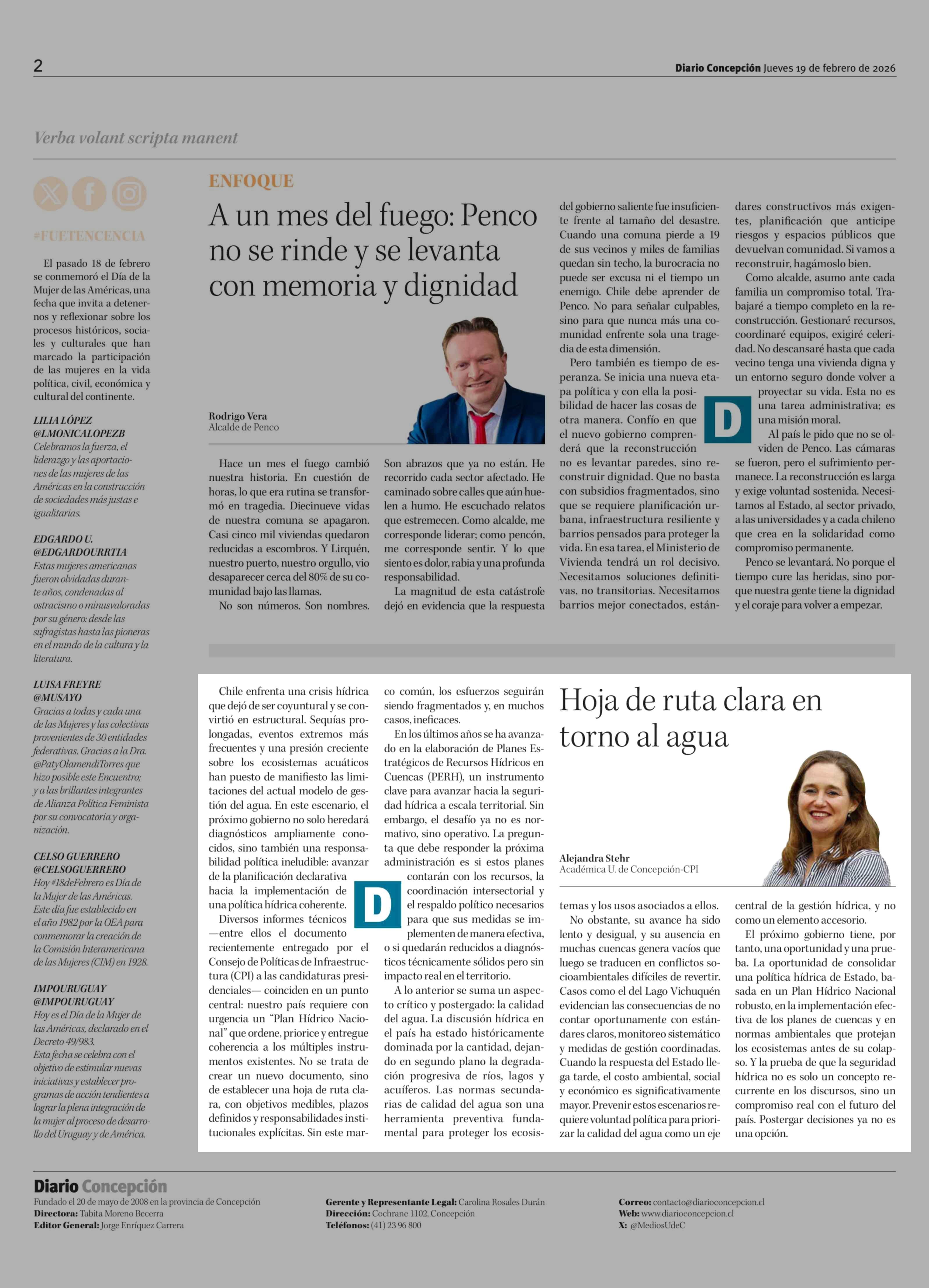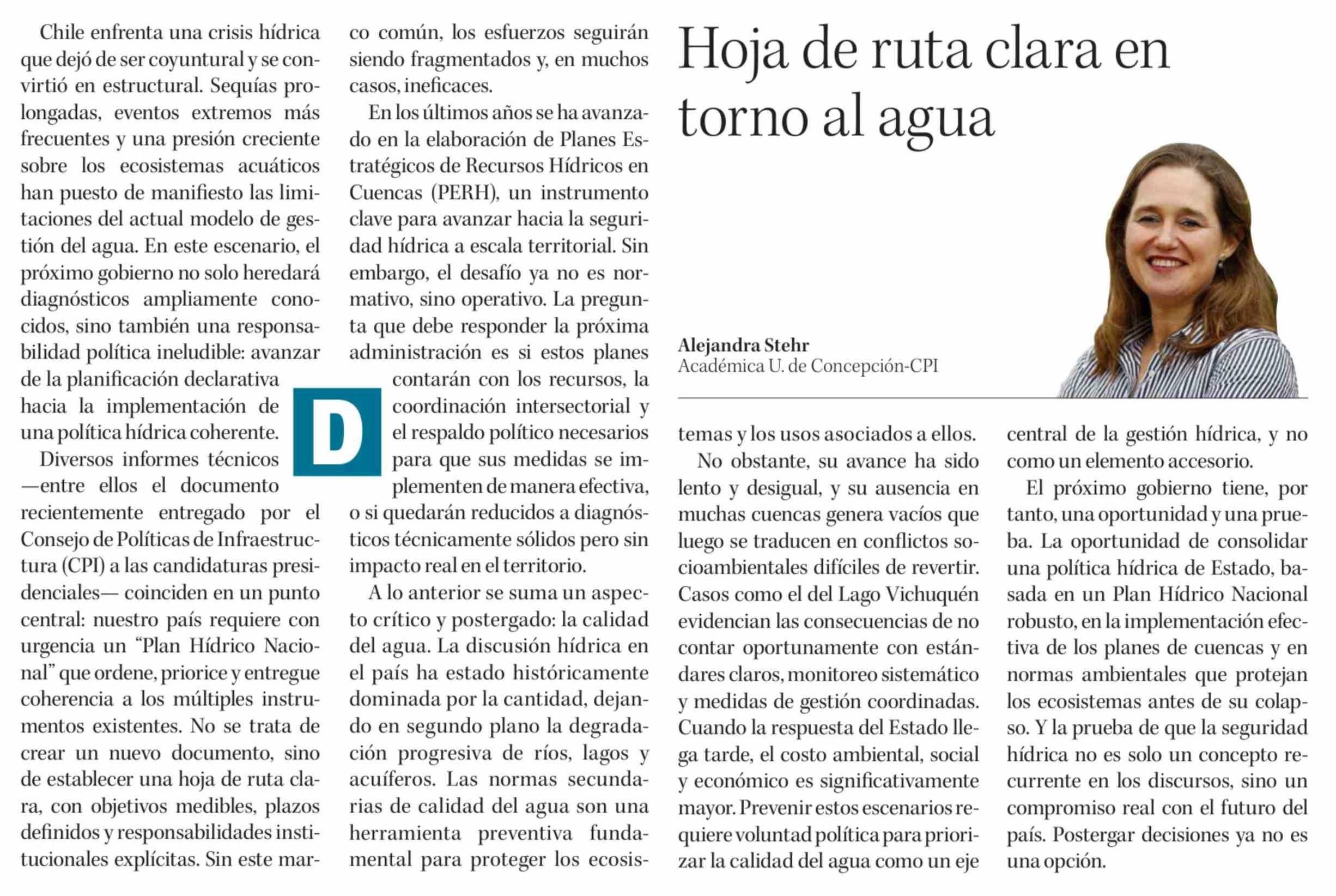 Columnas de Opinión: Hoja de ruta clara en torno al agua 19-02-2026 Diario Concepción |