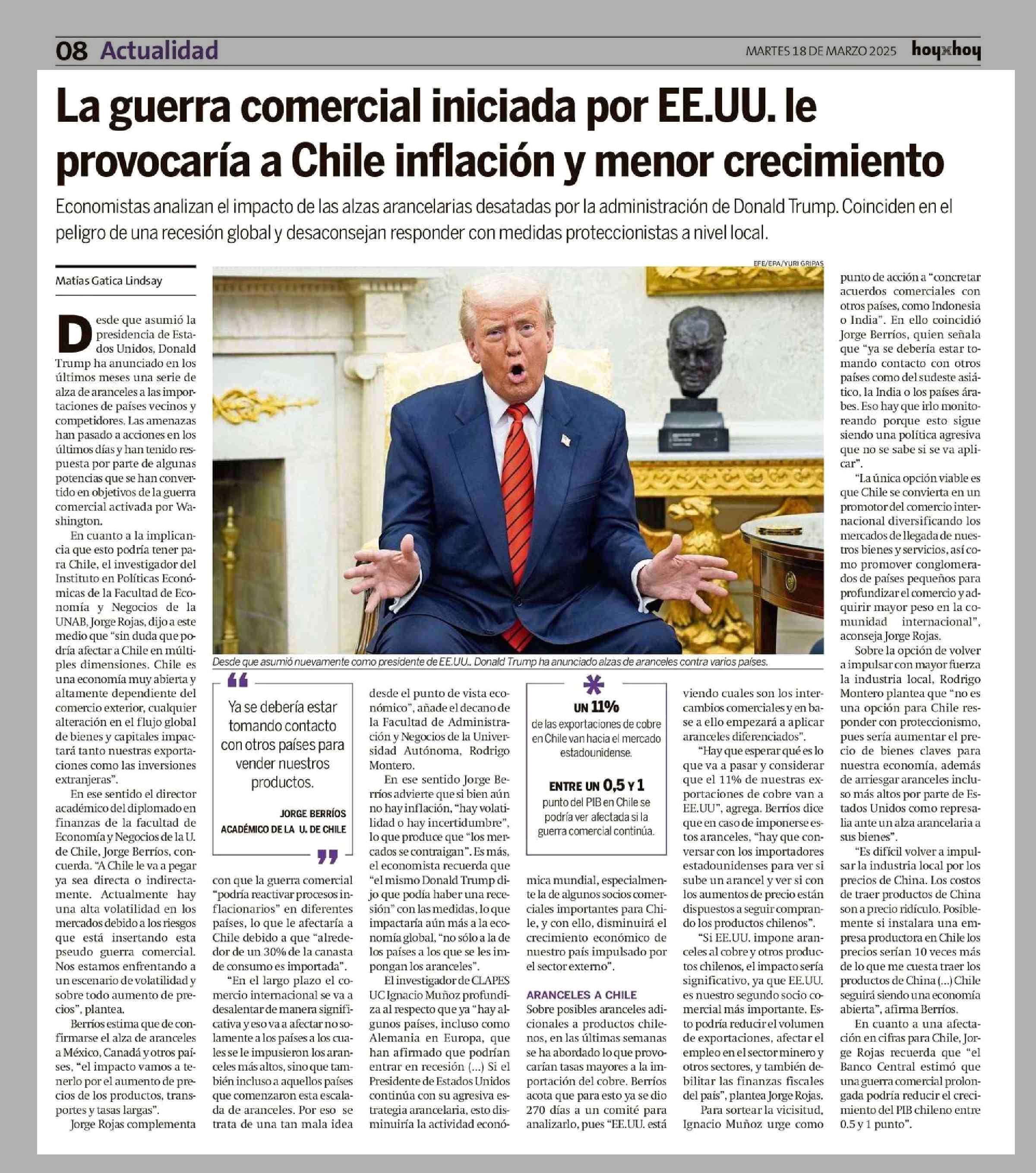 La guerra comercial iniciada por EE.UU. le provocaría a Chile inflación y menor crecimiento 18-03-2025 Hoy x Hoy Concepción |