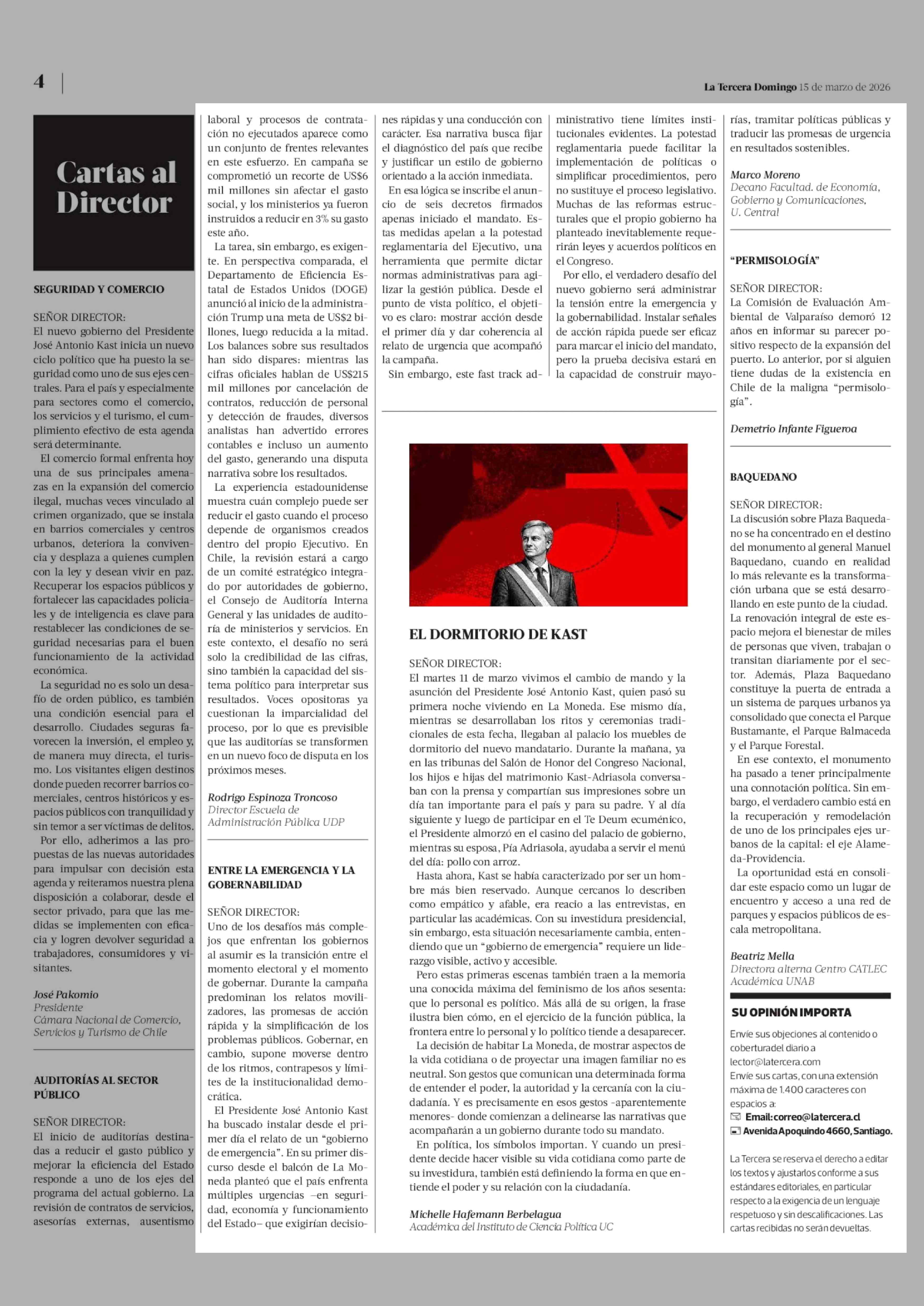 Cartas: ENTRE LA EMERGENCIA Y LA GOBERNABILIDAD 15-03-2026 La Tercera |