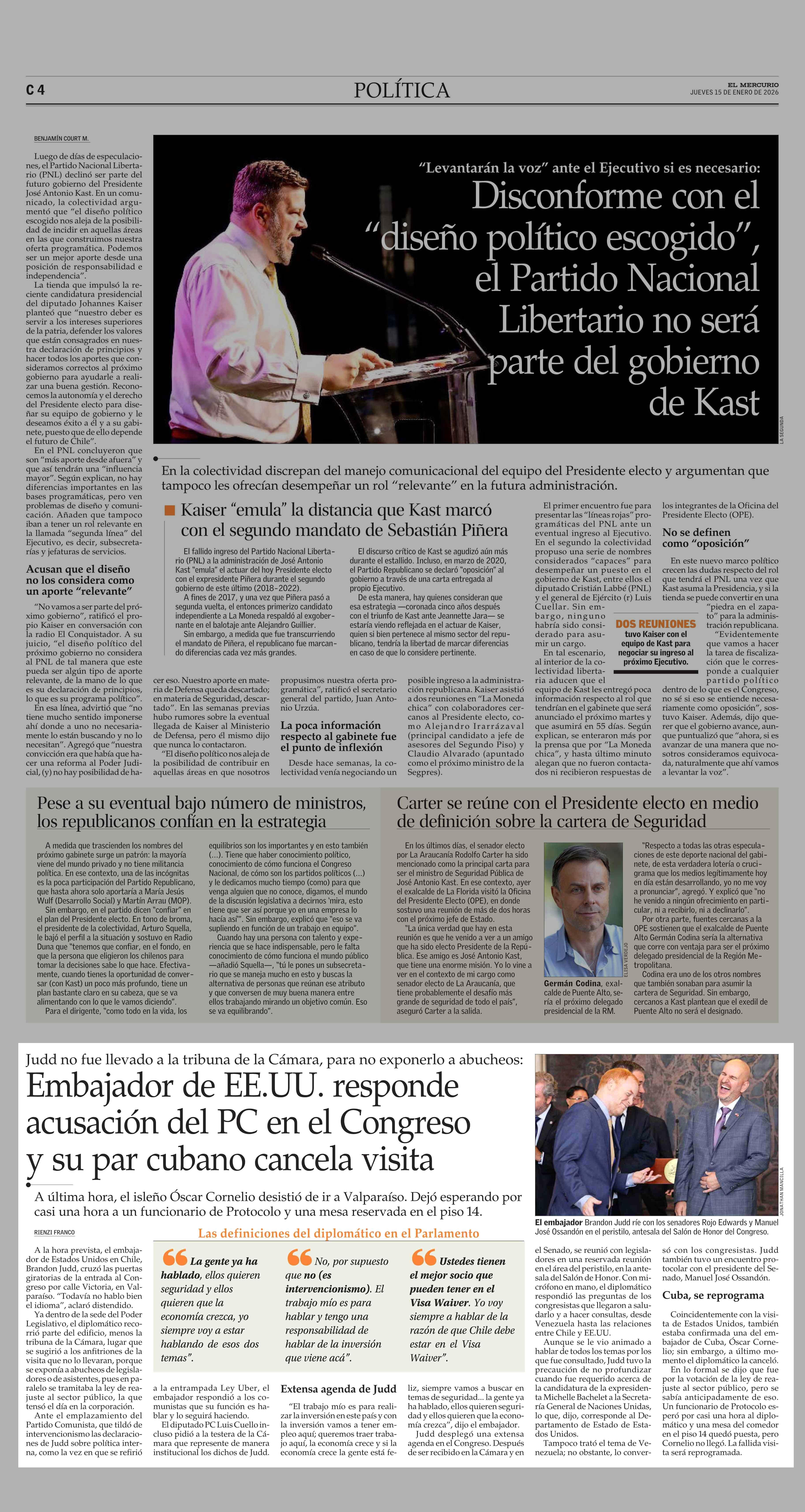 Embajador de EE.UU. responde acusación del PC en el Congreso y su par cubano cancela visita 15-01-2026 El Mercurio |