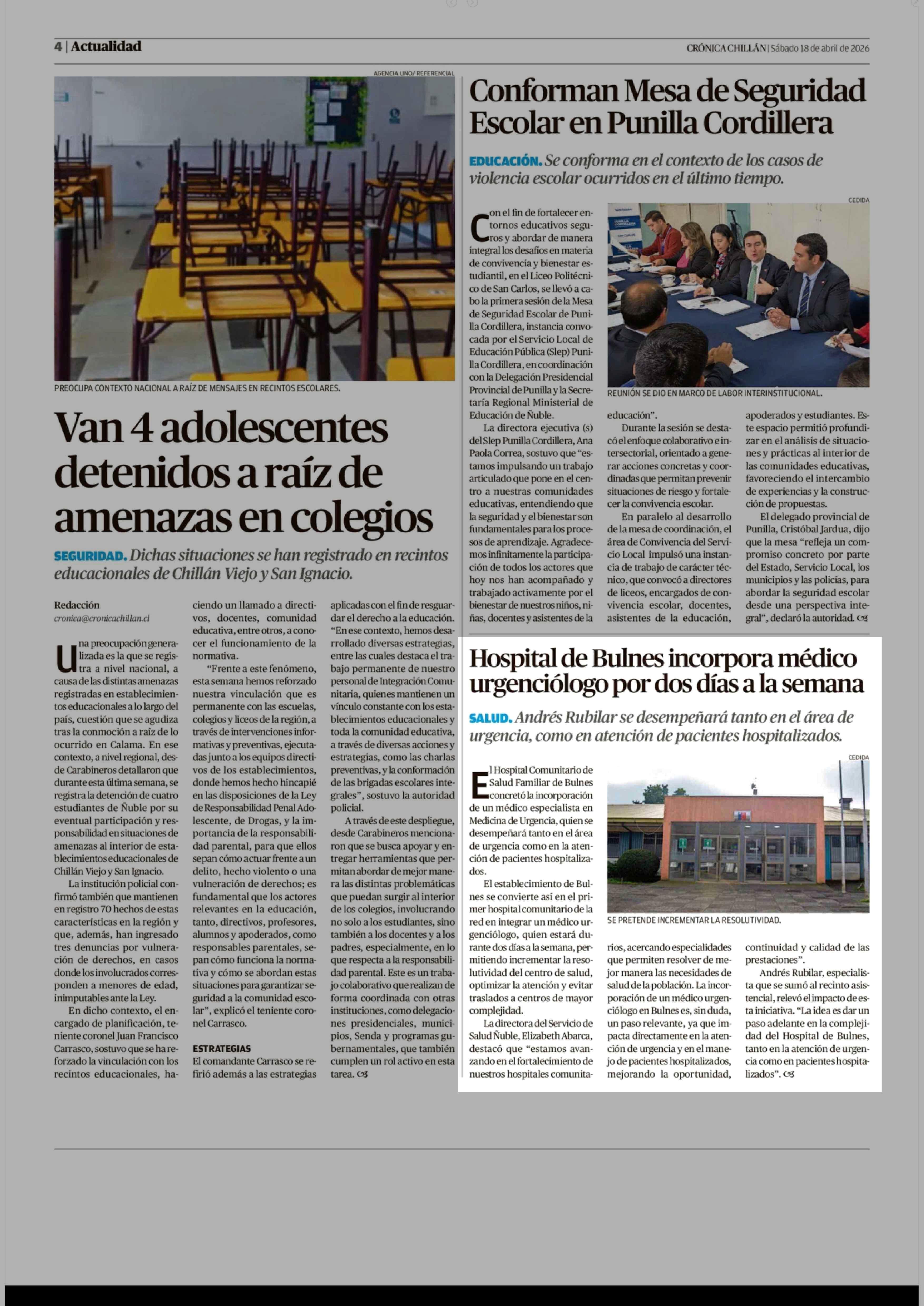| Fecha: | 19-04-2026 | Sector: | Noticia general | Región: | Región del Ñuble |