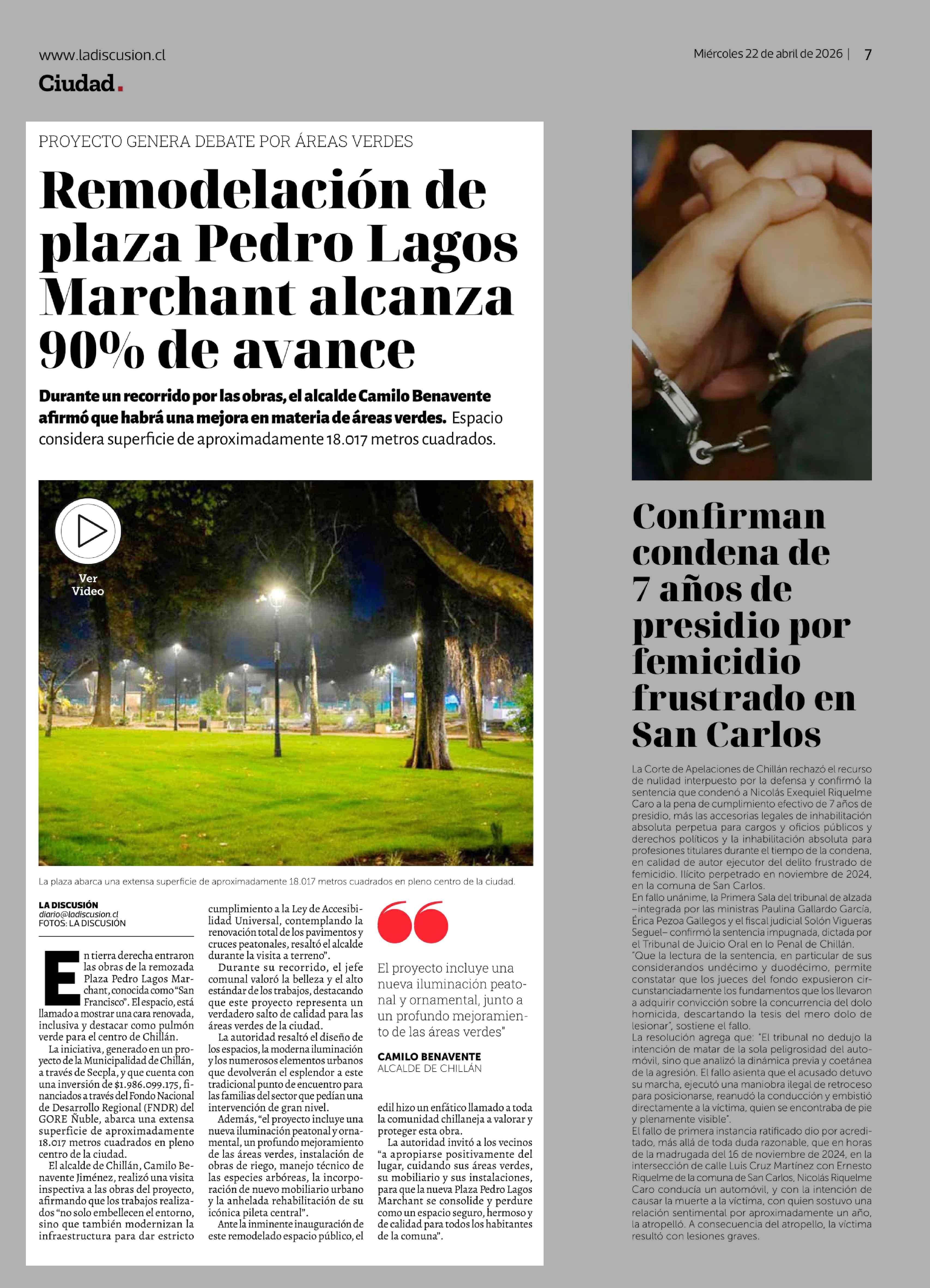 | Fecha: | 22-04-2026 | Sector: | Noticia general | Región: | Región del Ñuble |
