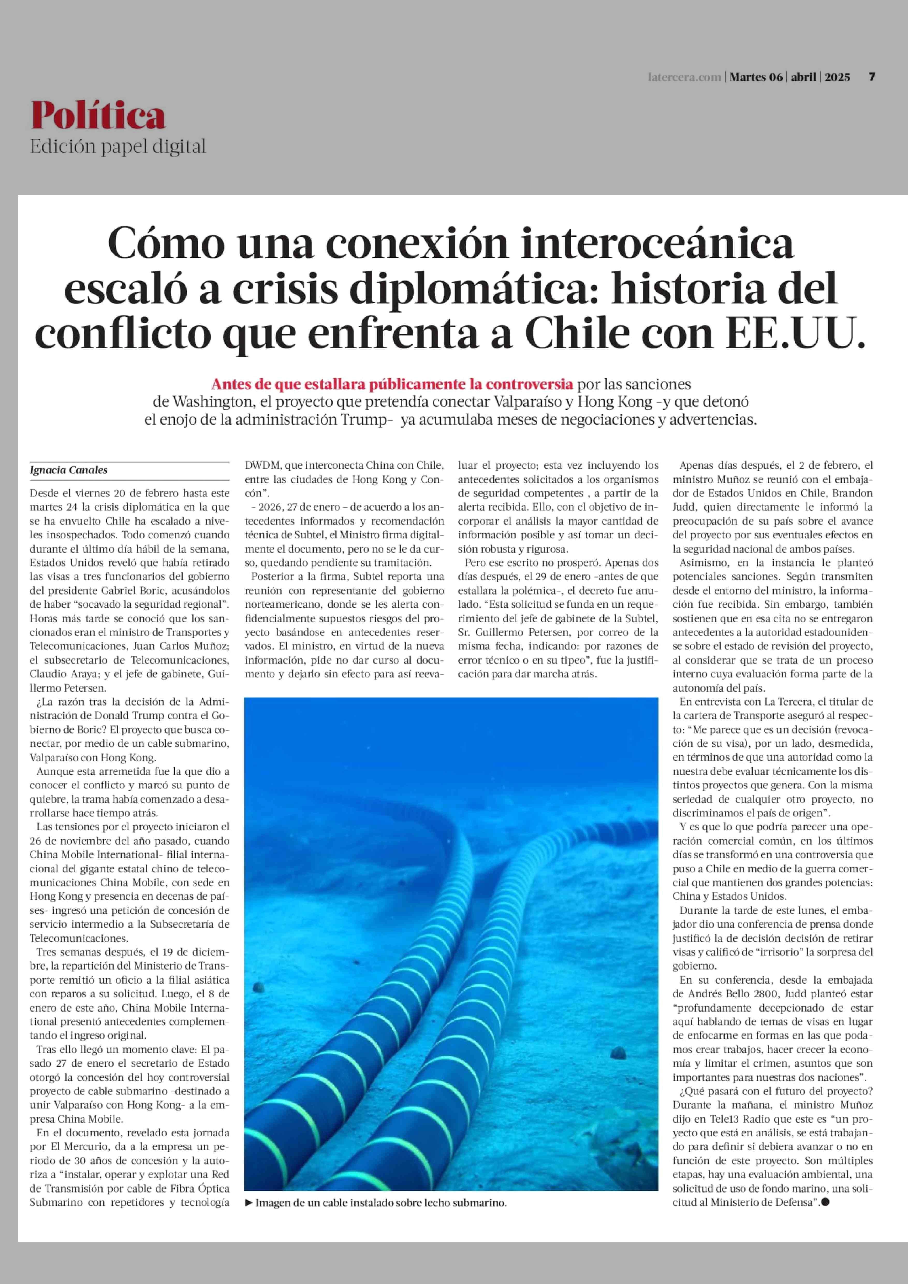Cómo una conexión interoceánica escaló a crisis diplomática: historia del conflicto que enfrenta a Chile con EE.UU. 25-02-2026 La Tercera |