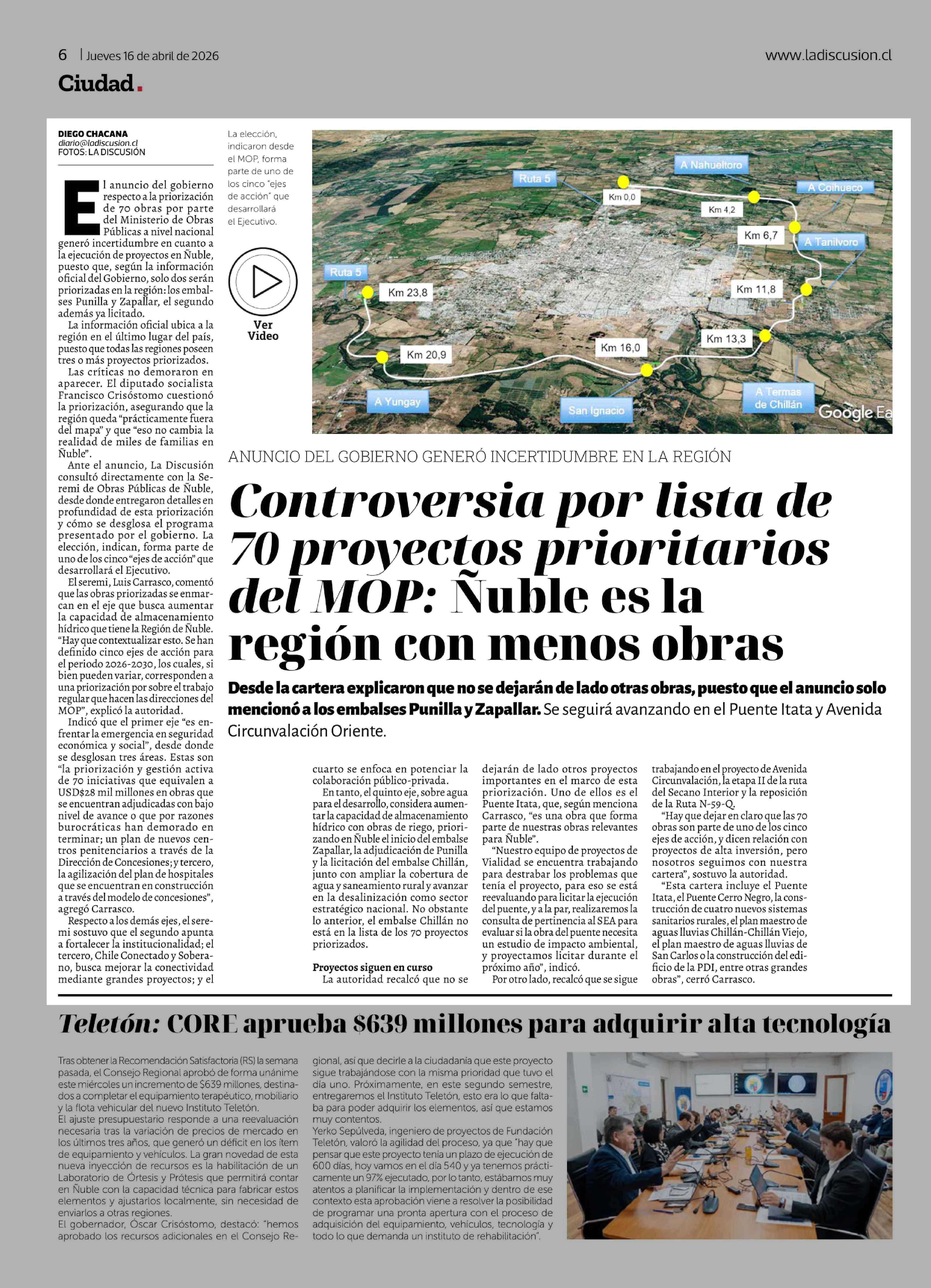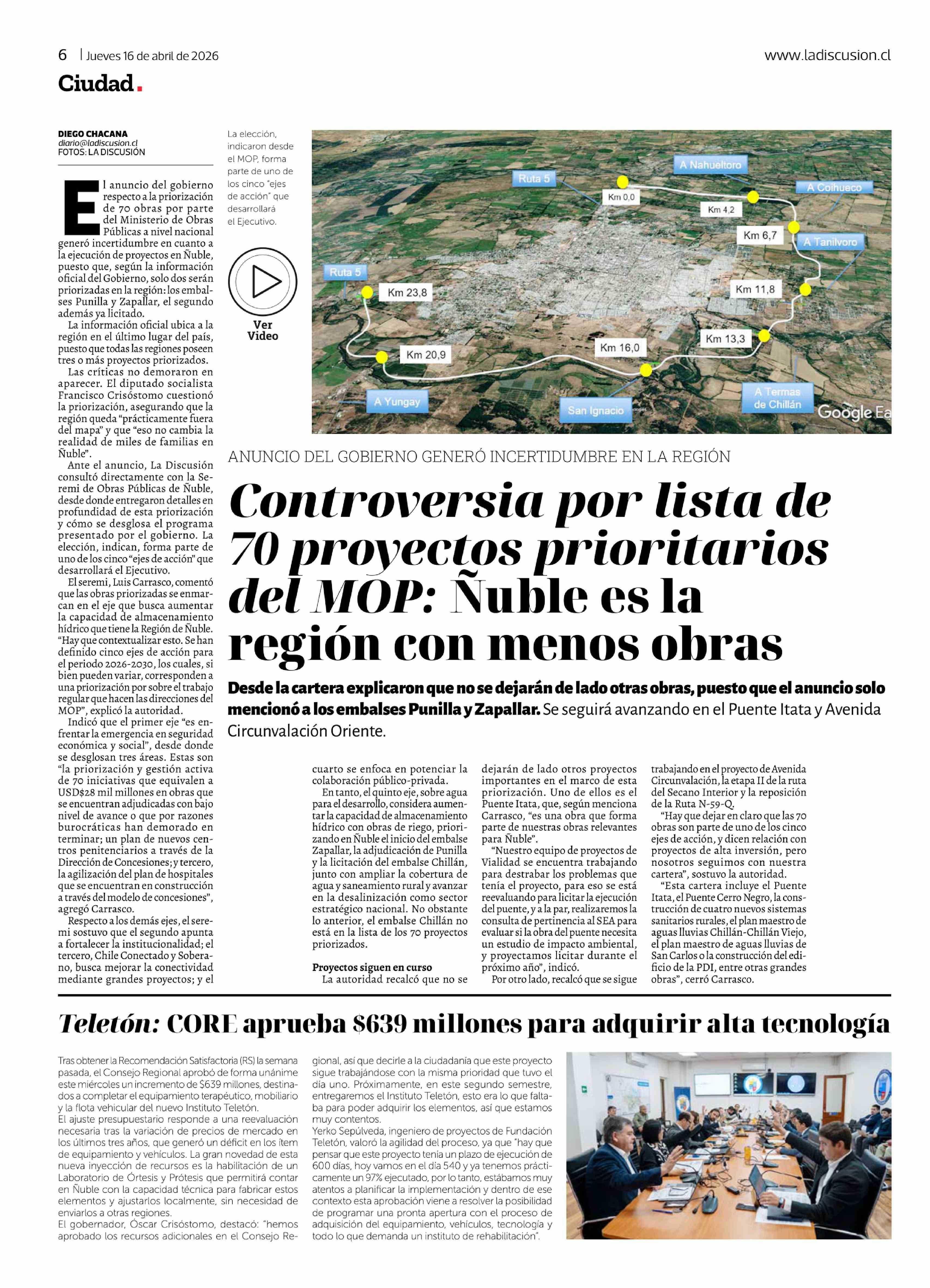 Fecha: 16-04-2026 Sector: Noticia general Región: Región del Ñuble