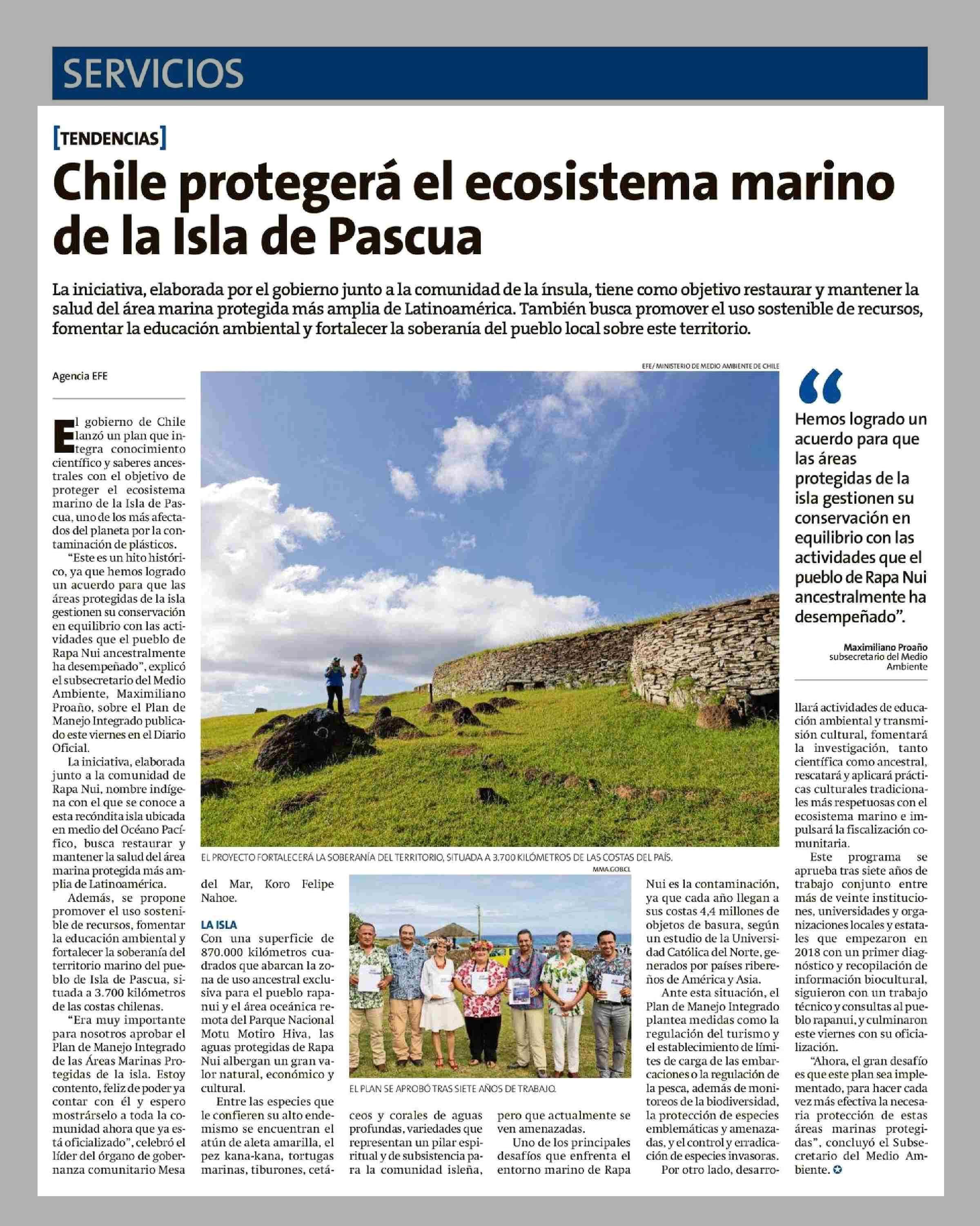 Chile protegerá el ecosistema marino de la Isla de Pascua 28-04-2025 La Estrella de Chiloé |