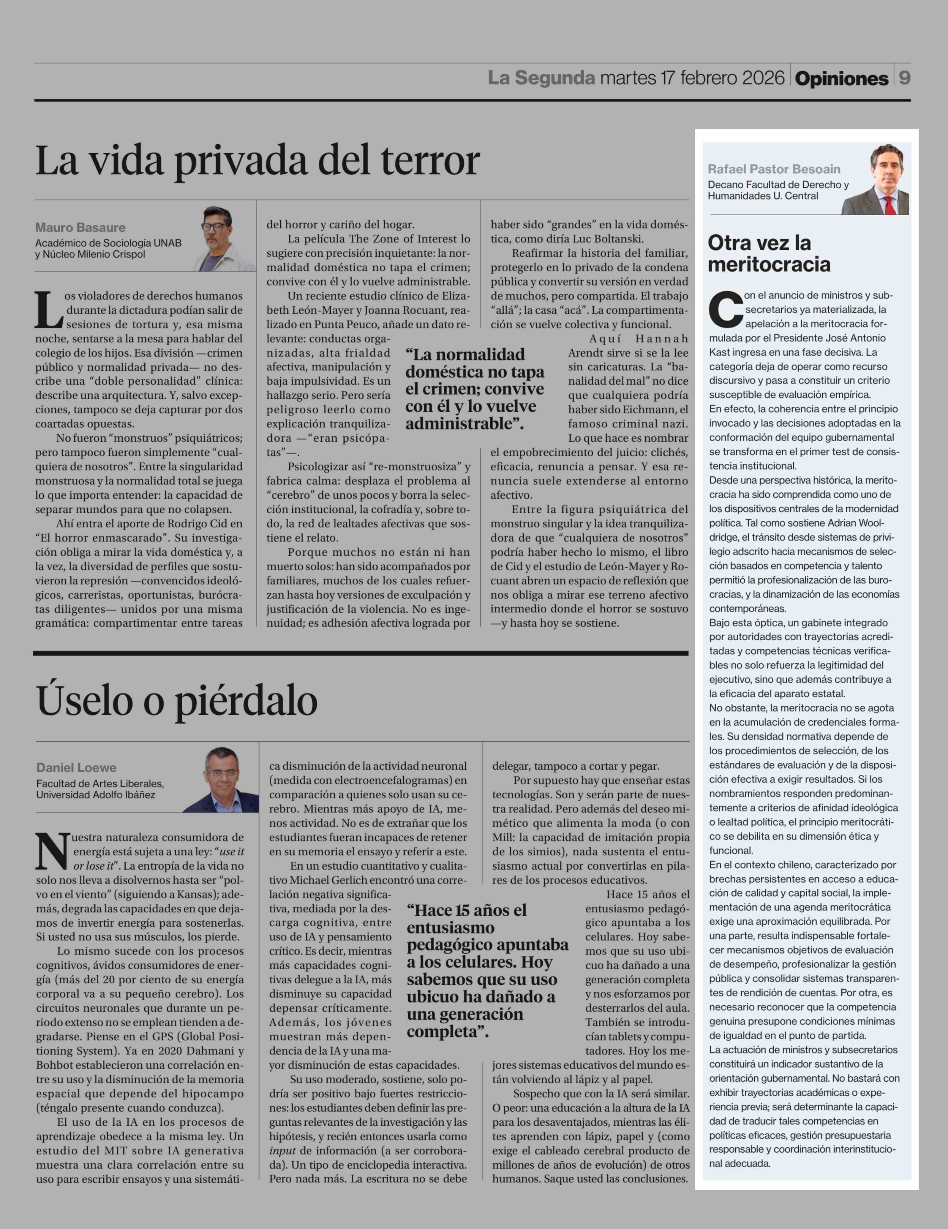 Fecha: 17-02-2026 Sector: Columnas de Opinión Región: Región Metropolitana de Santiago