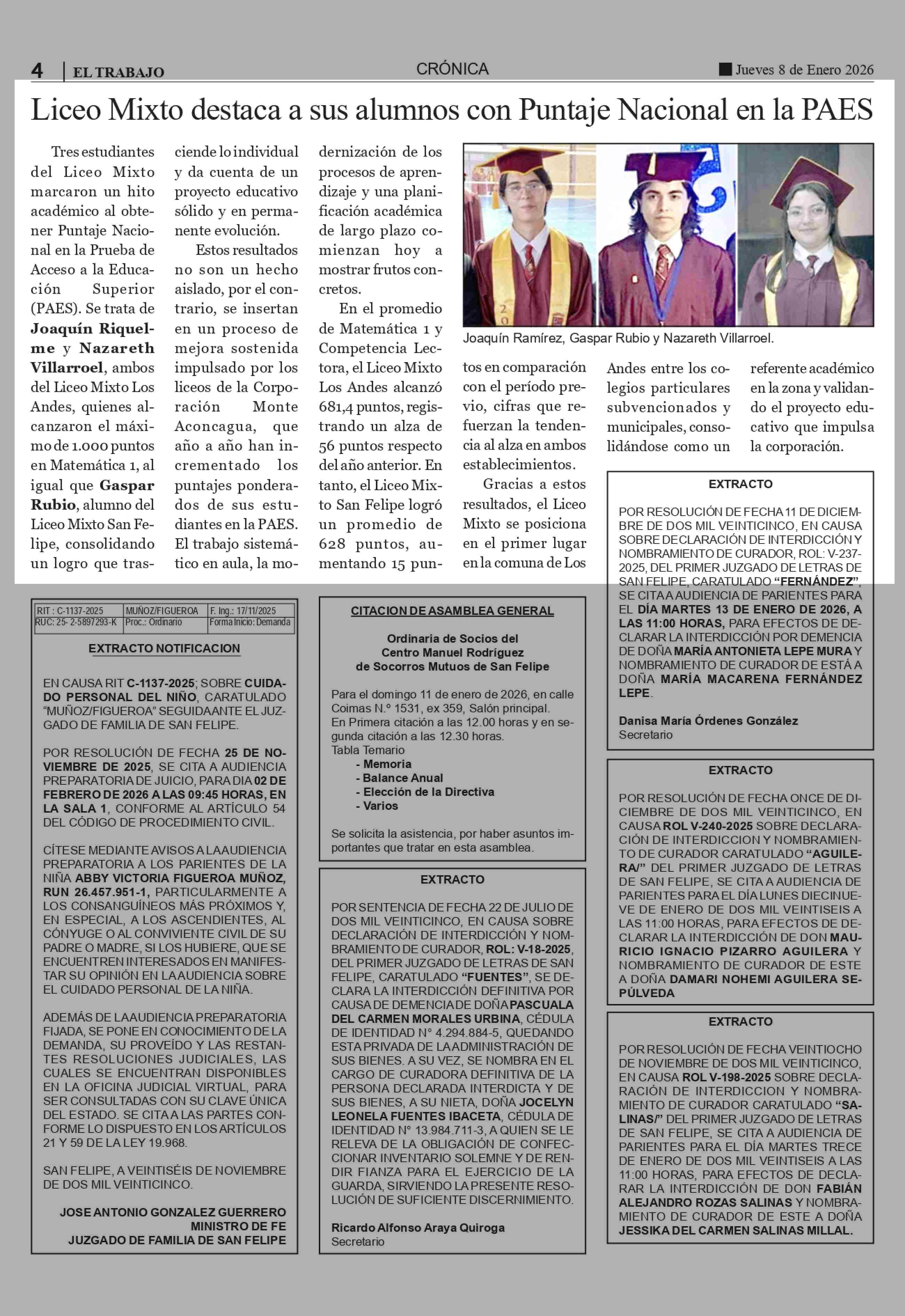Título: Liceo Mixto destaca a sus alumnos con Puntaje Nacional en la PAES