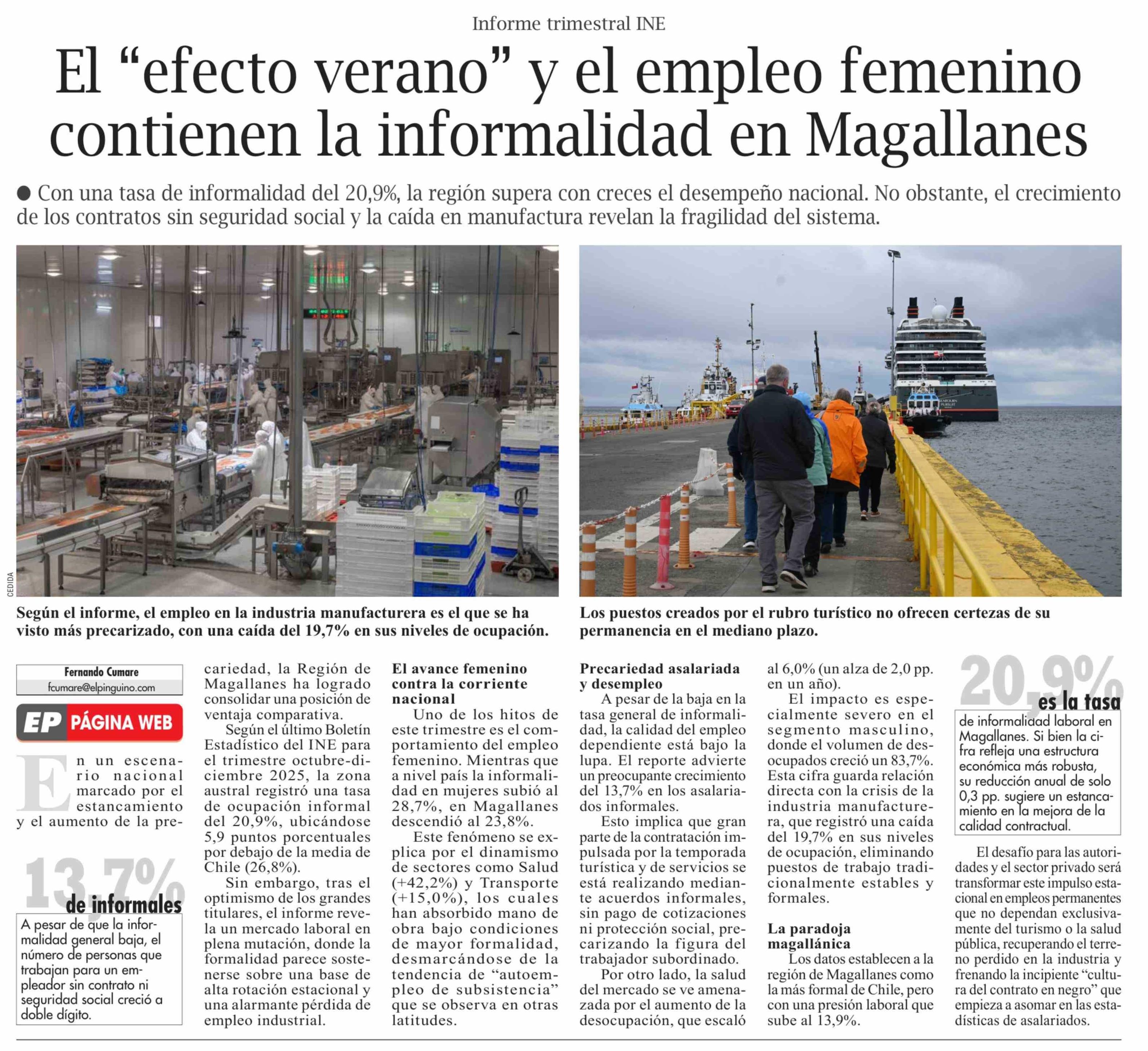 El "efecto verano" y el empleo femenino contienen la informalidad en Magallanes 05-02-2026 El Pingüino |