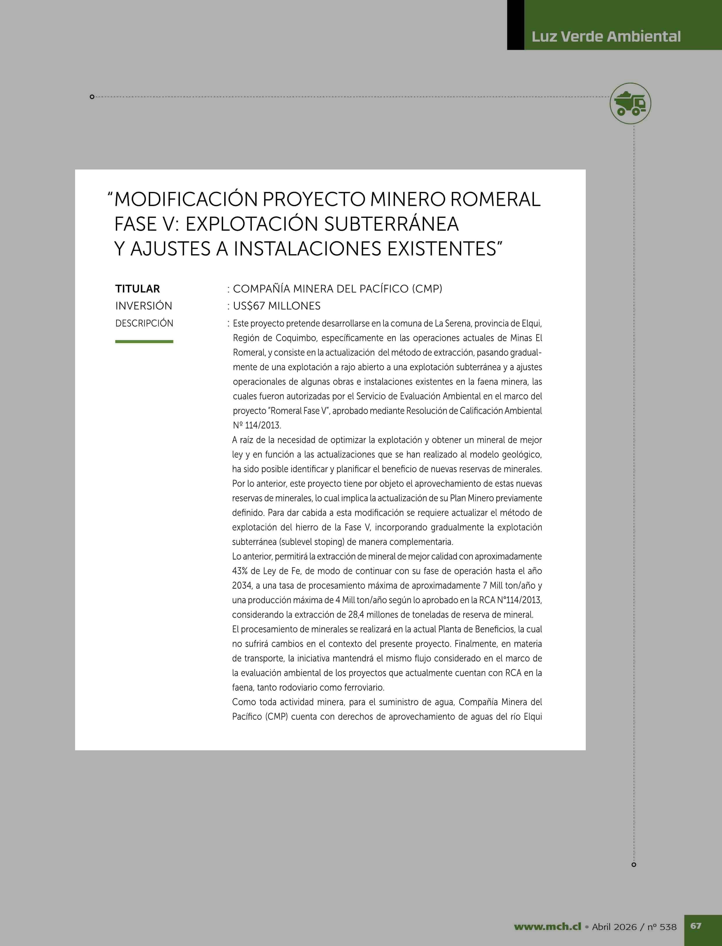 Fuente: Revista Minería Chilena (Revista Minería Chilena) Página(s): 69-71